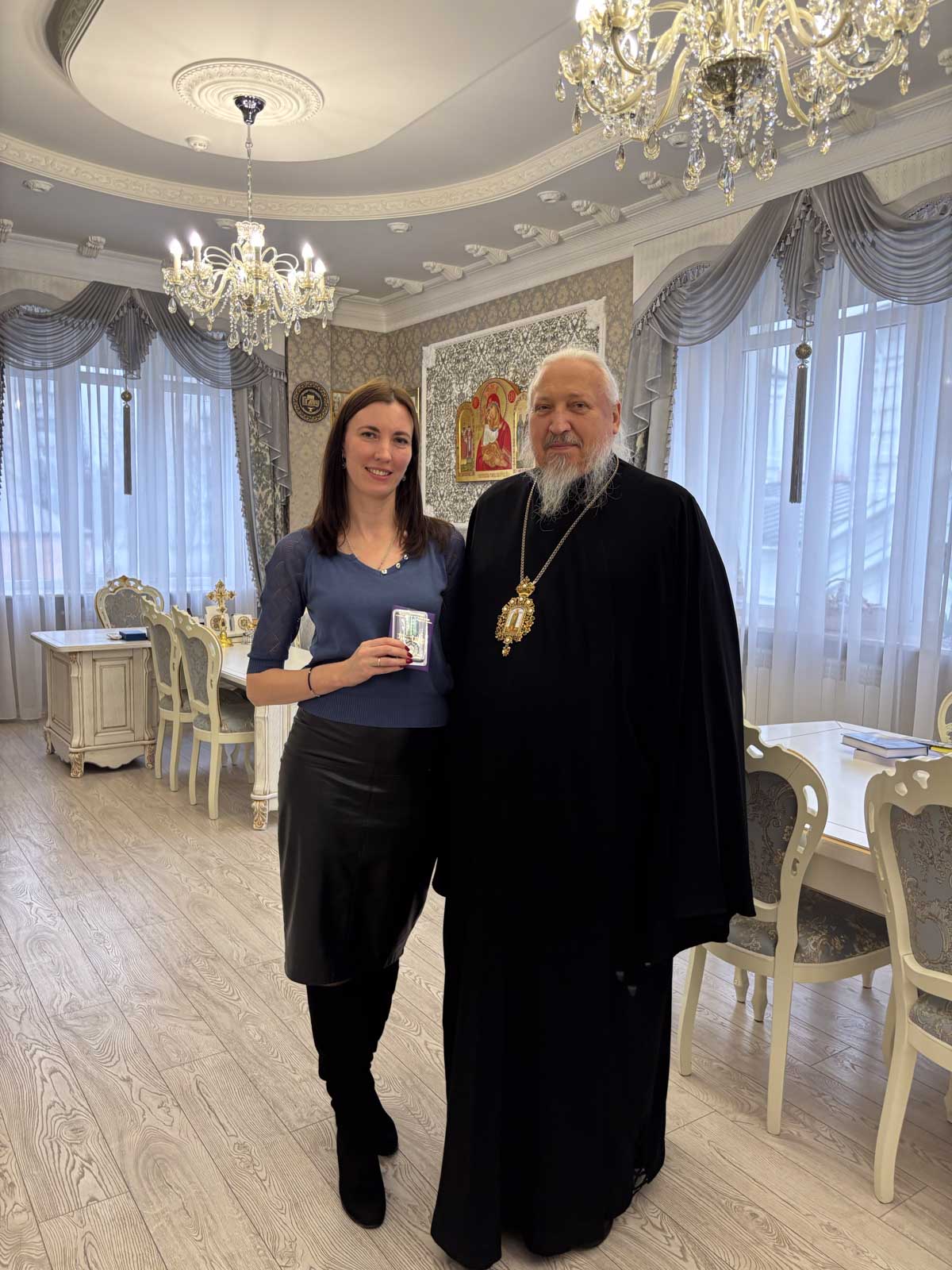 12 декабря 2025 года Высокопреосвященнейший Стефан, архиепископ Гомельский и Жлобинский, вручил медаль преподобной Манефа Гомельской 2 степени заместителю председателя Информационного отдела Гомельской епархии Ольге Анатольевне Конончук во внимание к многолетним трудам на благо Гомельской епархии в деле информационно-просветительского служения.