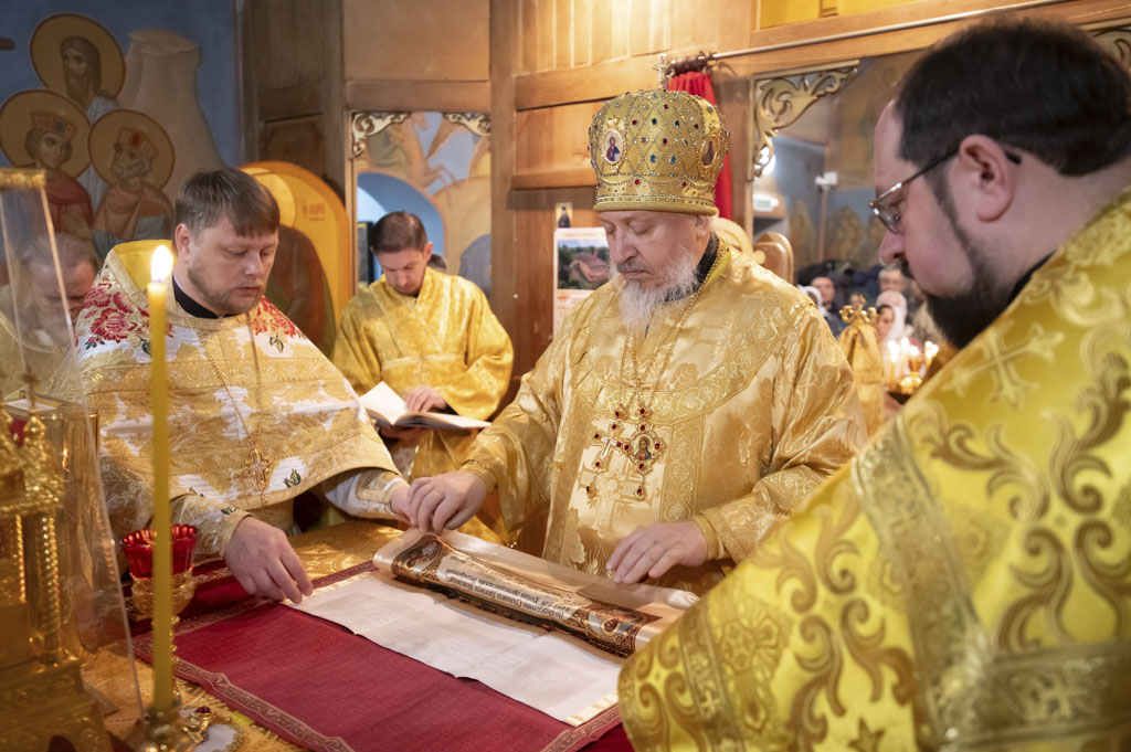 По окончании богослужения владыка Стефан обратился к собравшимся со словами архипастырского назидания, поздравив причастников с принятием Святых Христовых Таин. Особые слова поздравления в этот день прозвучали в адрес настоятеля храма, протоиерея Андрея Семеняко, отмечающего день своего тезоименитства. Архипастырь пожелал отцу Андрею крепости сил, духовной радости и неоскудевающей помощи Божией в его пастырских трудах на благо Святой Церкви.