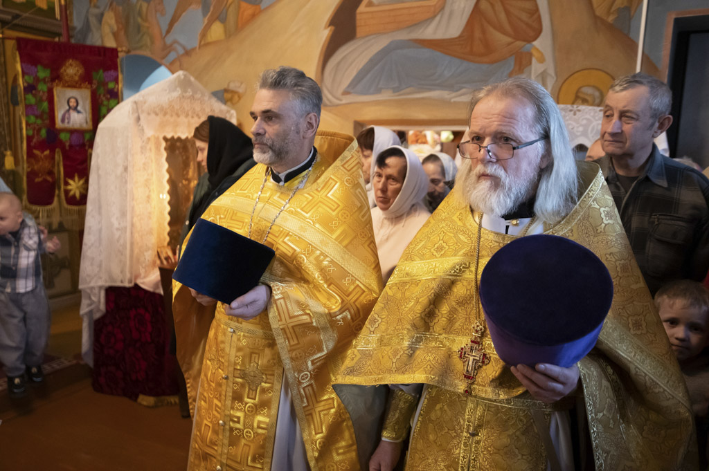За Литургией Его Высокопреосвященству сослужили: секретарь Гомельской епархии протоиерей Георгий Алампиев, благочинный церквей городского округа протоиерей Игорь Ольшанов, настоятель прихода протоиерей Андрей Семеняко и духовенство епархии.
