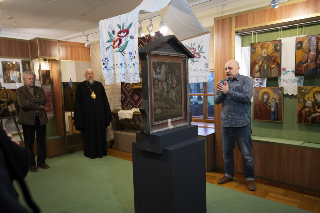 У адкрыцці выставы прыняў удзел Высокапраасвяшчэннейшы Сцяфан, архіепіскап Гомельскі і Жлобінскі. Звяртаючыся да ўдзельнікаў і гасцей мерапрыемства, уладыка звярнуў увагу на глыбінную сувязь народнай іконы з жыццём і верай простага чалавека.