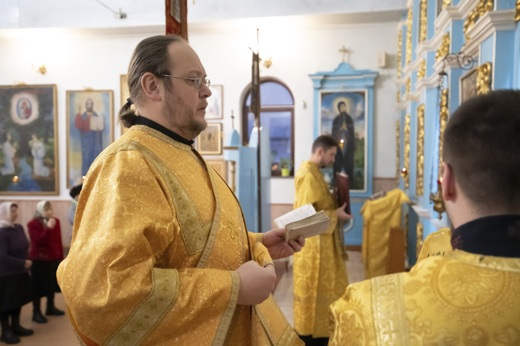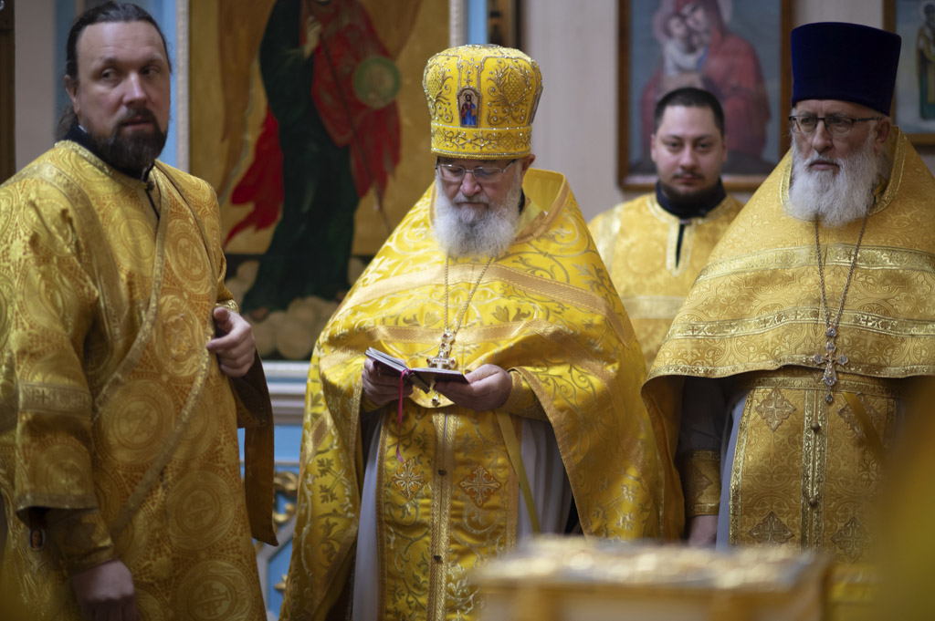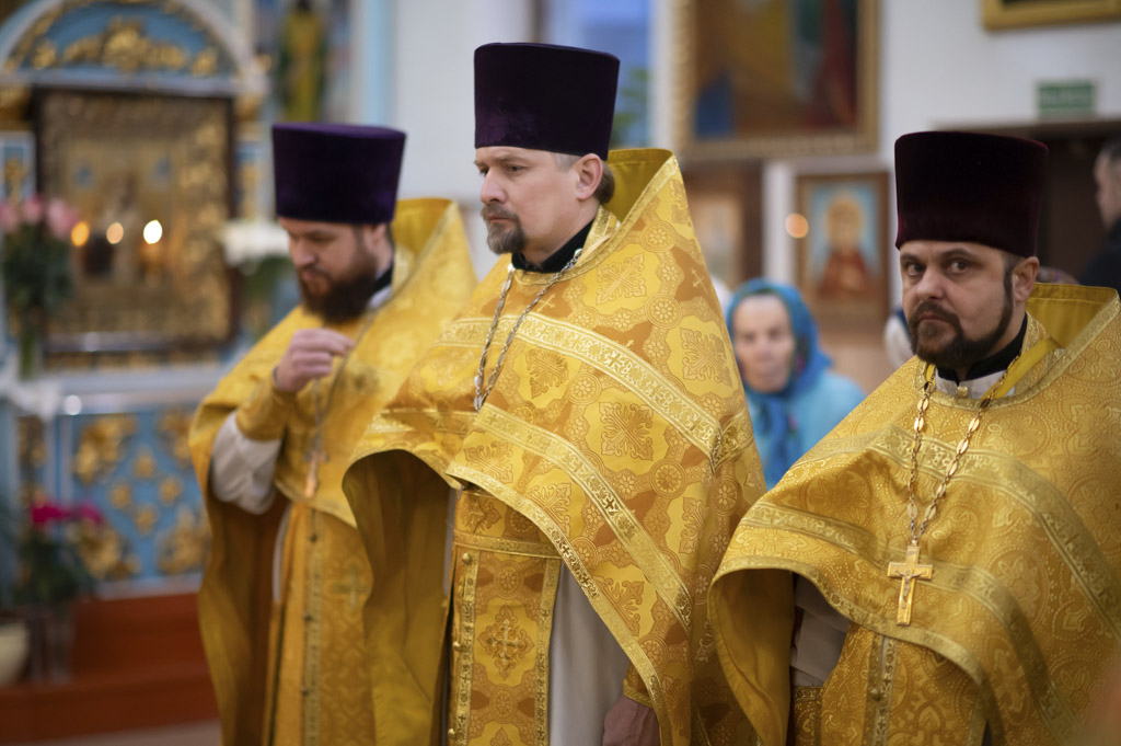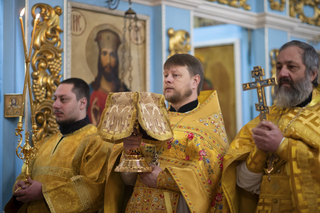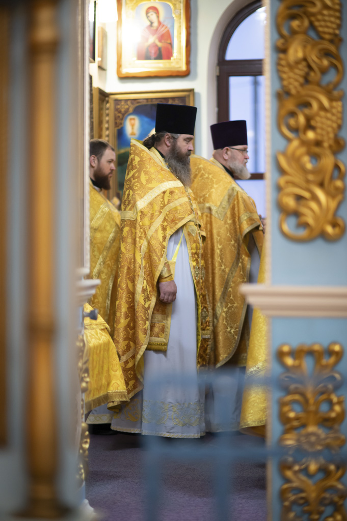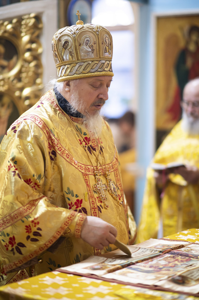 По окончании литургии владыка Стефан поздравил причастников с принятием Святых Христовых Таин и обратился к пастве с архипастырским словом. Особое поздравление прозвучало в адрес настоятеля прихода протоиерея Николая Ефименко, отметившего 60-летие. За усердное служение Церкви отец Николай был удостоен медали святого праведного Иоанна Кормянского. Владыка пожелал юбиляру крепости сил и неокудевающей помощи Божией в дальнейшем пастырском труде.