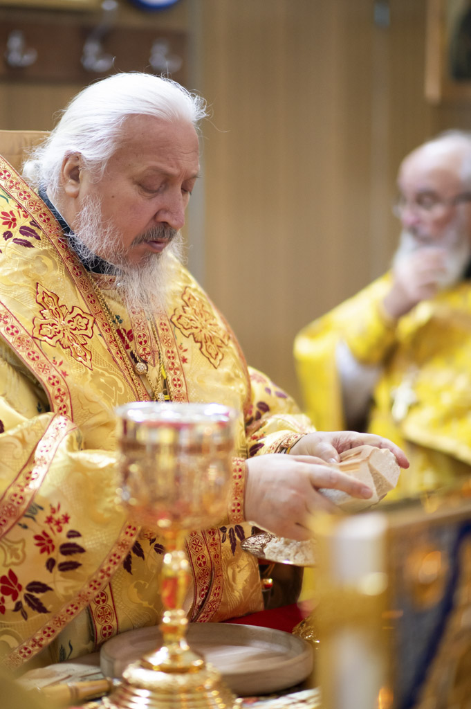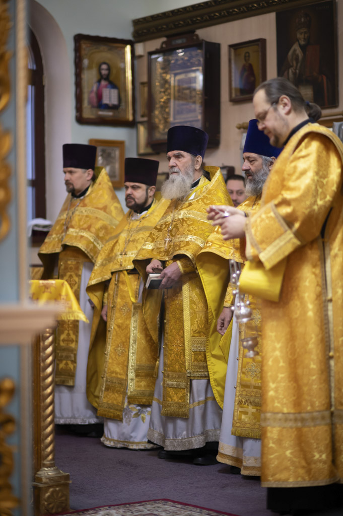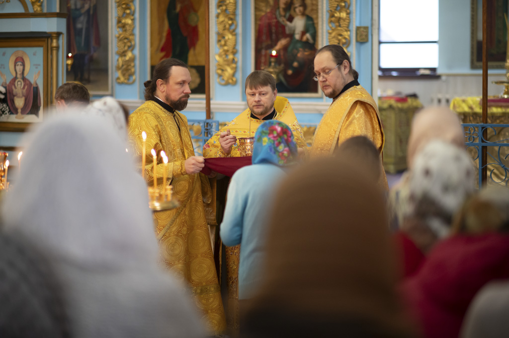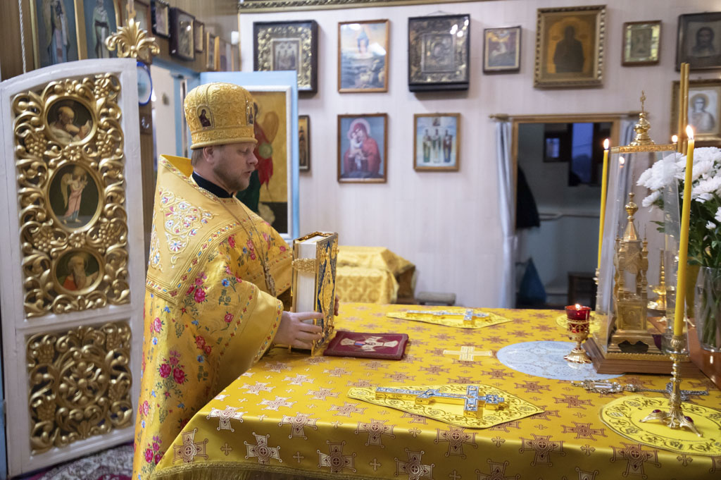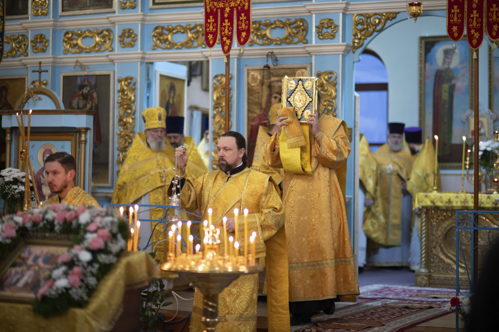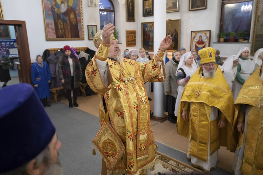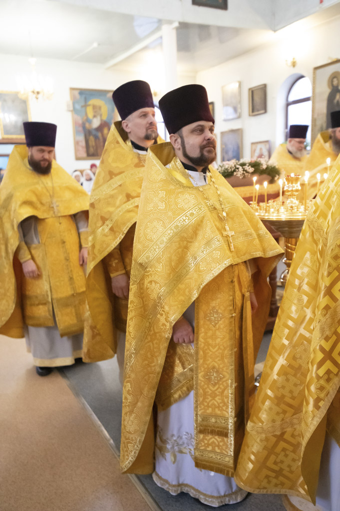 По окончании литургии владыка Стефан поздравил причастников с принятием Святых Христовых Таин и обратился к пастве с архипастырским словом. Особое поздравление прозвучало в адрес настоятеля прихода протоиерея Николая Ефименко, отметившего 60-летие. За усердное служение Церкви отец Николай был удостоен медали святого праведного Иоанна Кормянского. Владыка пожелал юбиляру крепости сил и неокудевающей помощи Божией в дальнейшем пастырском труде.