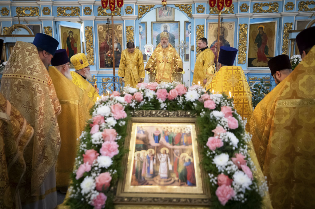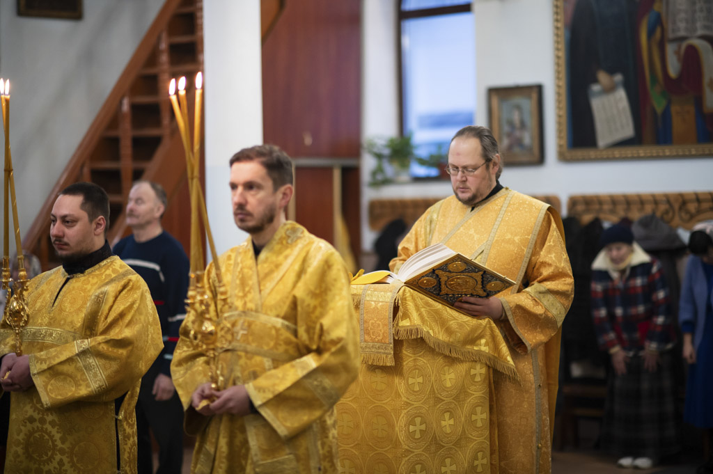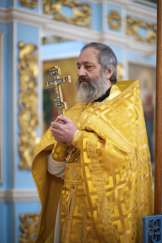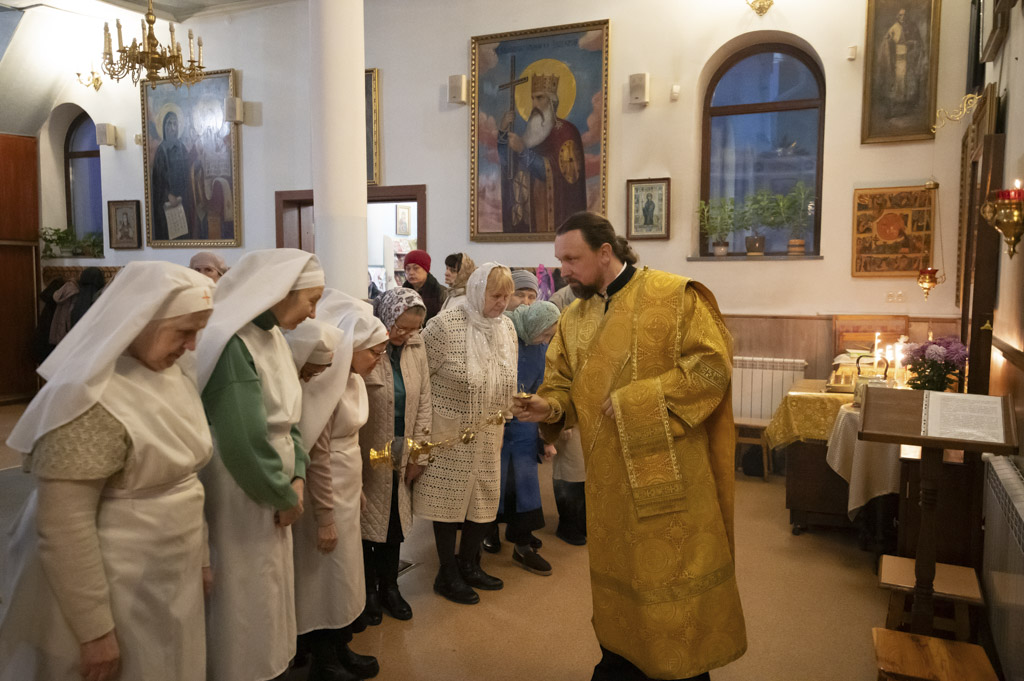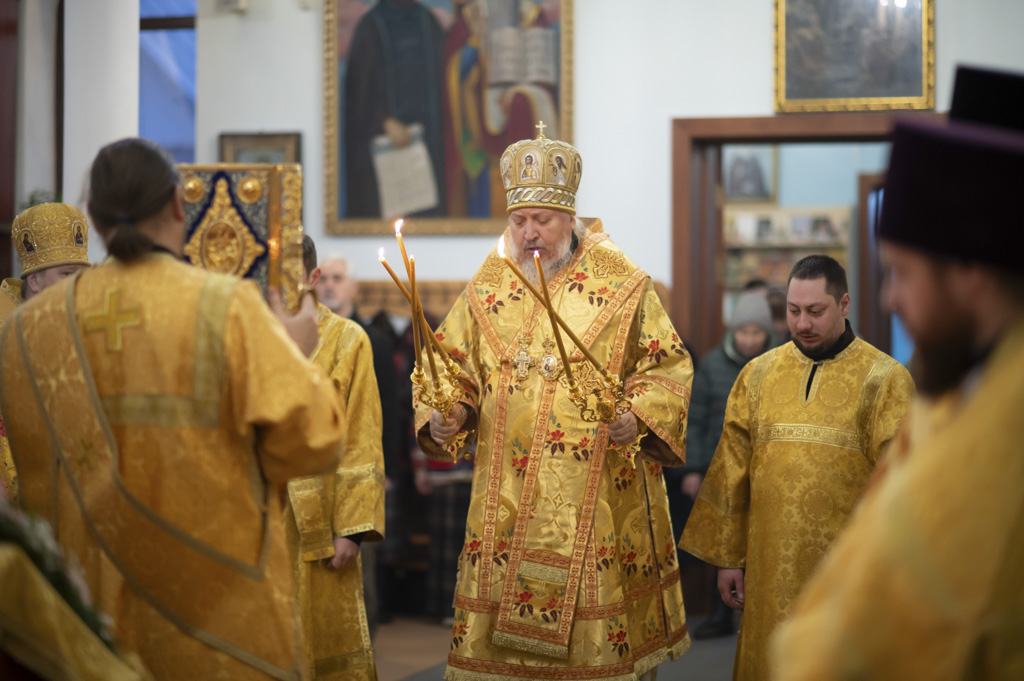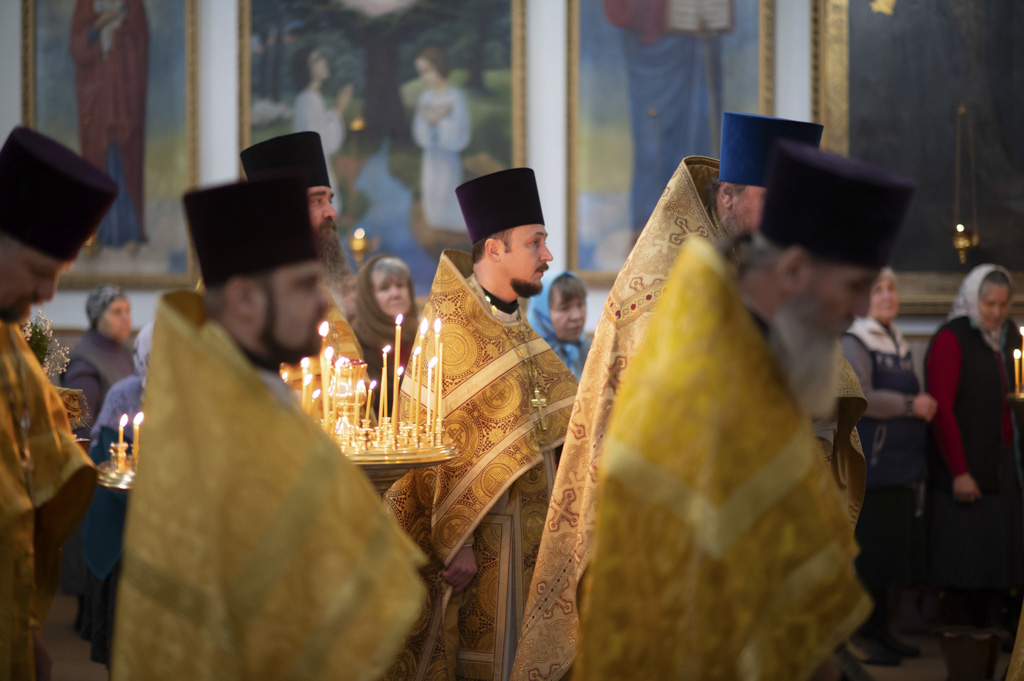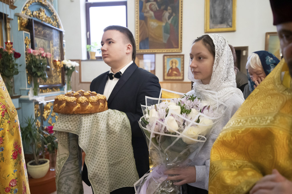 По окончании литургии владыка Стефан поздравил причастников с принятием Святых Христовых Таин и обратился к пастве с архипастырским словом. Особое поздравление прозвучало в адрес настоятеля прихода протоиерея Николая Ефименко, отметившего 60-летие. За усердное служение Церкви отец Николай был удостоен медали святого праведного Иоанна Кормянского. Владыка пожелал юбиляру крепости сил и неокудевающей помощи Божией в дальнейшем пастырском труде.