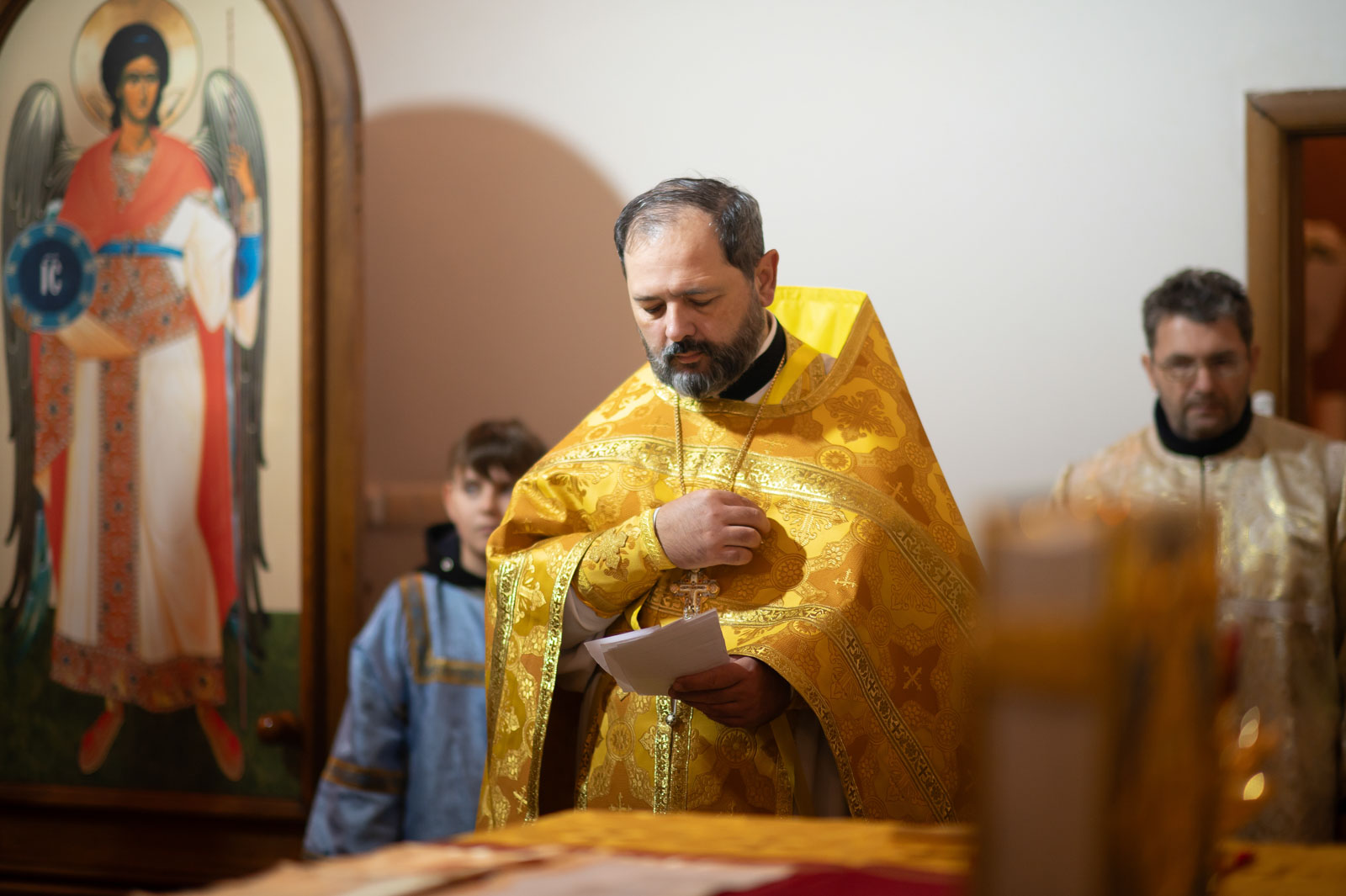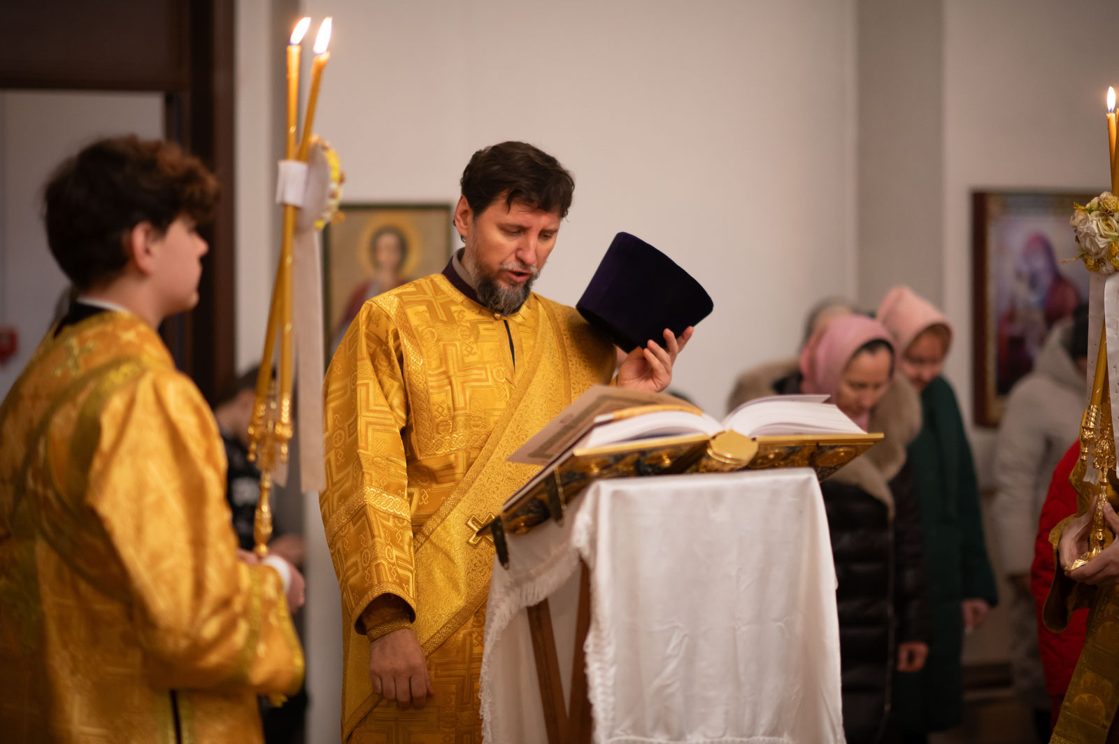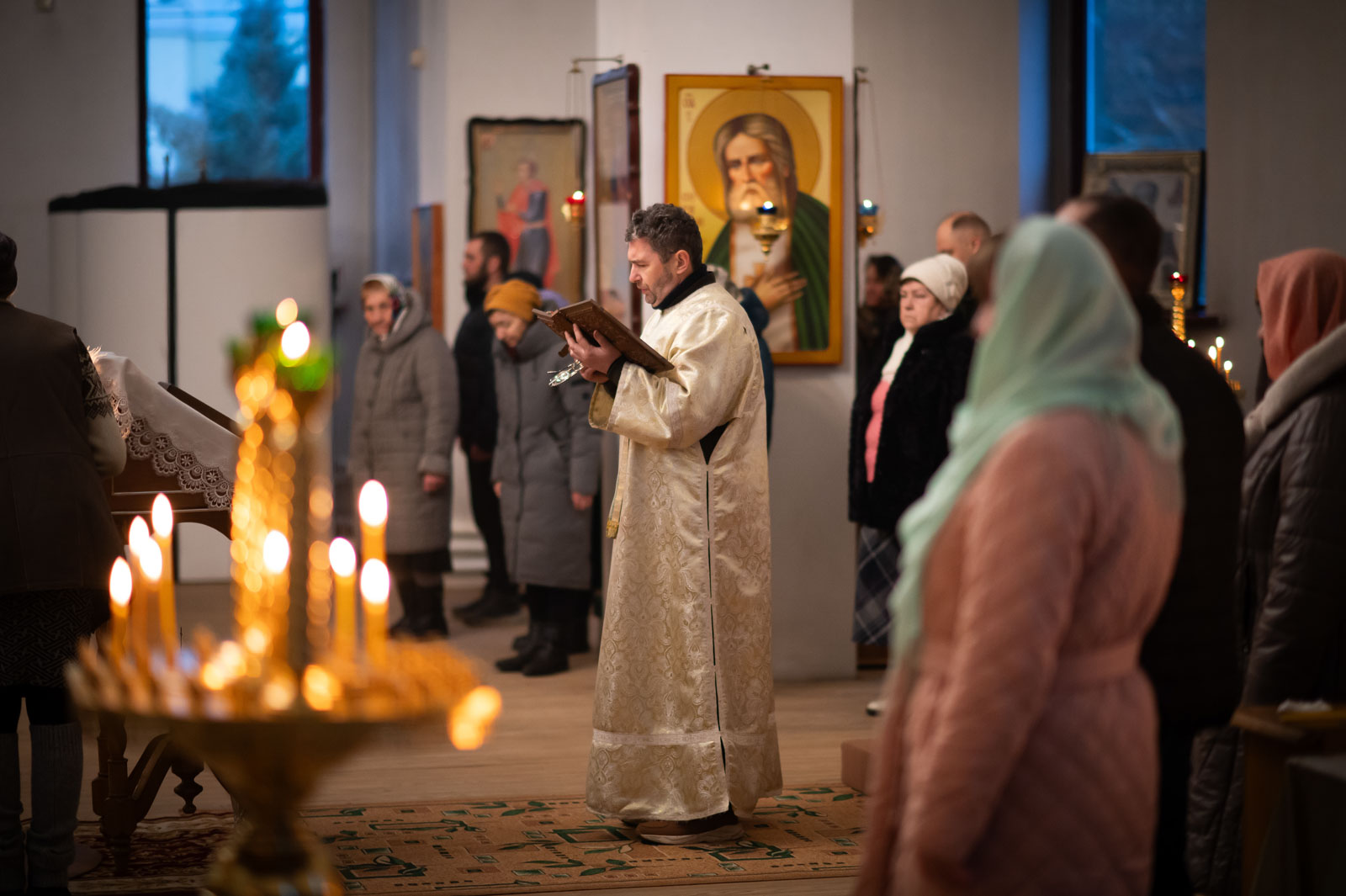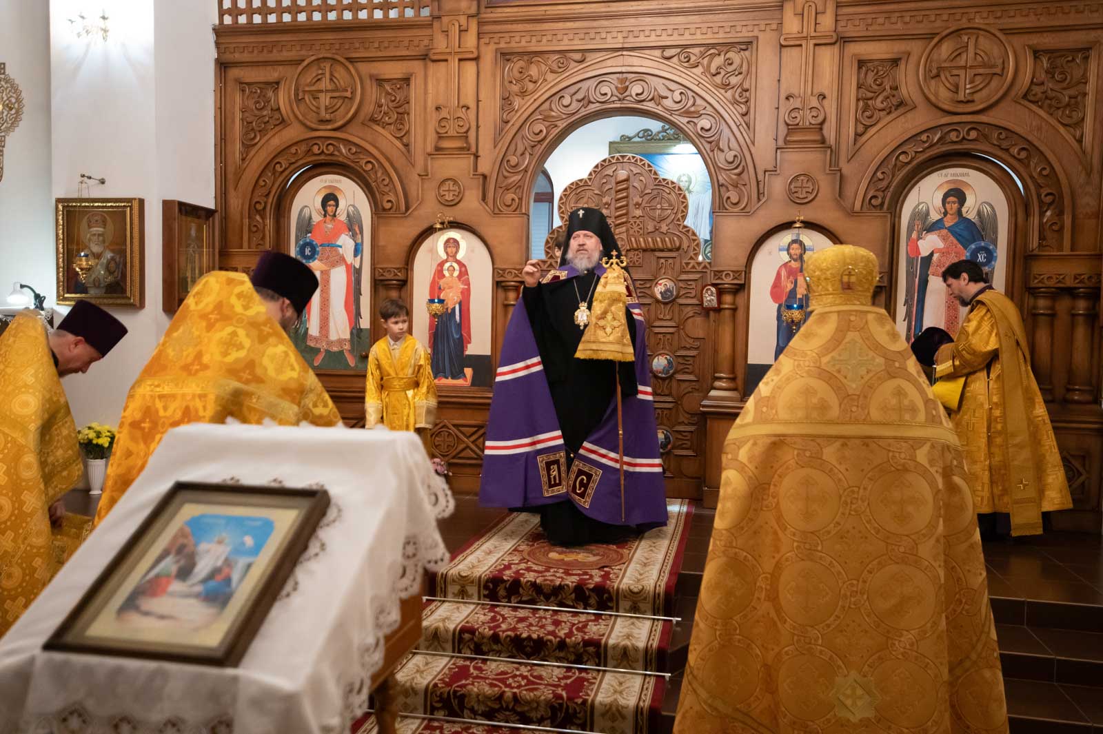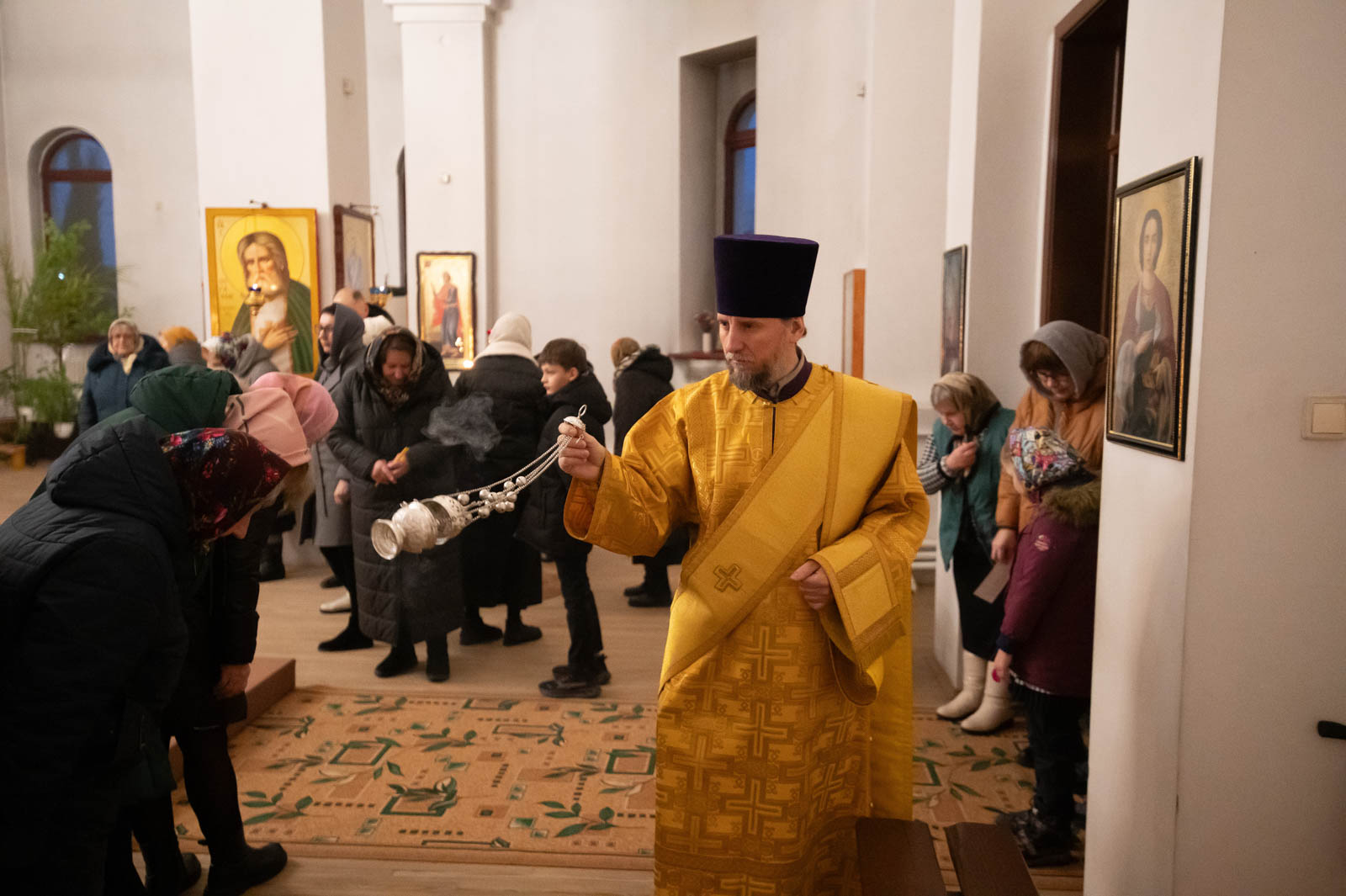 Божественную литургию 21 декабря 2025 года, в Неделю 28-ю по Пятидесятнице, Высокопреосвященнейший Стефан, архиепископ Гомельский и Жлобинский, совершил в приходе храма Казанской иконы Божией Матери в аг. Мичуринская.