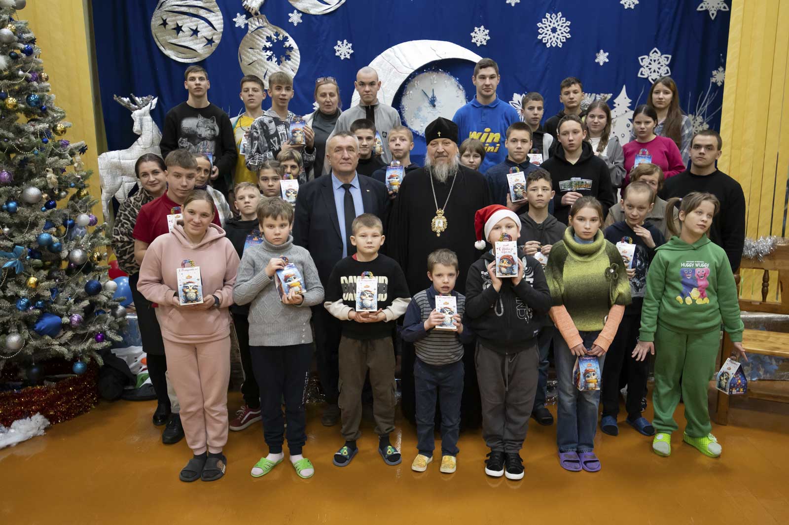 Кроме того, воспитанникам были переданы книги духовного содержания, иконы и нательные крестики. От архипастыря дети получили сладкие подарки и фрукты.