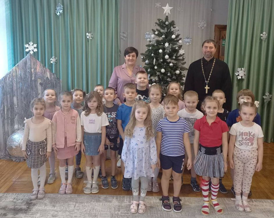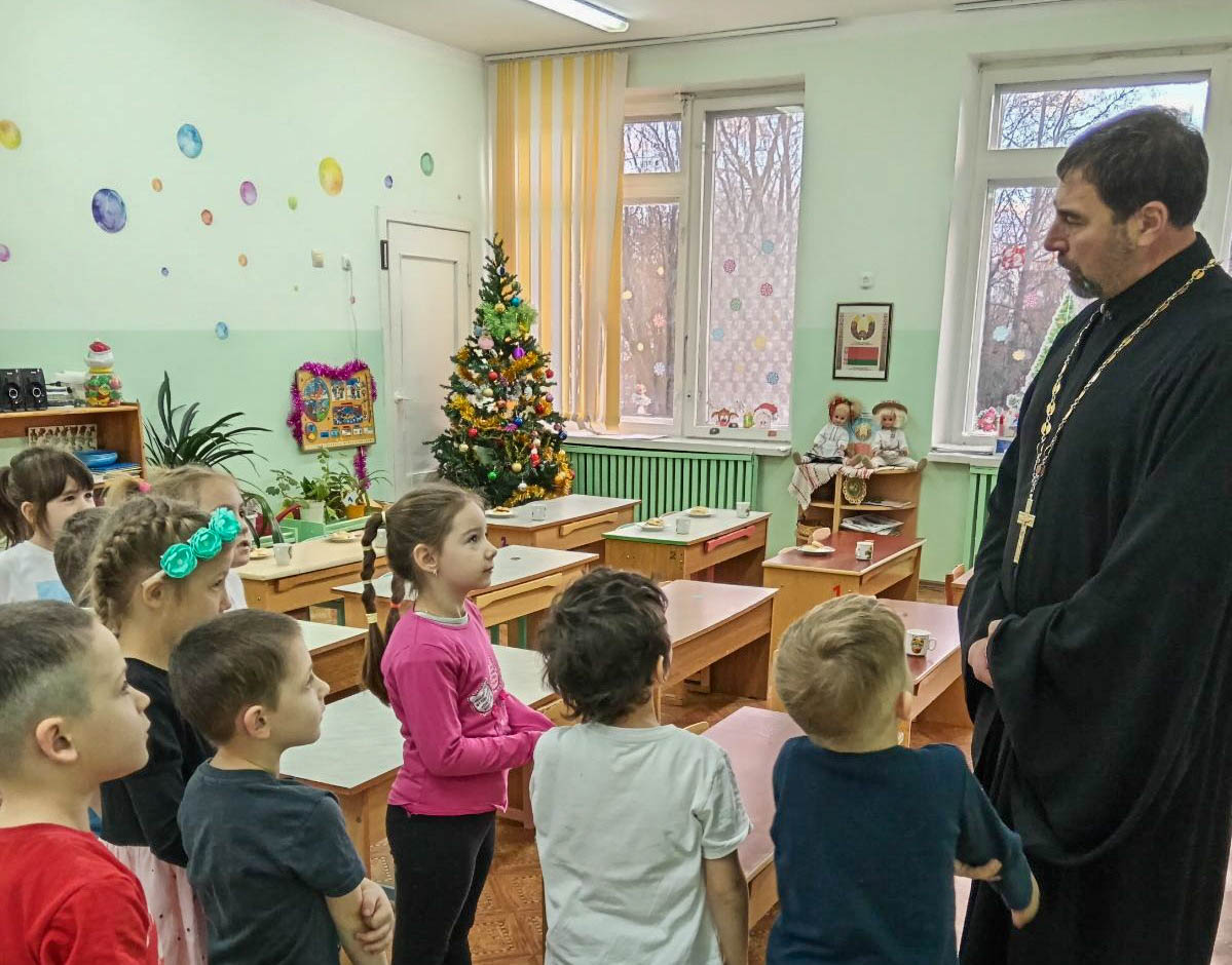 Воспитанников детских садов №17 и №19 г.Жлобина навестил иерей Михаил Маркосян, клирик прихода храма преподобного Серафима Саровского. Священник пообщался с ребятами, рассказал им о значении и радости Рождества Христова и объяснил, как важно важно нести в мир свет добра.