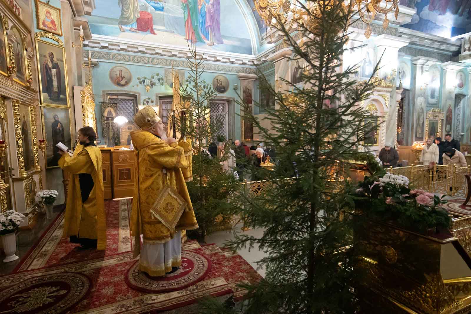 Вечернее богослужение с чтением акафиста на распев 28 декабря 2025 года в Петро-Павловском кафедральном соборе г.Гомеля совершил Высокопреосвященнейший Стефан, архиепископ Гомельский и Жлобинский.
