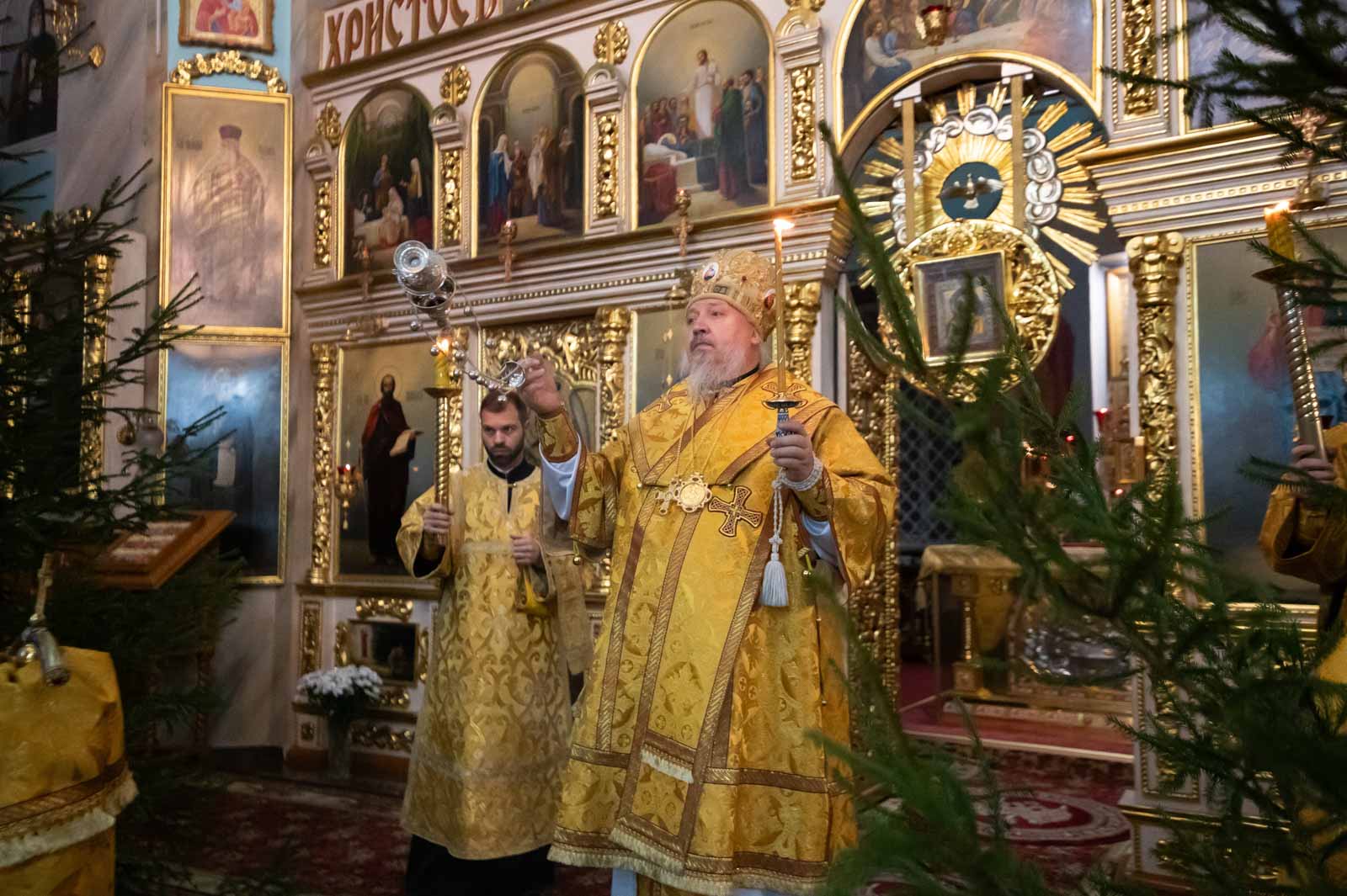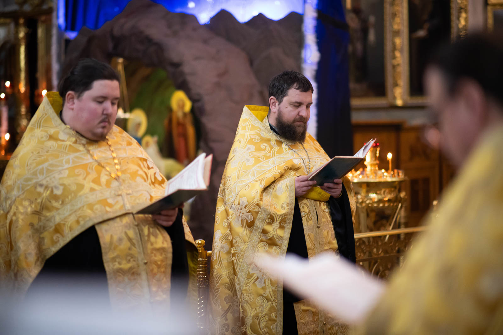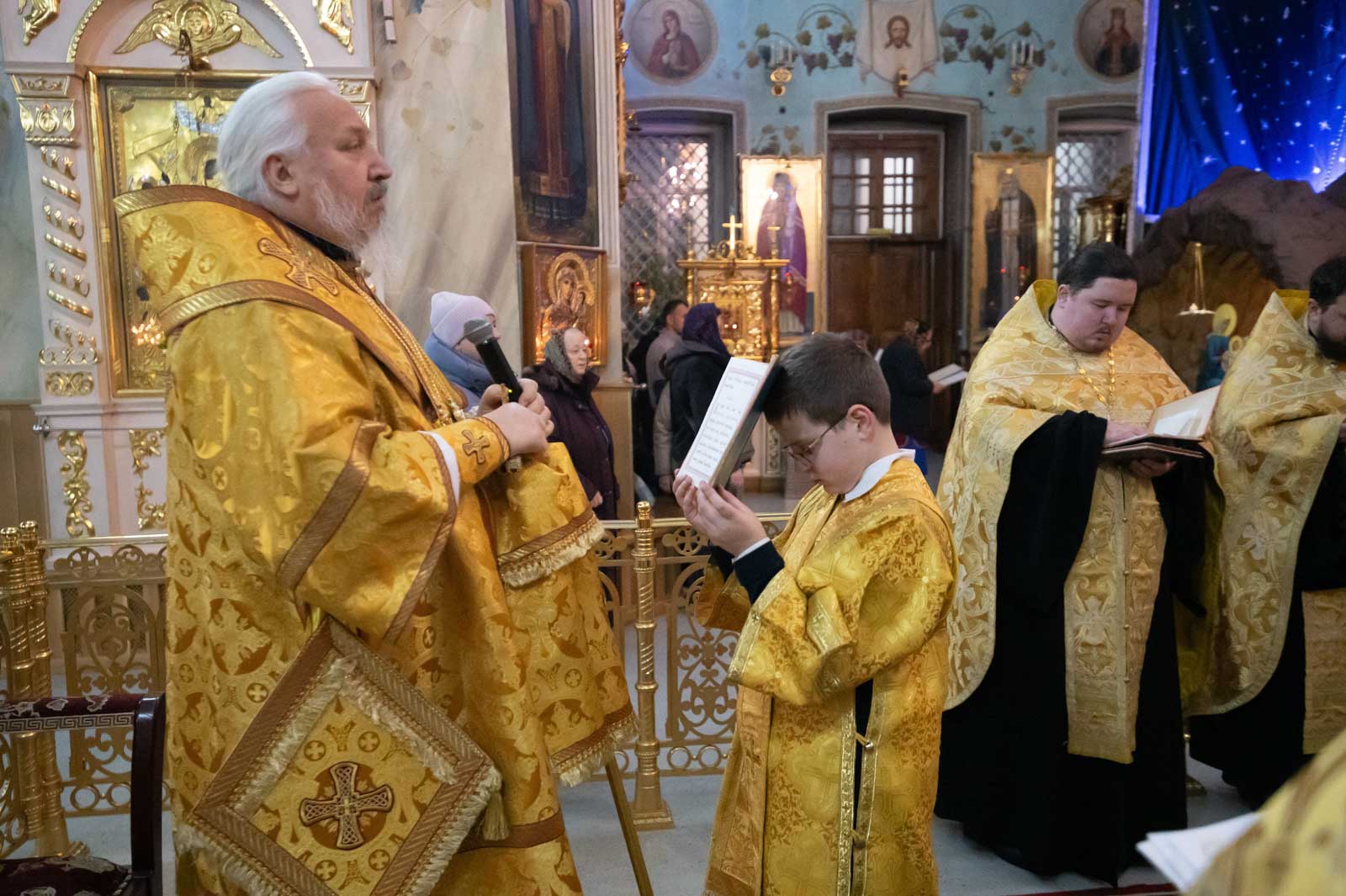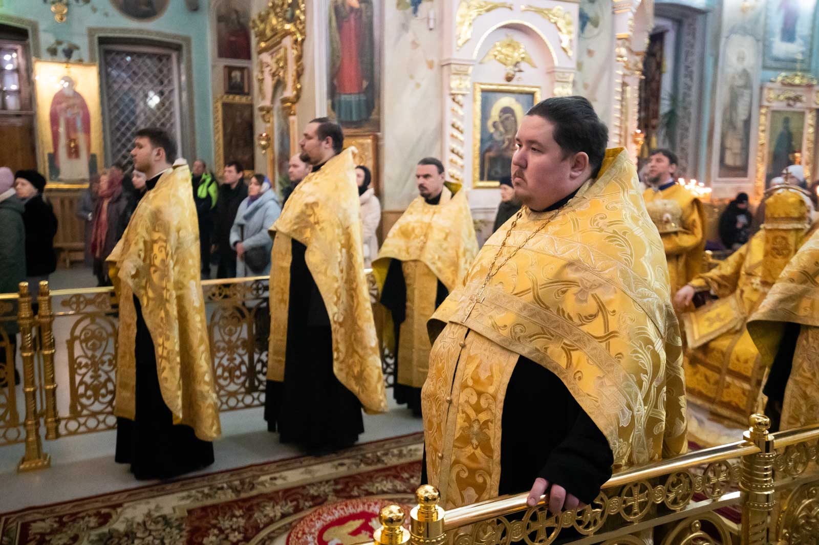 Его Высокопреосвященству сослужили клирики кафедрального собора.