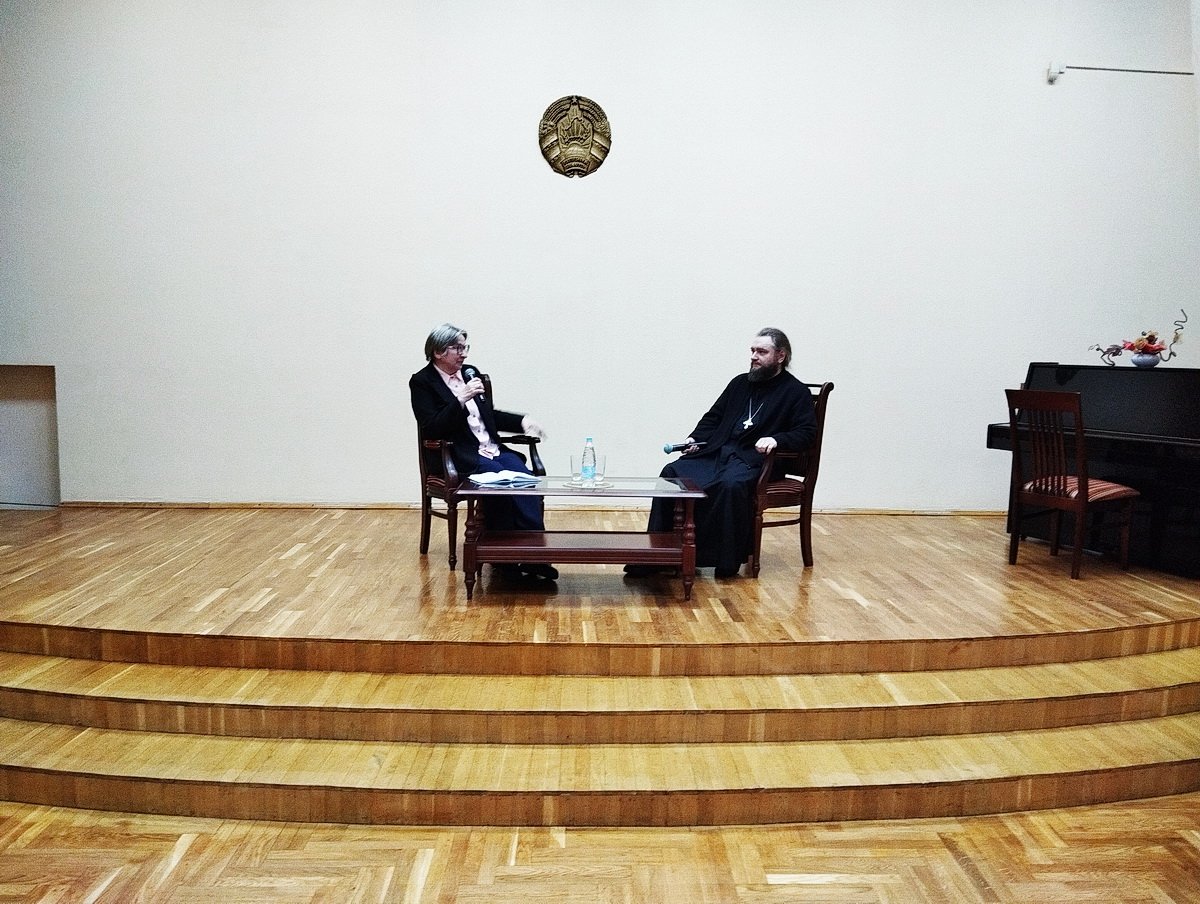 Вместе с отцом Саввой ведущей вечера была кандидат филологических наук Татьяна Николаевна Усольцева.