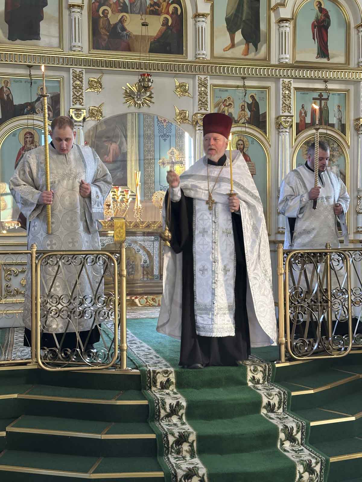Его Высокопреосвященству сослужили: протоиерей Алексей Смотрицкий, благочинный округа и настоятель прихода храма Святой Живоначальной Троицы, а также духовенство Жлобинского благочиния. Молитвенно разделили скорбь о почившем игумения Иоанна (Ярец) и сестры Успенского женского монастыря деревни Казимирово, а также прихожане храма.