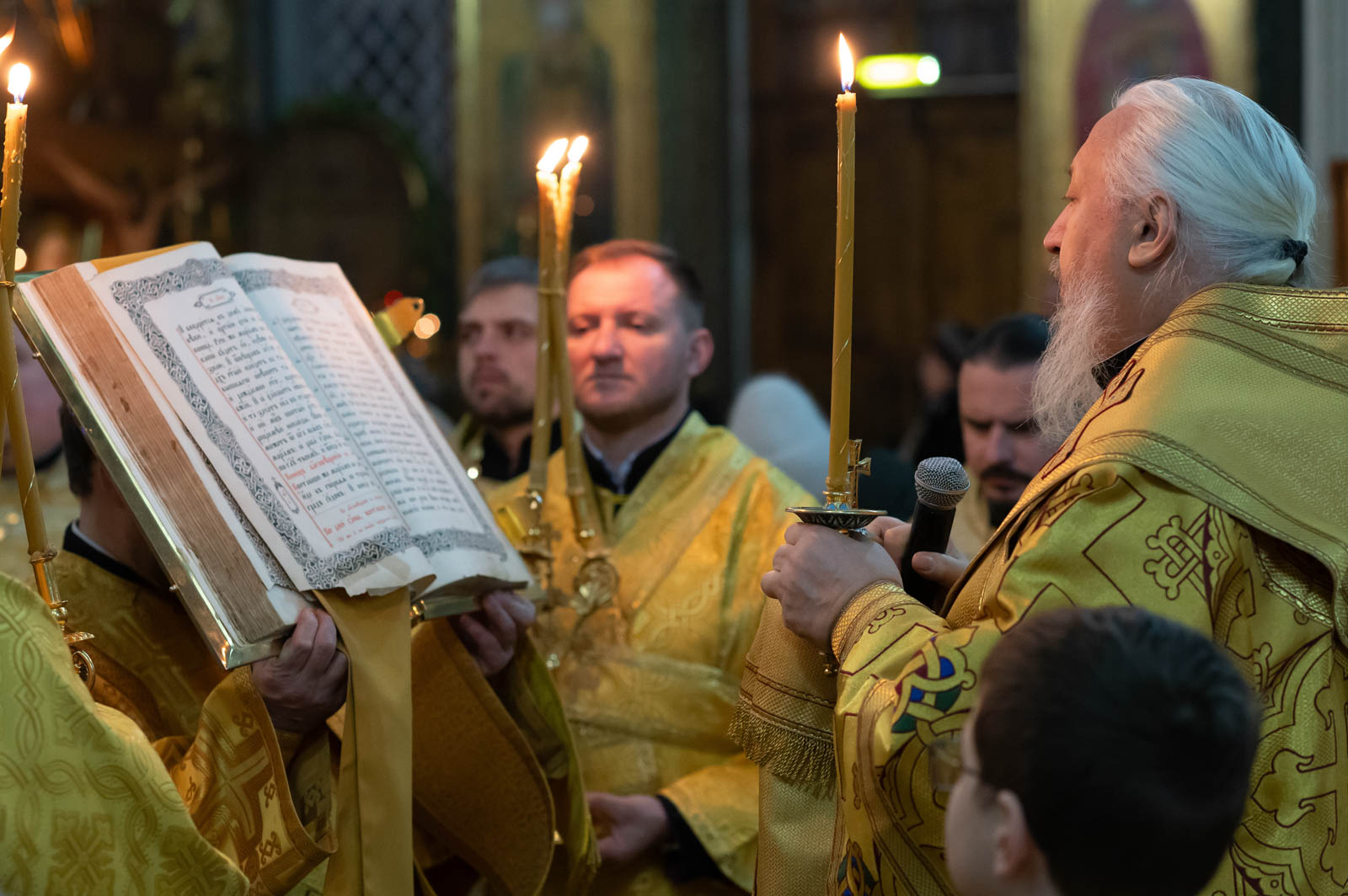 Его Высокопреосвященству сослужили клирики кафедрального собора.