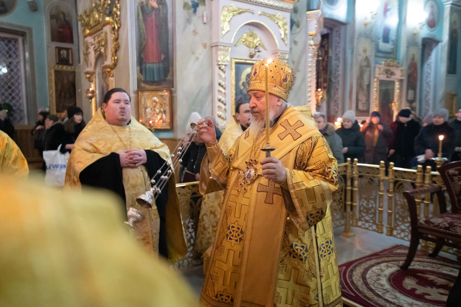 Вечернее богослужение с чтением акафиста на распев 4 января 2026 года в Петро-Павловском кафедральном соборе г.Гомеля совершил Высокопреосвященнейший Стефан, архиепископ Гомельский и Жлобинский.