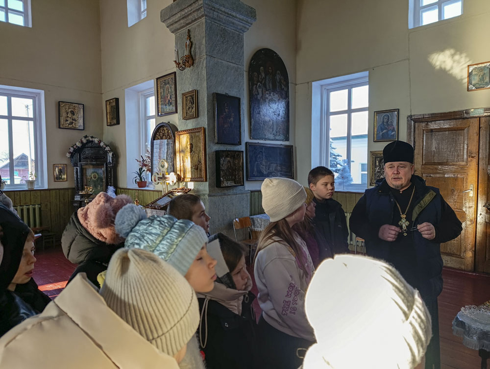Так, в храме святителя Николая Чудотворца города Добруша 5 января 2026 года состоялись встречи с воспитанниками каникулярных лагерей из средней школы №3 и гимназии города Добруша. Настоятель храма, протоиерей Алексий Пилипенко, у рождественского вертепа, воссоздающего сцену из Вифлеемской пещеры, поведал школьникам историю рождения Богочеловека. Особое внимание в беседе было уделено христианскому отношению к окружающим и совершению дел милосердия. После обсуждения возникших вопросов каждый участник встречи получил от прихода сладкий подарок.