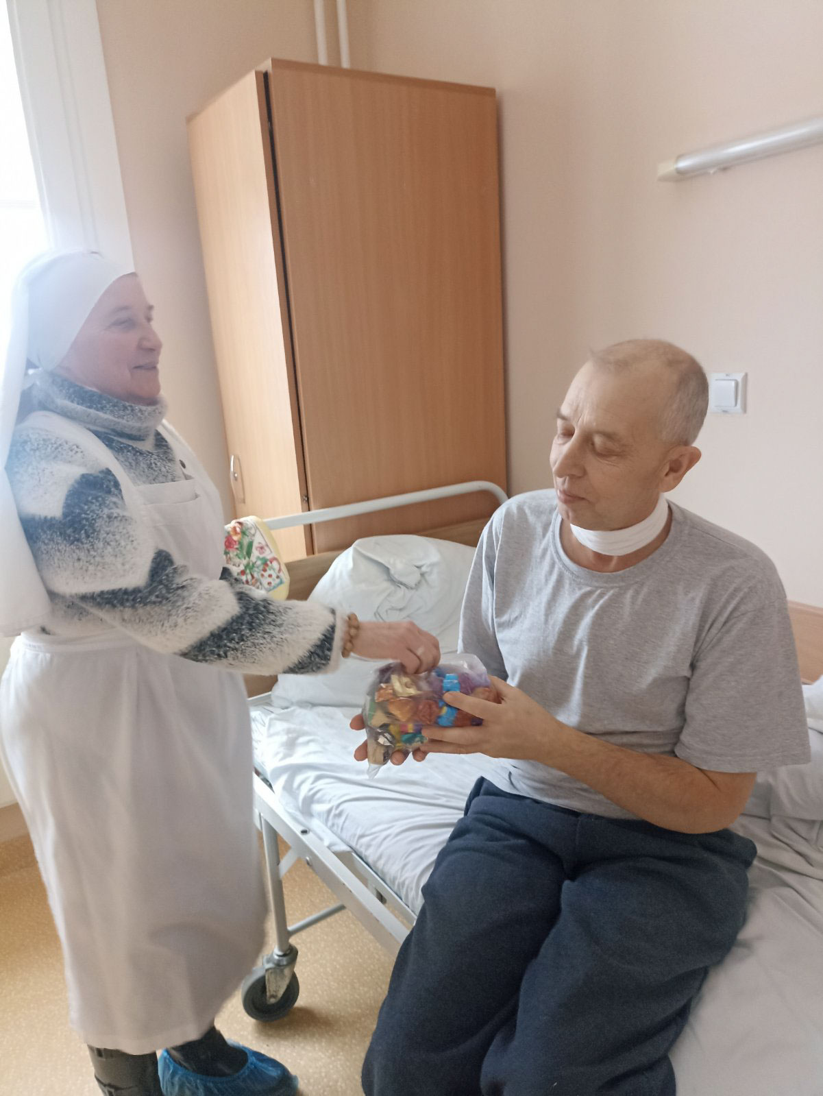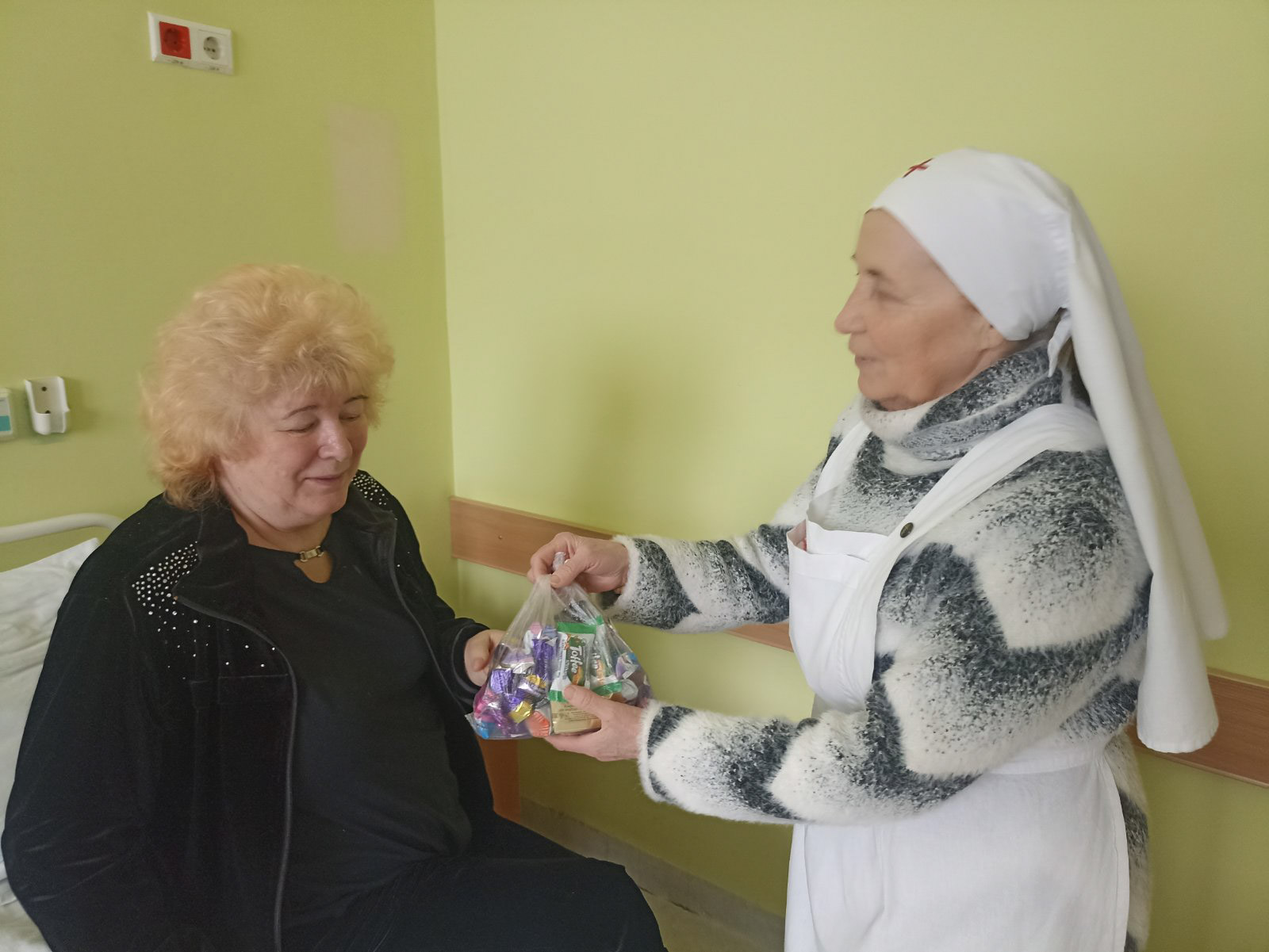 Традиционная акция “Рождественский дар” проводится сестрами ежегодно в день светлого праздника Рождества Христова и дает возможность пациентам разделить радость торжества. Около 100 человек, находящихся на лечении в отделениях детской и взрослой гематологии, хирургии, ЧАЭС, иммунопатологии, гинекологии и офтальмологии в этот день получили сладкие подарки.