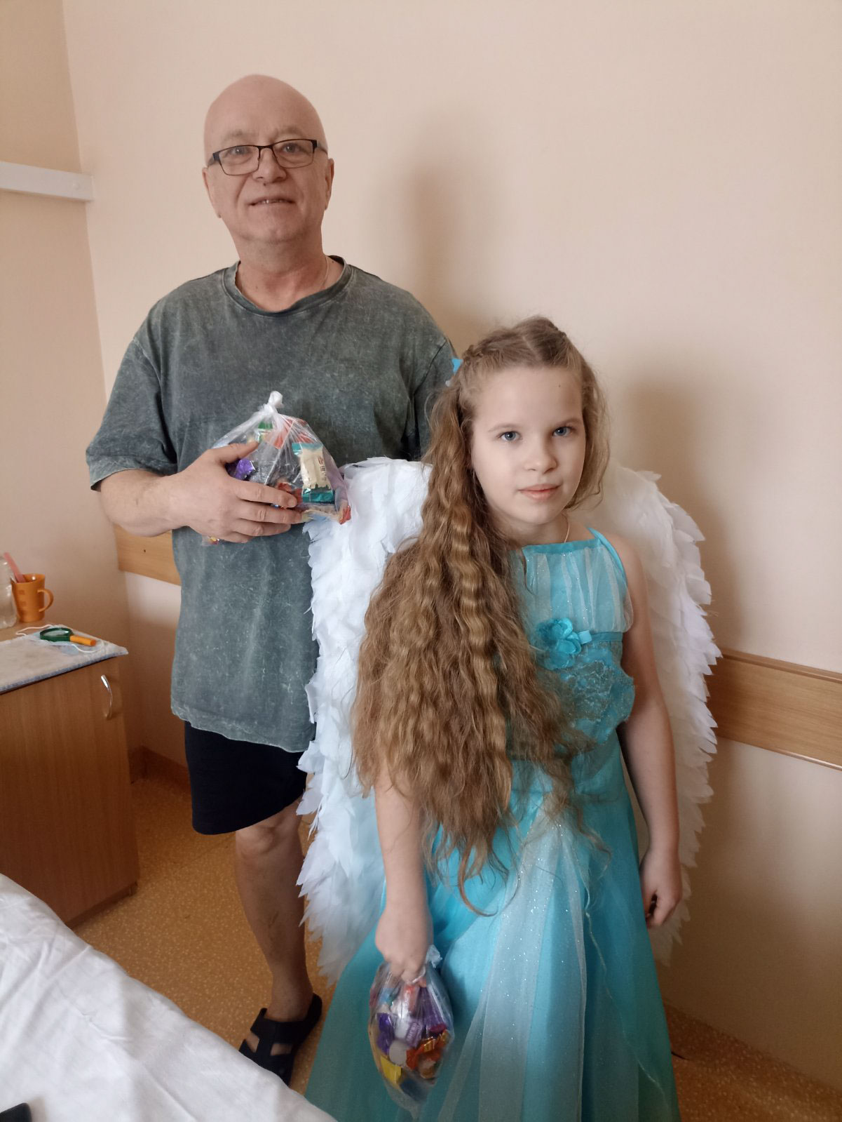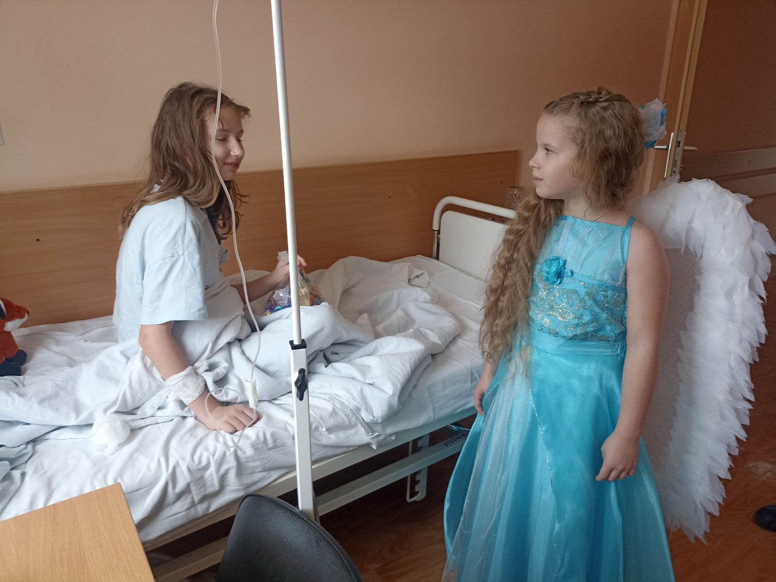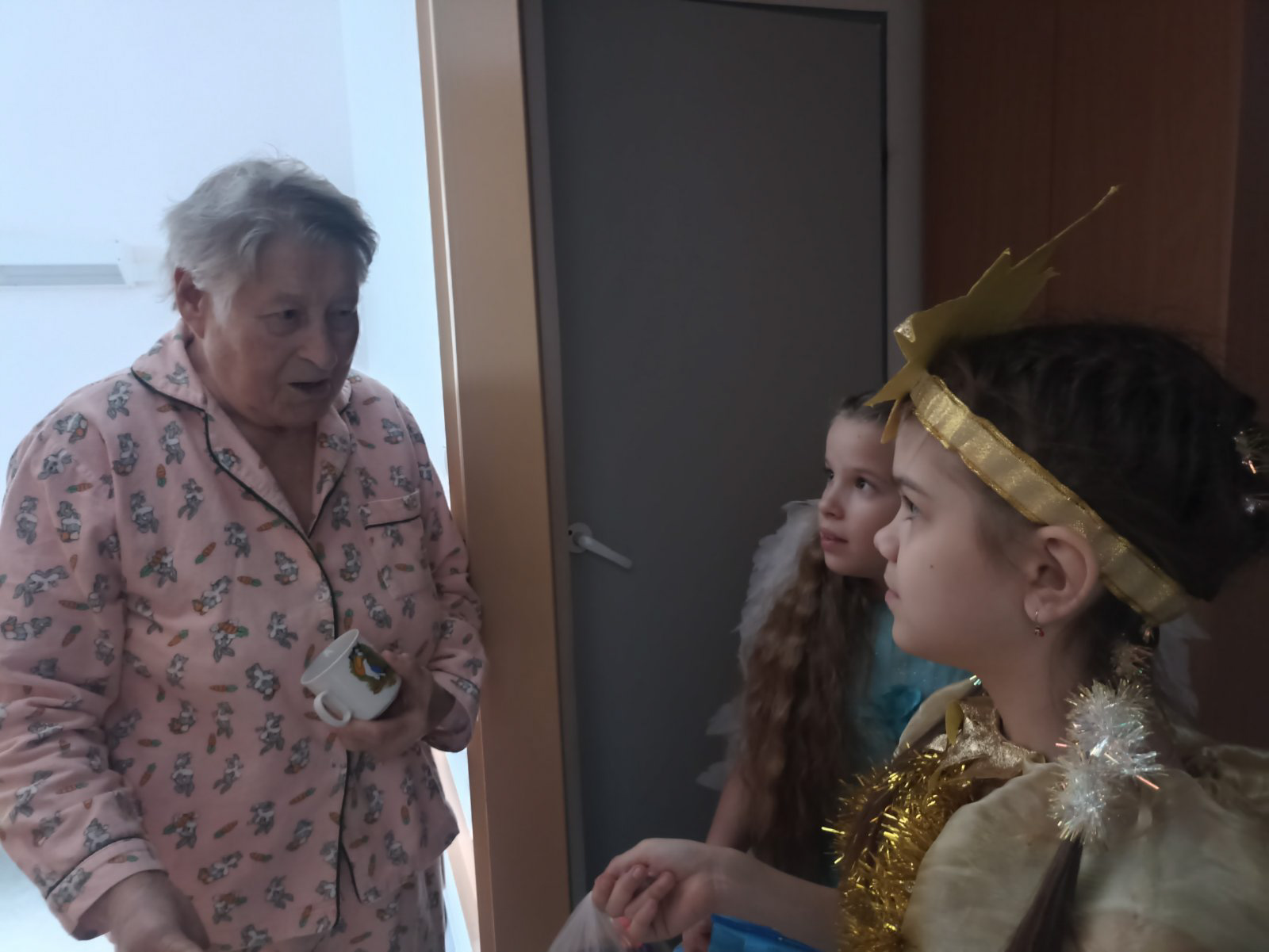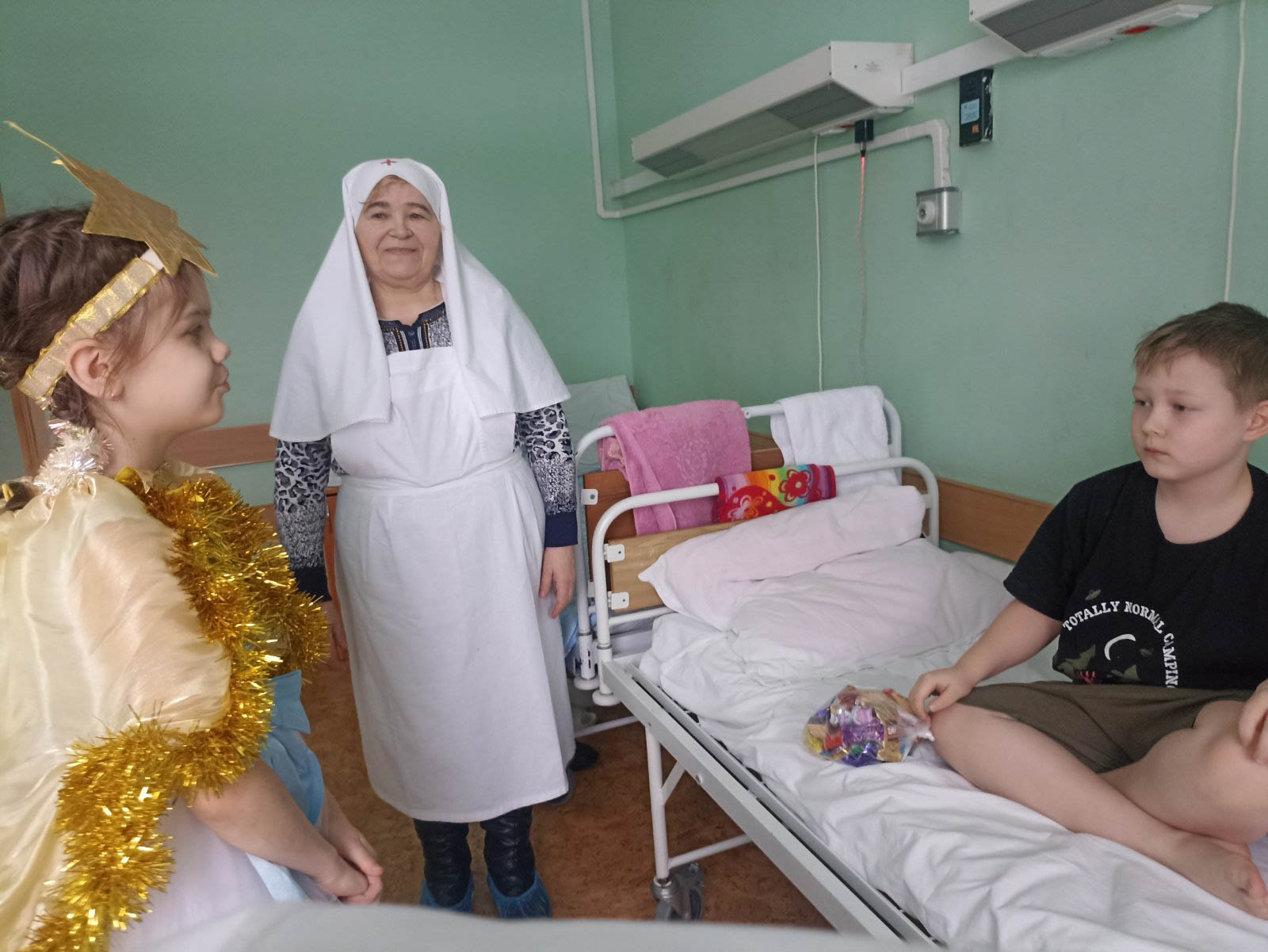 Вместе с сестричеством пациентов поздравляли воспитанницы воскресной школы при Александро- Невском храме Василиса и Ксения.