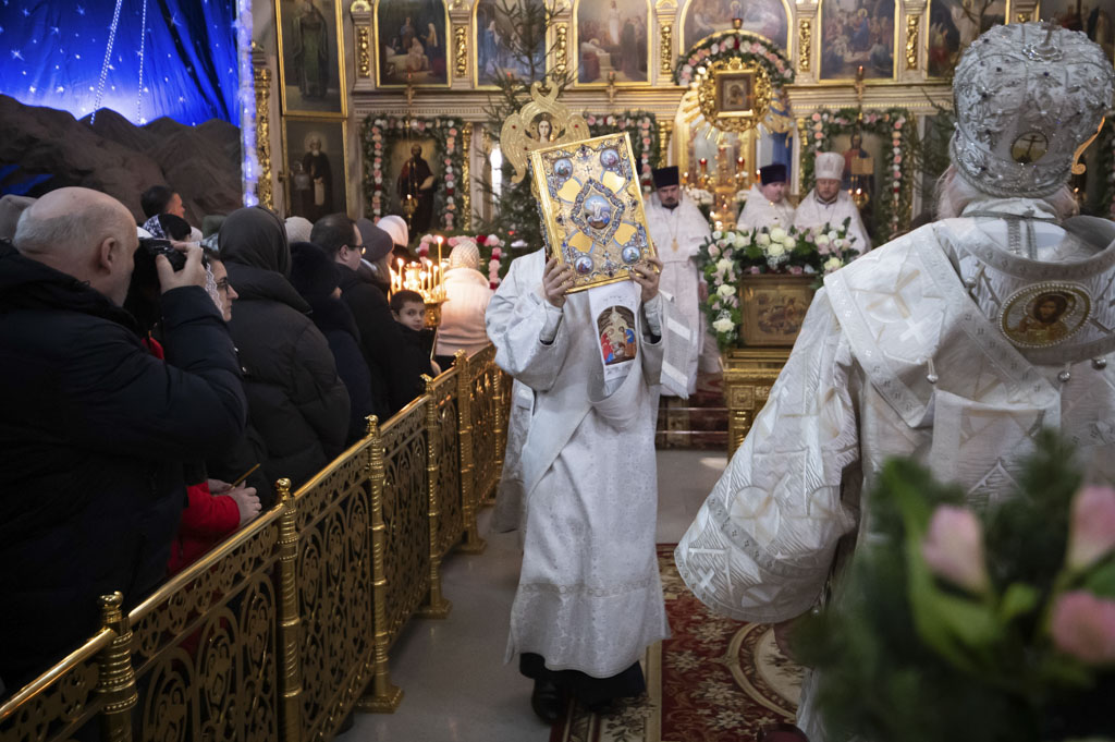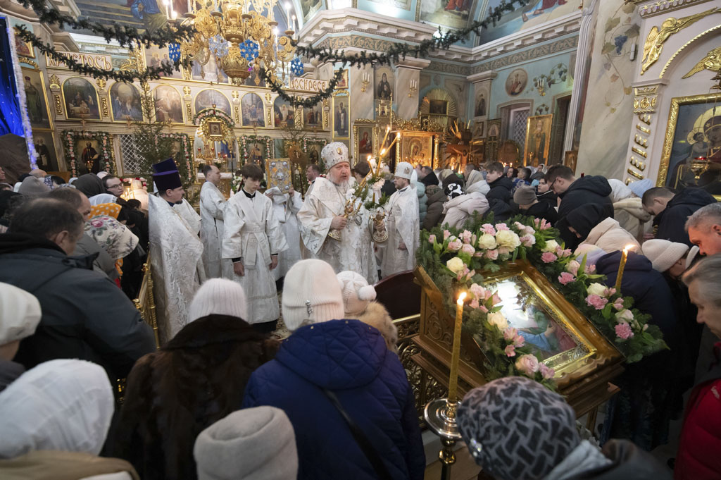 По запричастном стихе в кафедральном соборе и во всех храмах Гомельской епархии было оглашено Рождественское послание Святейшего Патриарха Московского и всея Руси Кирилла.