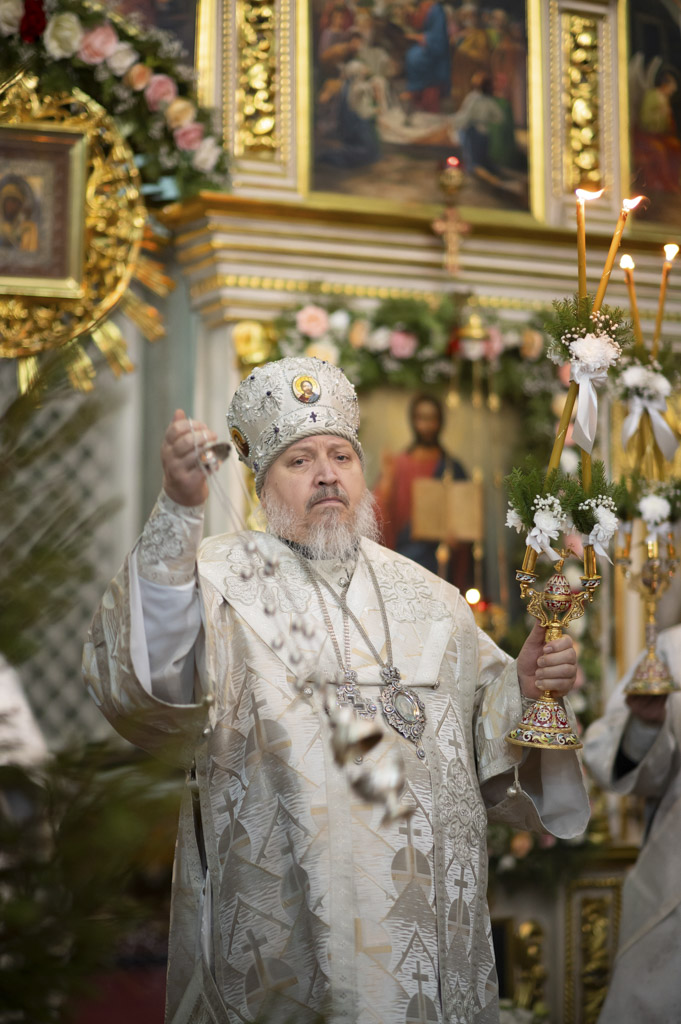 По окончании богослужения архиепископ Стефан поздравил духовенство и всех молящихся со светлым праздником Рождества Христова, пожелав всем здравия, благоденствия и мира. Затем он поздравил причастников с принятием Святых Христовых Тайн и преподал молящимся архипастырское благословение.