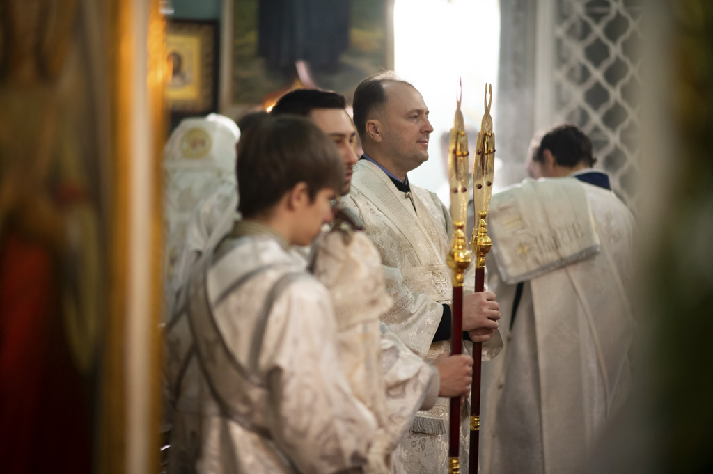 Во время богослужения были вознесены сугубые молитвенные прошения о восстановлении мира.