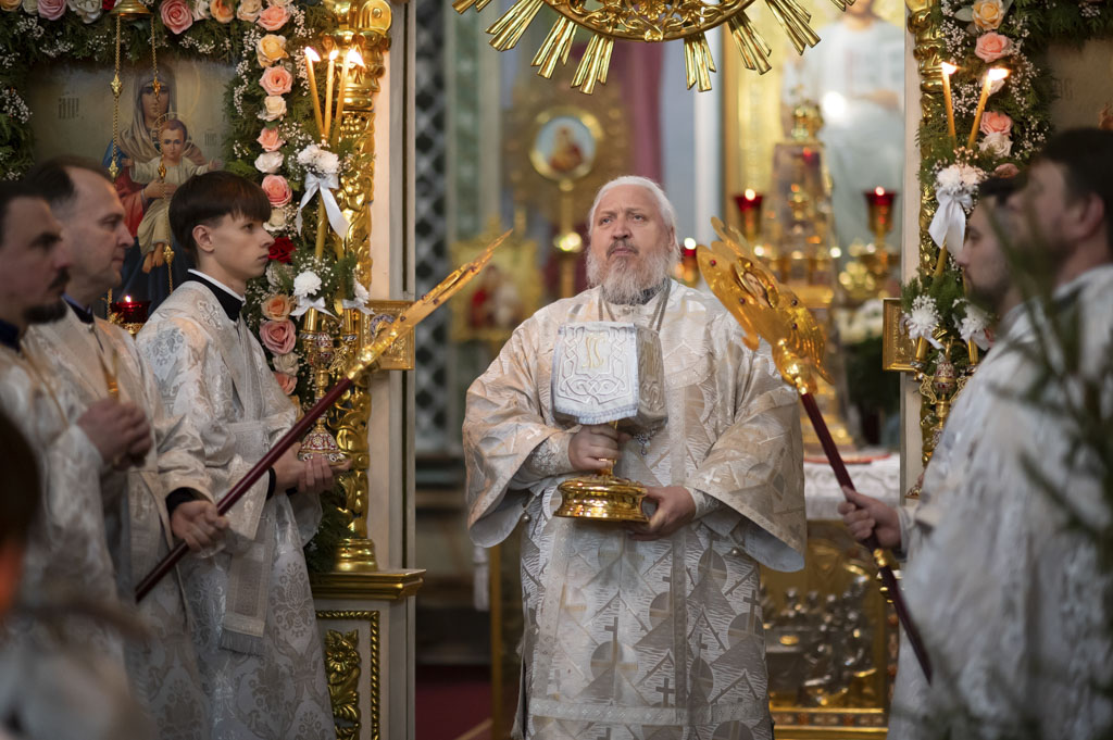 Праздничную Божественную литургию в эту ночь возглавил Высокопреосвященнейший Стефан, архиепископ Гомельский и Жлобинский.