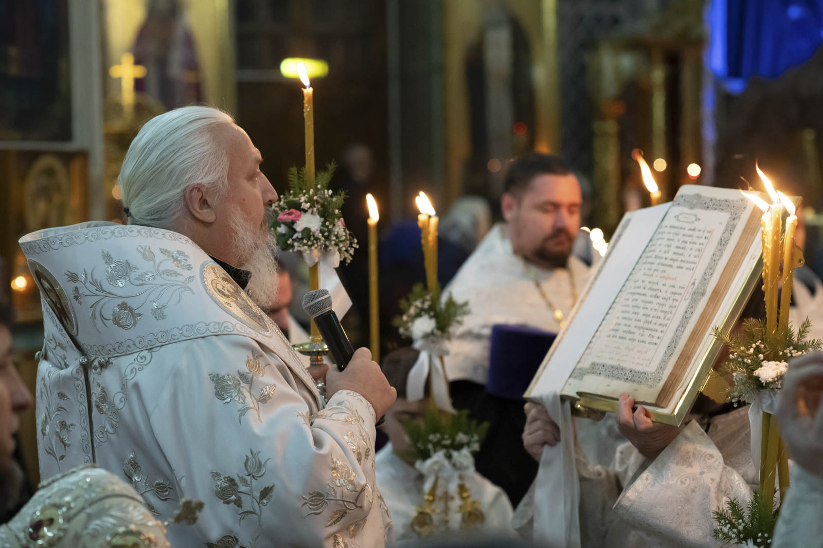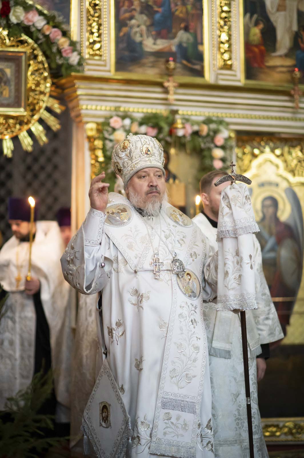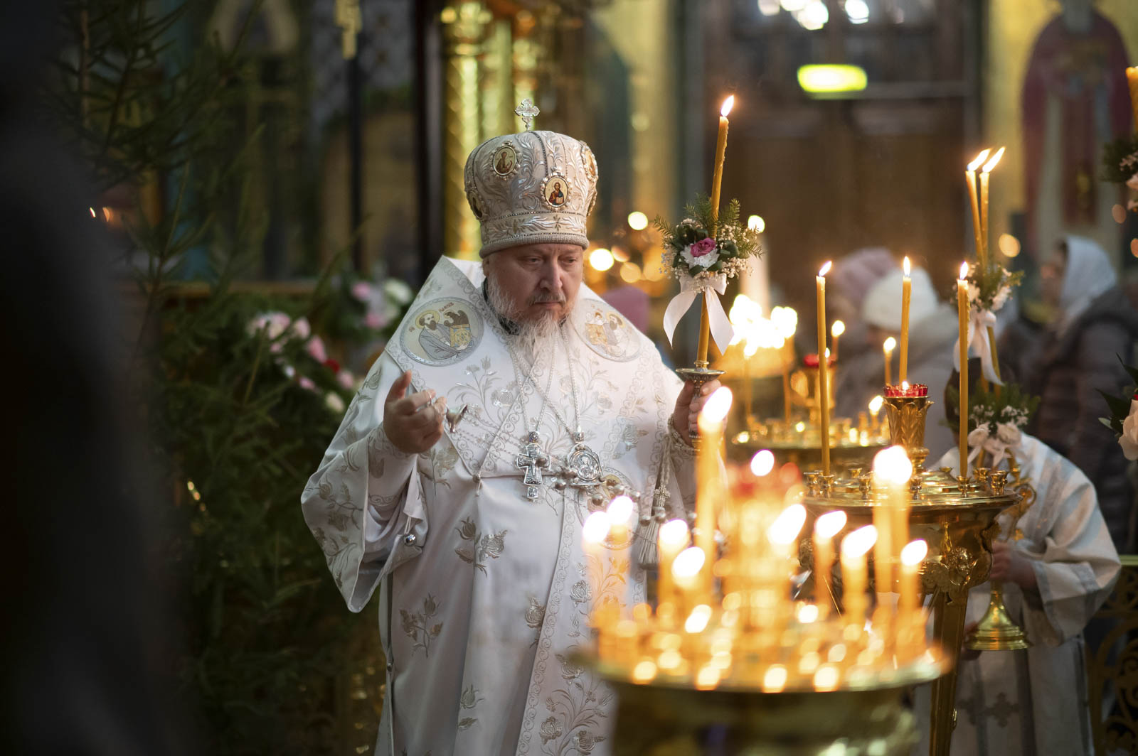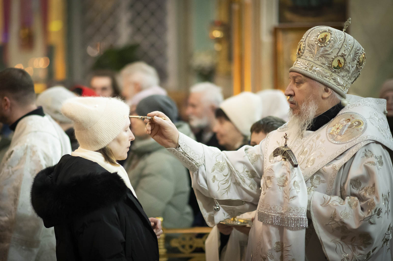 Богослужение в попразднство Рождества Христова отличалось особой торжественностью, наполняя под сводами собора сердца молящихся радостью о пришедшем в мир Богомладенце. Во время чтения канона на утрени архипастырь совершил помазание верующих освященным елеем.