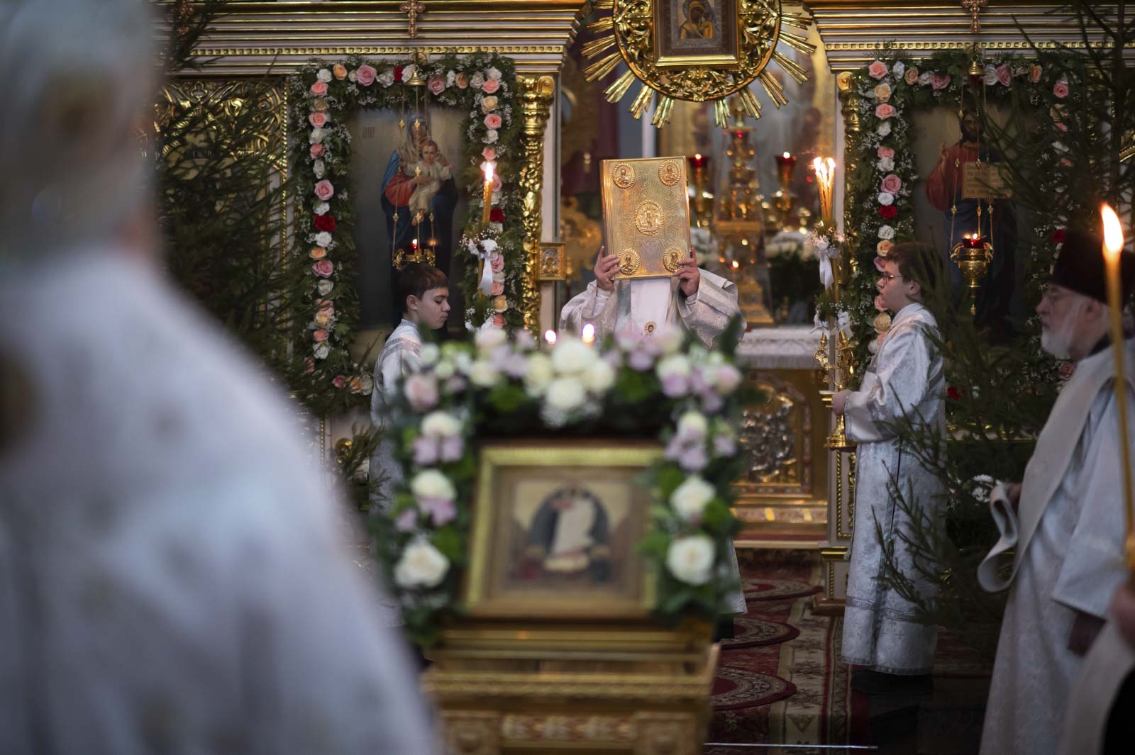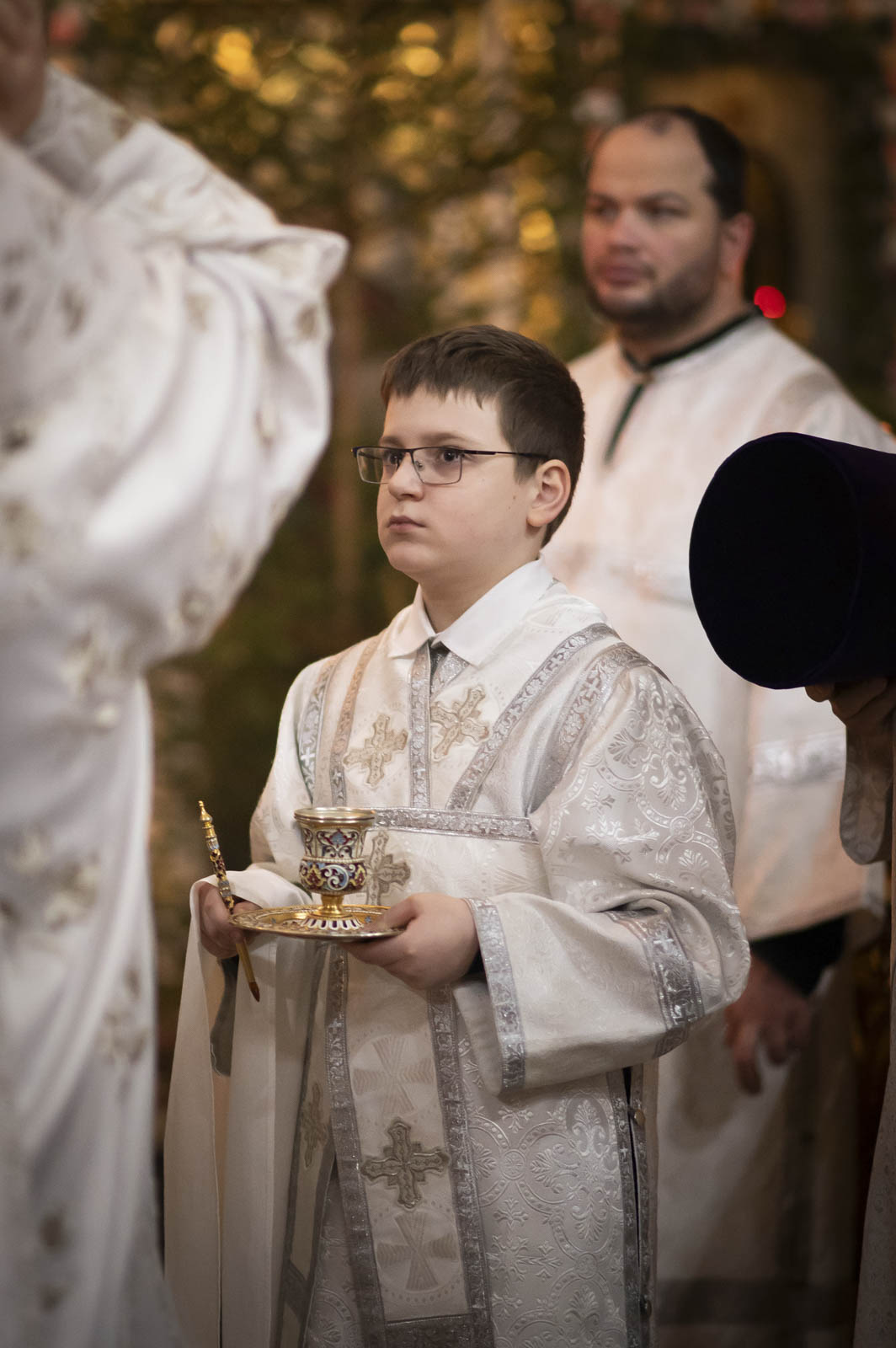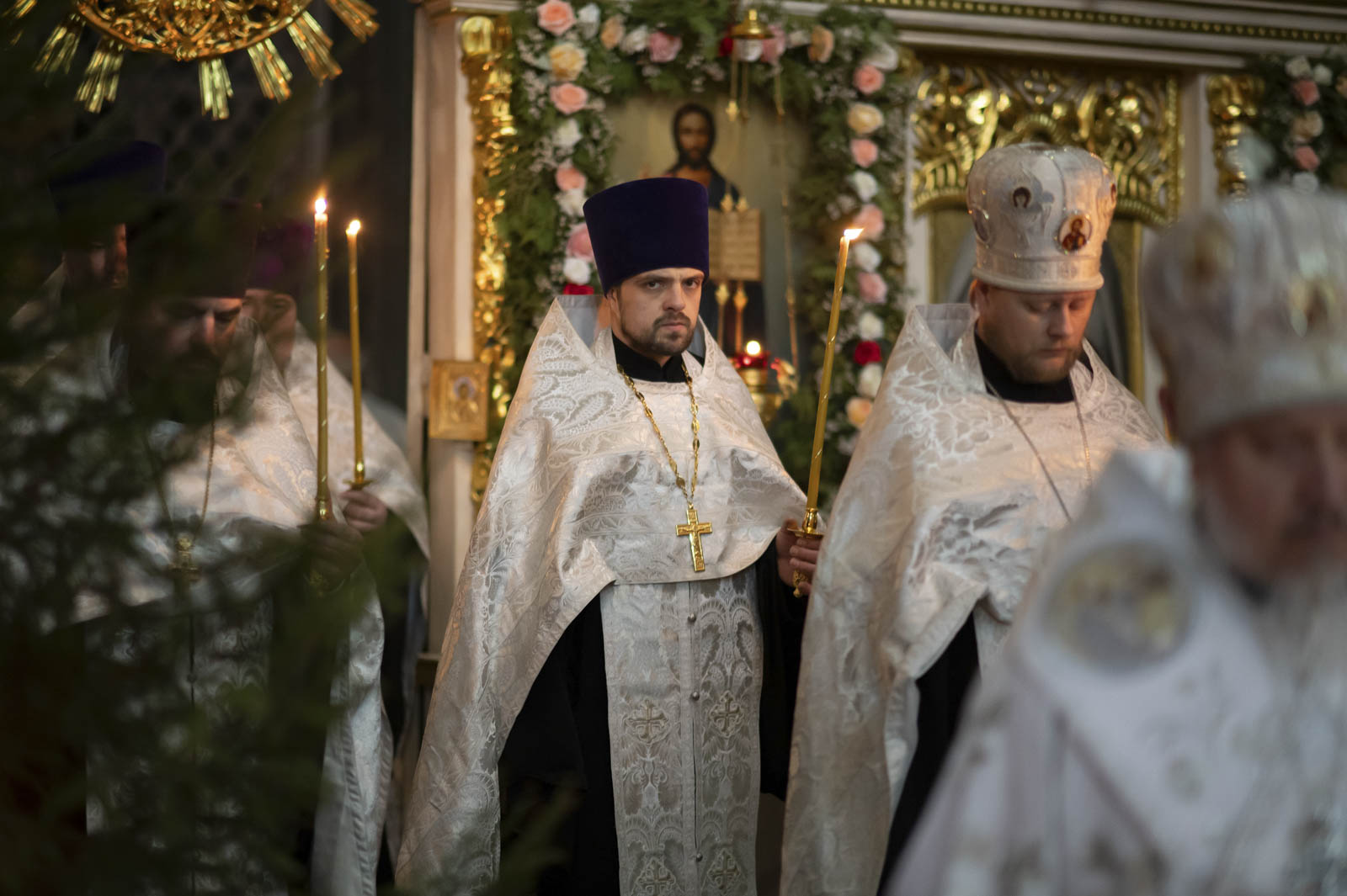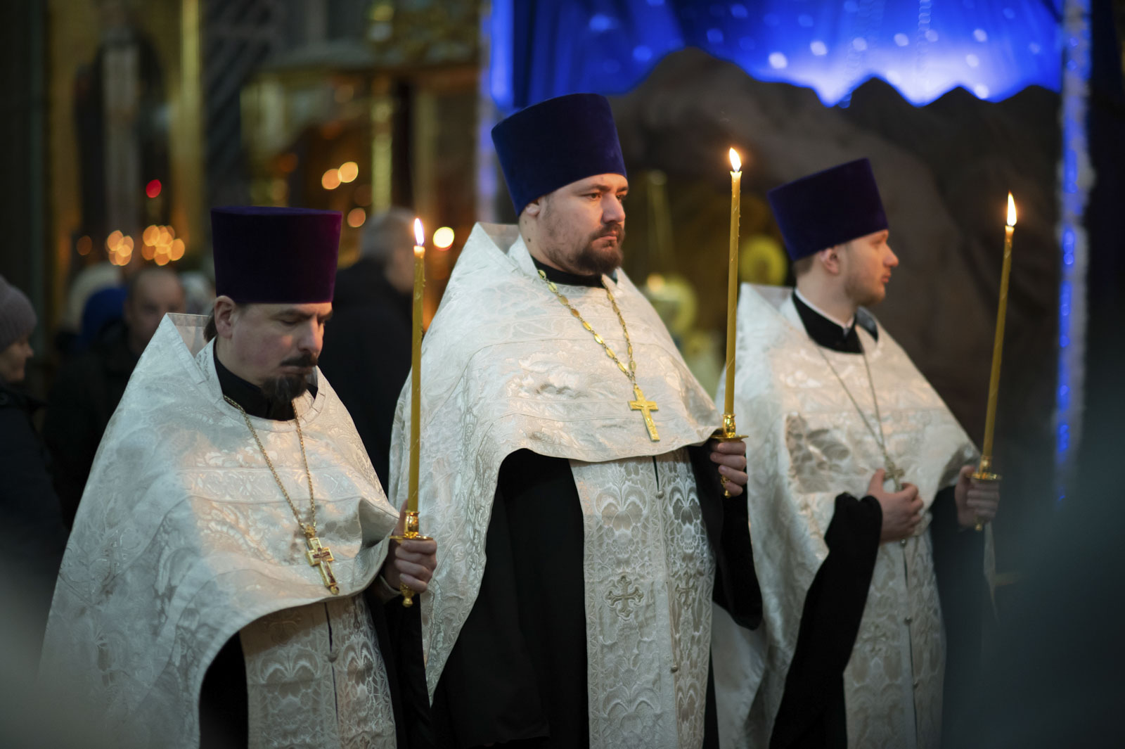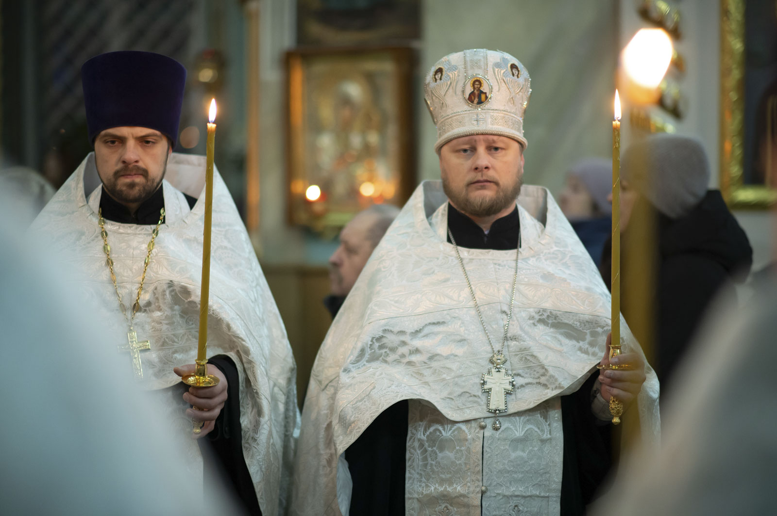 Богослужение в попразднство Рождества Христова отличалось особой торжественностью, наполняя под сводами собора сердца молящихся радостью о пришедшем в мир Богомладенце. Во время чтения канона на утрени архипастырь совершил помазание верующих освященным елеем.