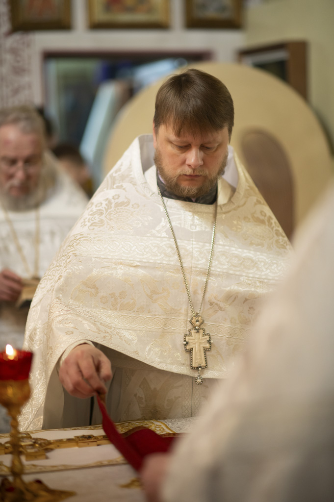 Высокопреосвященнейшему сослужили: секретарь Гомельской епархии протоиерей Георгий Алампиев, благочинный Жлобинского округа протоиерей Алексей Смотрицкий, настоятель прихода протоиерей Михаил Борисенок и духовенство епархии.