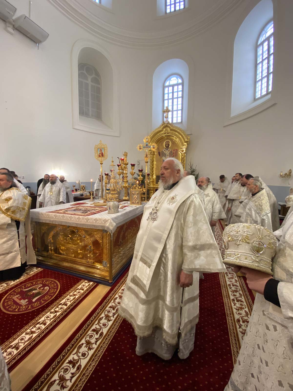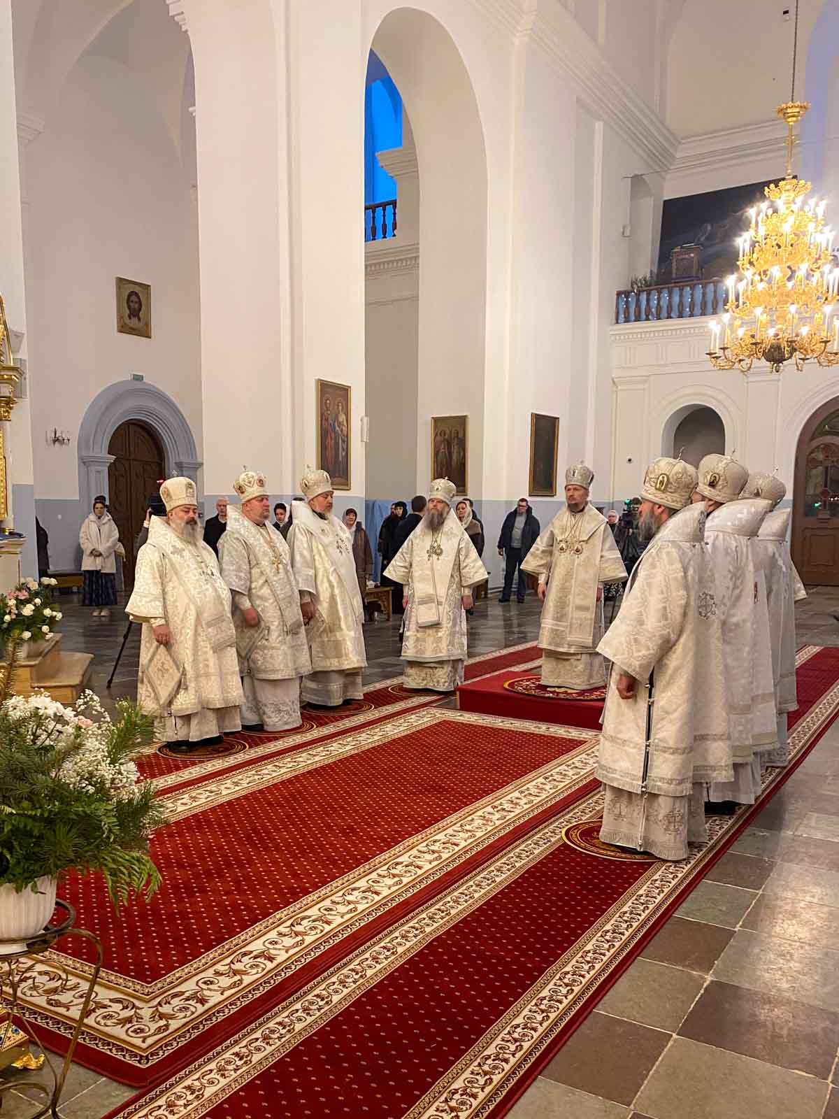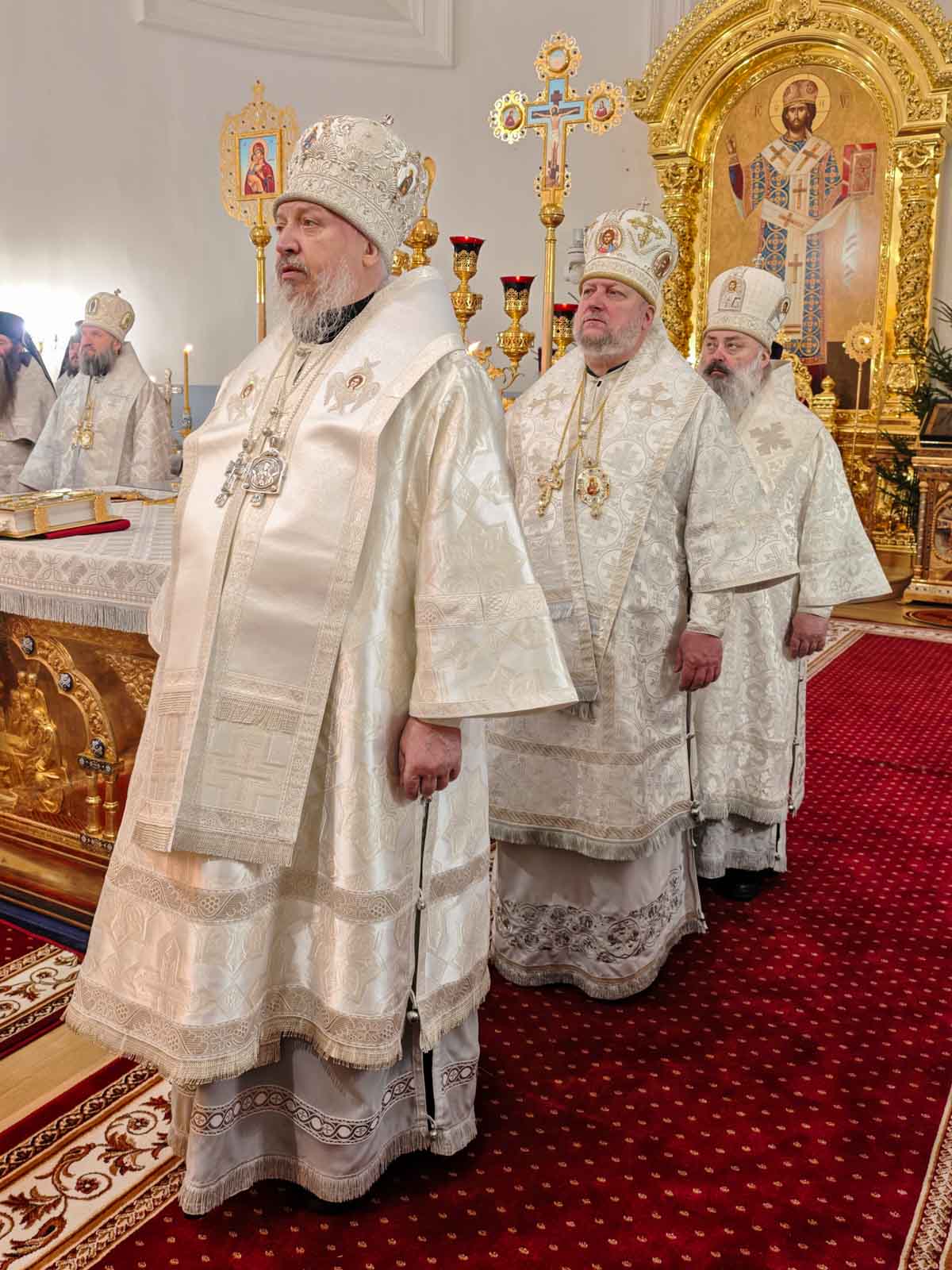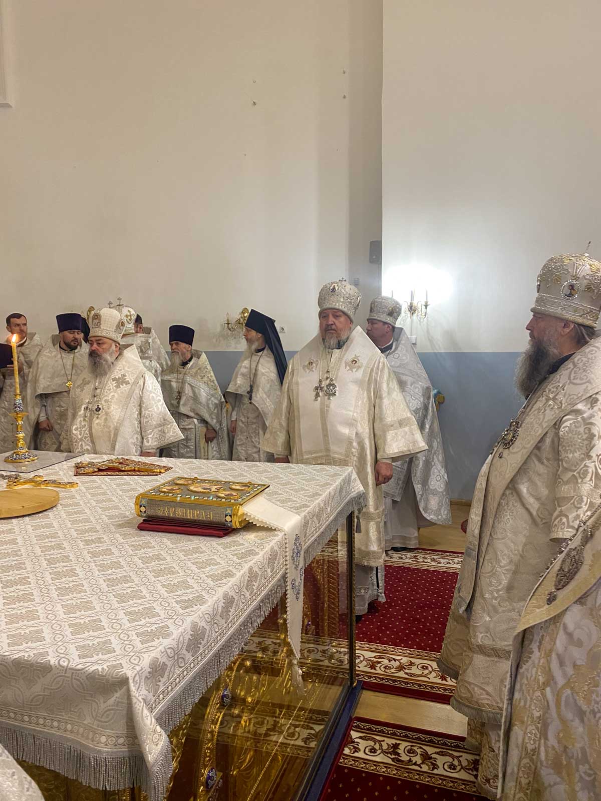 За Божественной литургией в Свято-Успенском соборе обители Его Высокопреосвященству сослужили: наместник Жировичского монастыря архиепископ Новогрудский и Слонимский Гурий, архиепископ Брестский и Кобринский Иоанн, архиепископ Гомельский и Жлобинский Стефан, архиепископ Гродненский и Волковысский Антоний, епископ Полоцкий и Глубокский Игнатий, епископ Борисовский и Марьиногорский Амвросий, епископ Пинский и Лунинецкий Георгий, викарий Витебской епархии епископ Друцкий Евсевий.