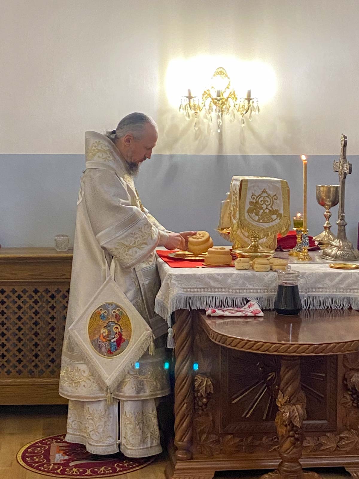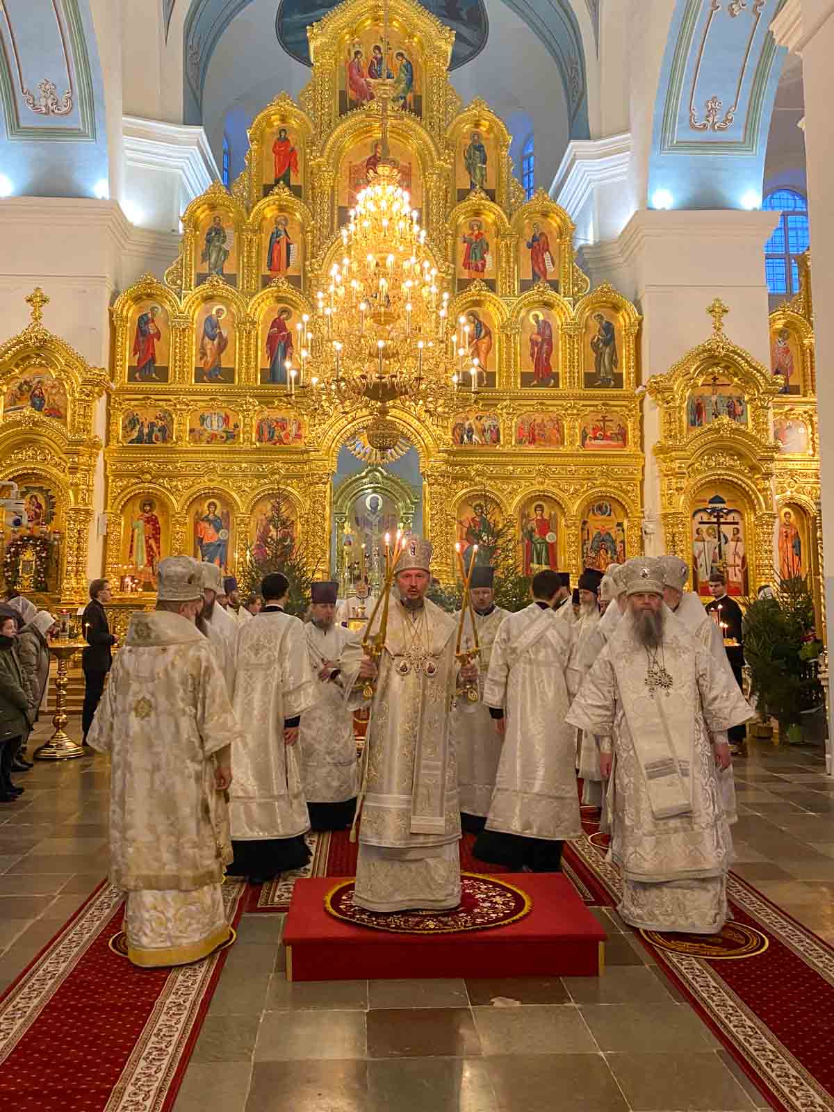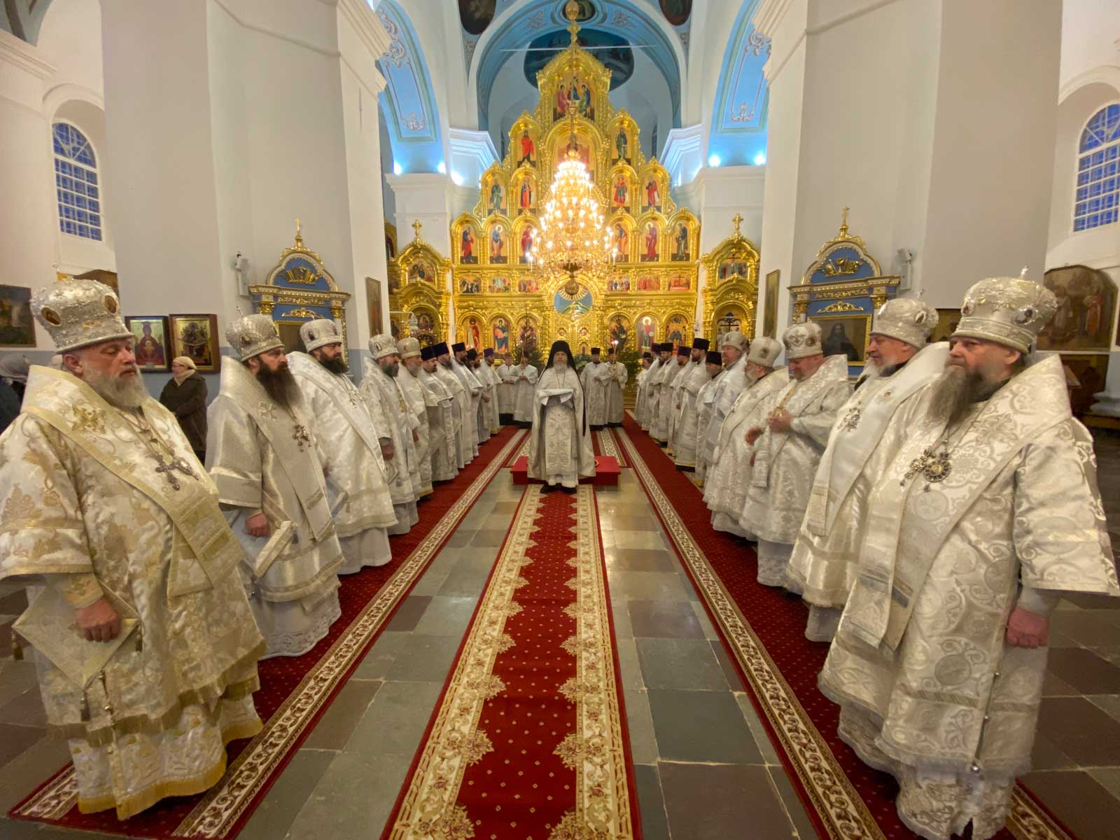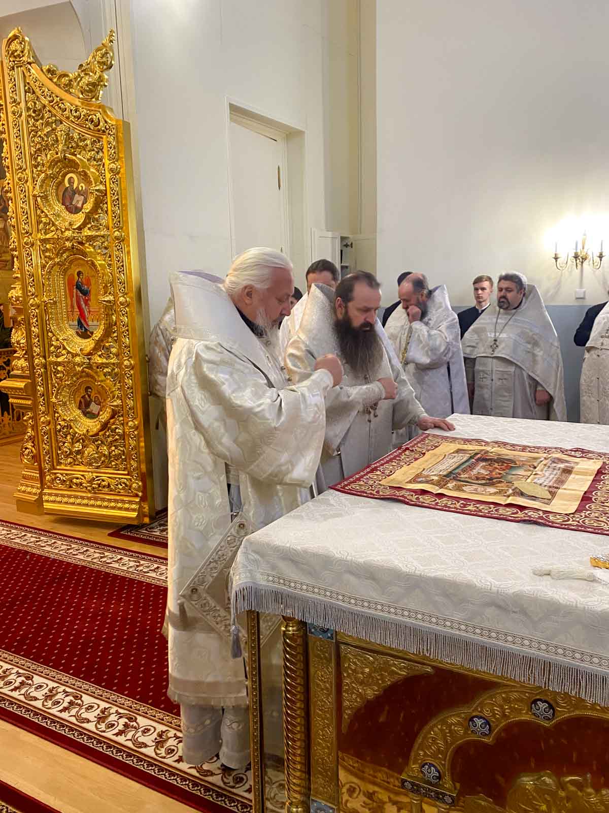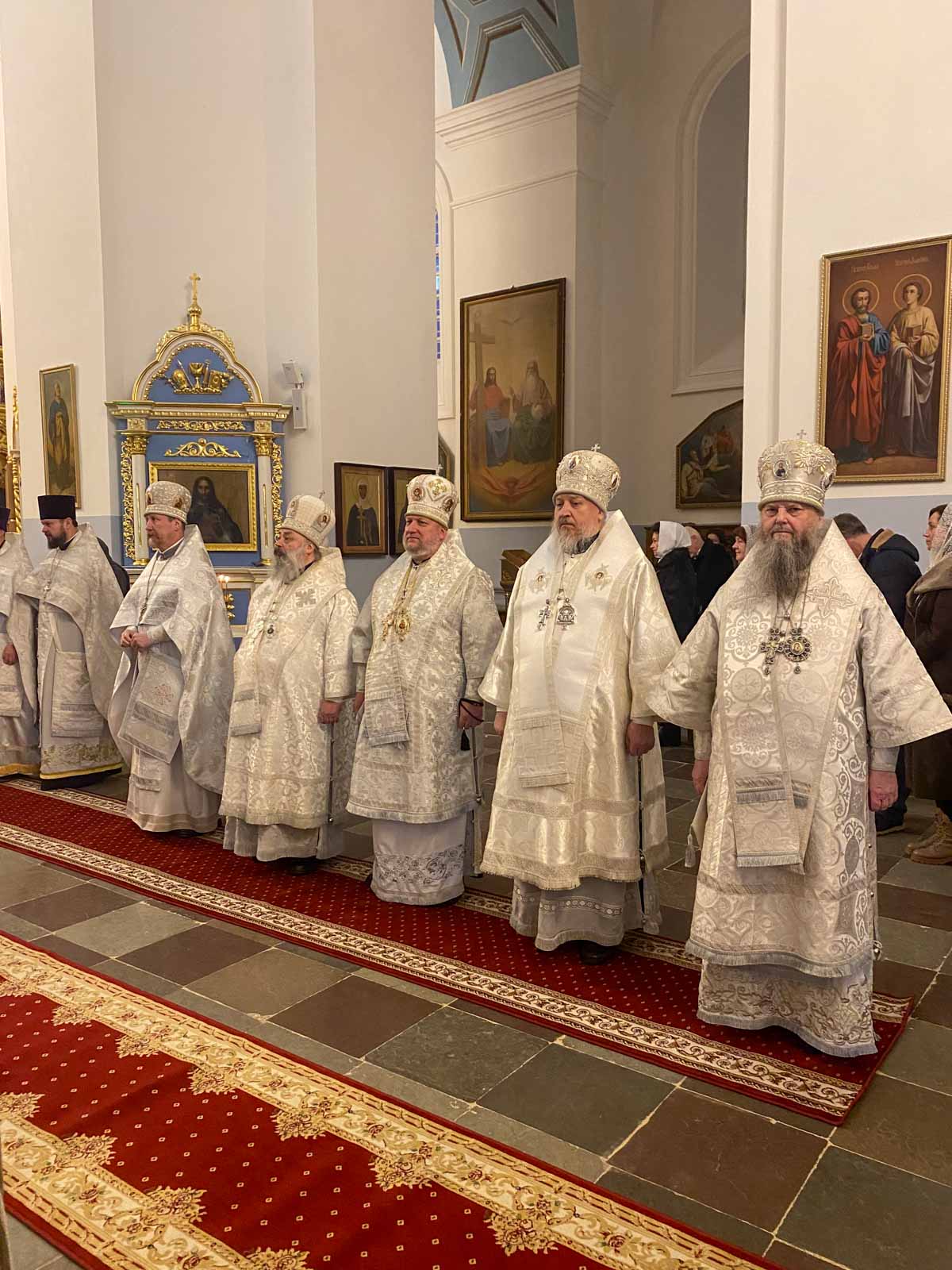 За Божественной литургией в Свято-Успенском соборе обители Его Высокопреосвященству сослужили: наместник Жировичского монастыря архиепископ Новогрудский и Слонимский Гурий, архиепископ Брестский и Кобринский Иоанн, архиепископ Гомельский и Жлобинский Стефан, архиепископ Гродненский и Волковысский Антоний, епископ Полоцкий и Глубокский Игнатий, епископ Борисовский и Марьиногорский Амвросий, епископ Пинский и Лунинецкий Георгий, викарий Витебской епархии епископ Друцкий Евсевий.
