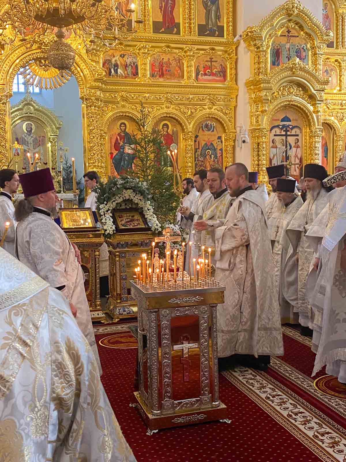 По запричастном стихе благочинный монастыря иеромонах Амфилохий (Навоев) зачитал Рождественское послание Митрополита Минского и Заславского Вениамина, Патриаршего Экзарха всея Беларуси.