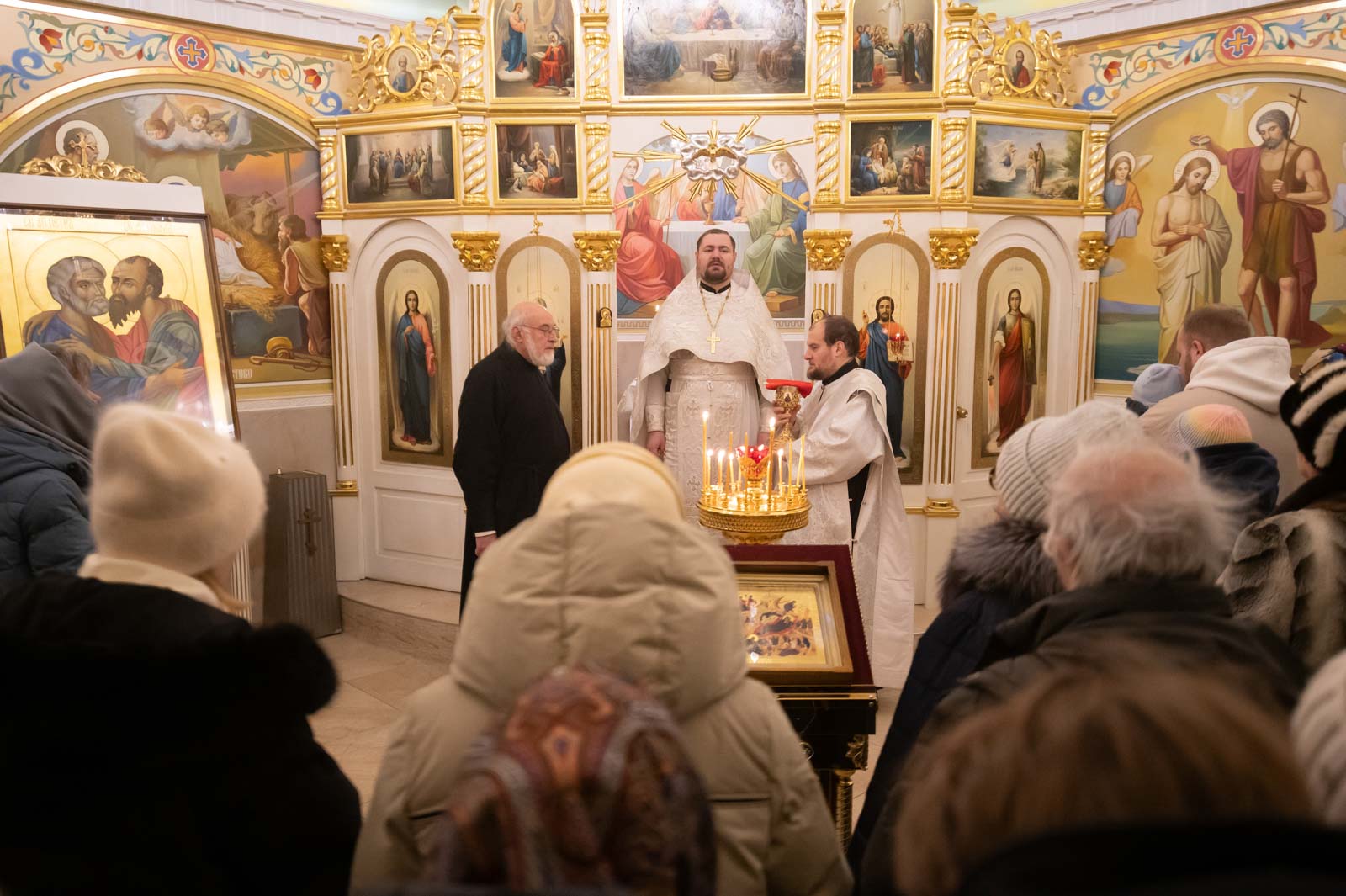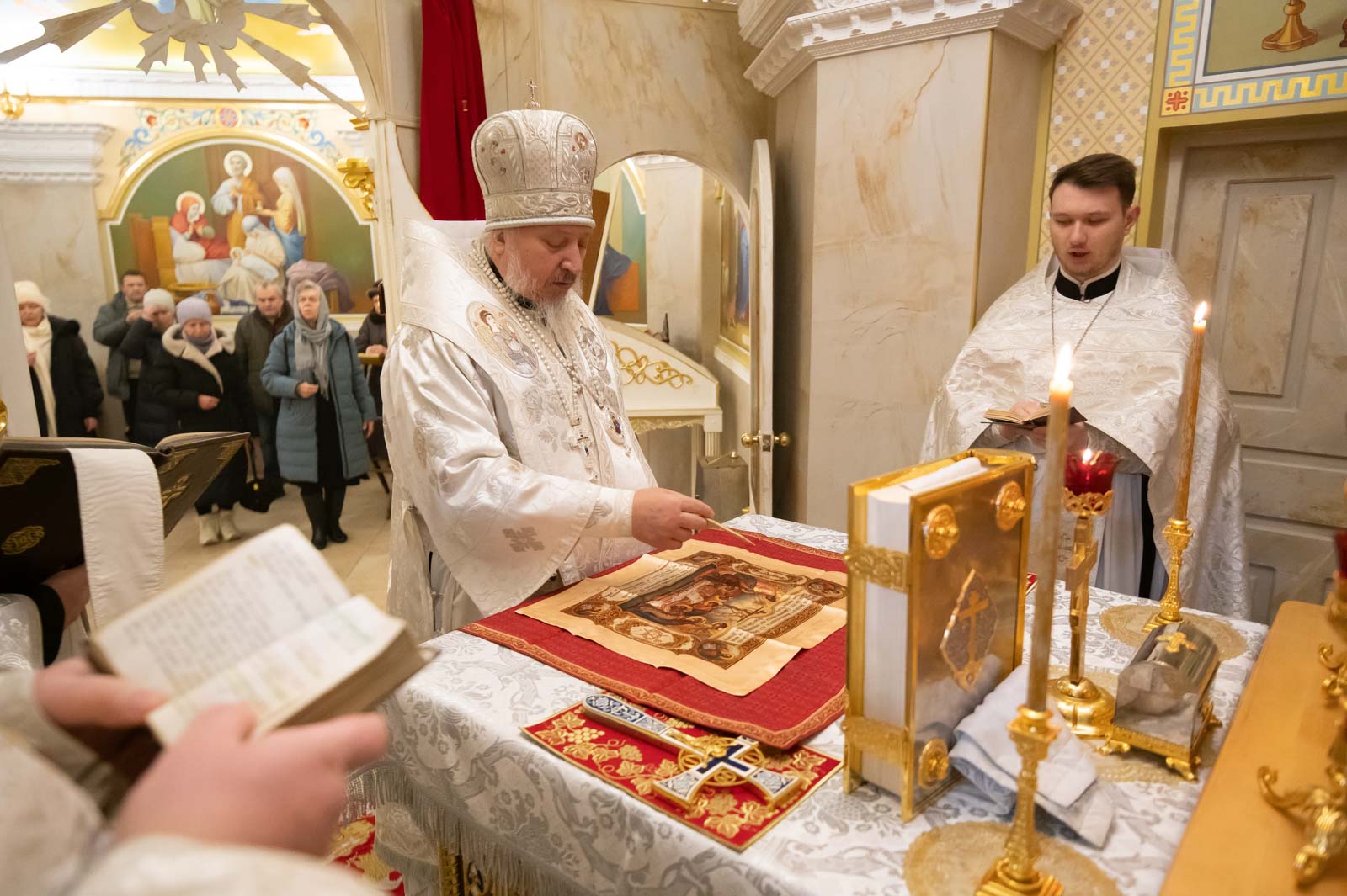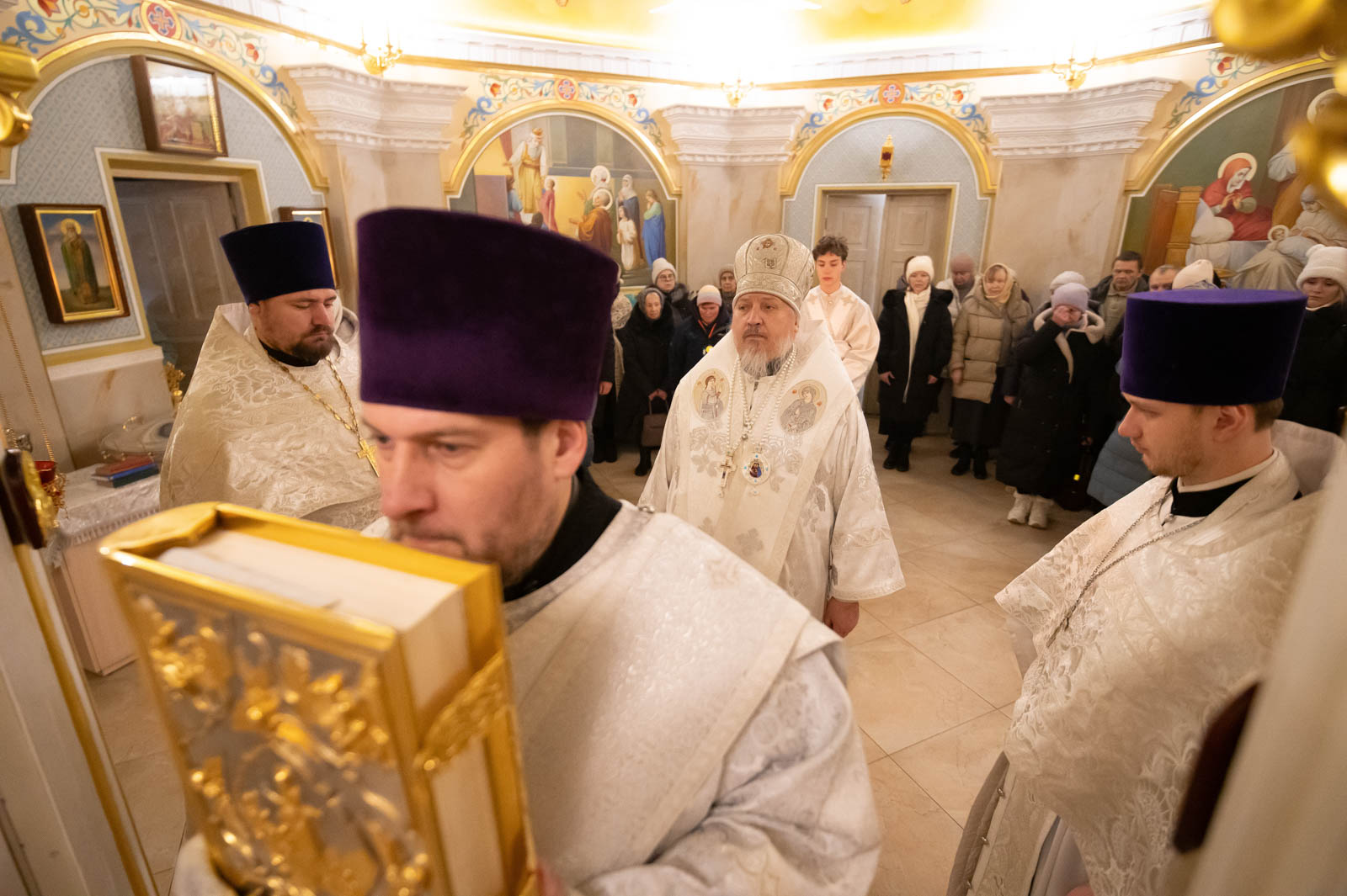 Божественную литургию 13 января 2026 года, в отдание праздника Рождества Христова, Высокопреосвященнейший Стефан, архиепископ Гомельский и Жлобинский, совершил в крестильном храме Свято-Петро-Павловского кафедрального собора г.Гомеля, освященном в честь Иоанна Крестителя.