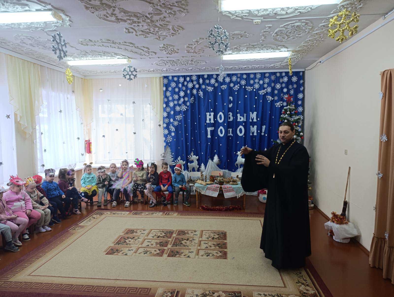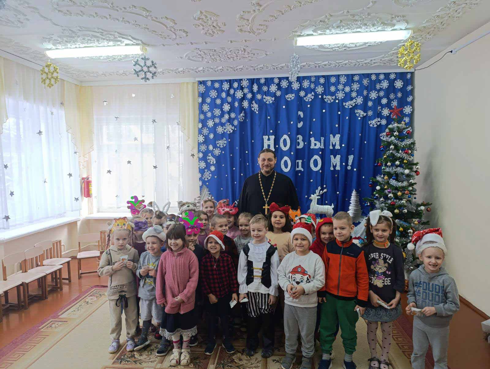 Кроме того, священнослужитель посетил ГУО «Ченковский детский сад», где провёл беседу с младшими воспитанниками, рассказав им о Рождении Спасителя, смысле праздника и христианской радости.