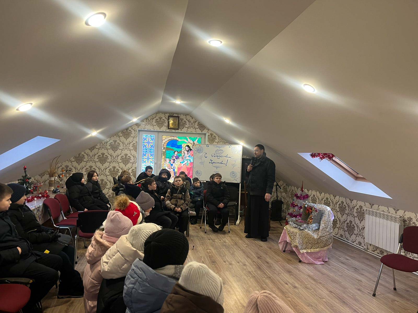 Настоятель прихода иерей Виталий Партий рассказал гостям о празднике Рождества Христова, дети узнали об истории события, которое стало началом нового летоисчисления и открытием пути спасения для всего человечества.
