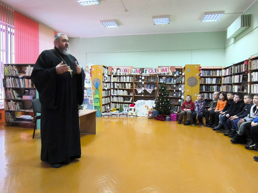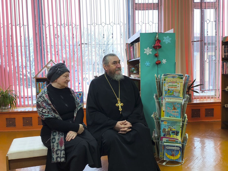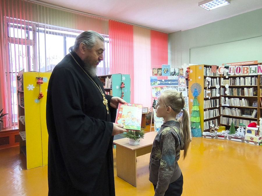- В библиотеке-филиале №12 протоиерей Владимир Силенко и педагог Игнатович И.В. провели беседу «Рождественские истории» для учащихся СШ №2. Библиотечному фонду были переданы в дар книги.