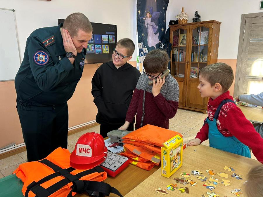 Не менее важным направлением сотрудничества остается воспитание подрастающего поколения. 18 января в стенах воскресной школы прихода состоялась встреча воспитанников со старшим инспектором центра пропаганды безопасности жизнедеятельности Павлом Сташуком. Сотрудник МЧС провел для детей обучающее занятие, в игровой форме разъяснив правила пожарной безопасности. Такое взаимодействие позволяет ребятам не только получить полезные навыки, но и сформировать глубокое уважение к профессии спасателя, осознав её как высокое призвание.
