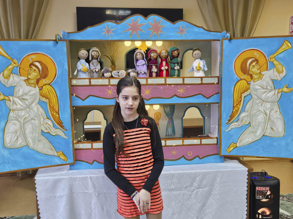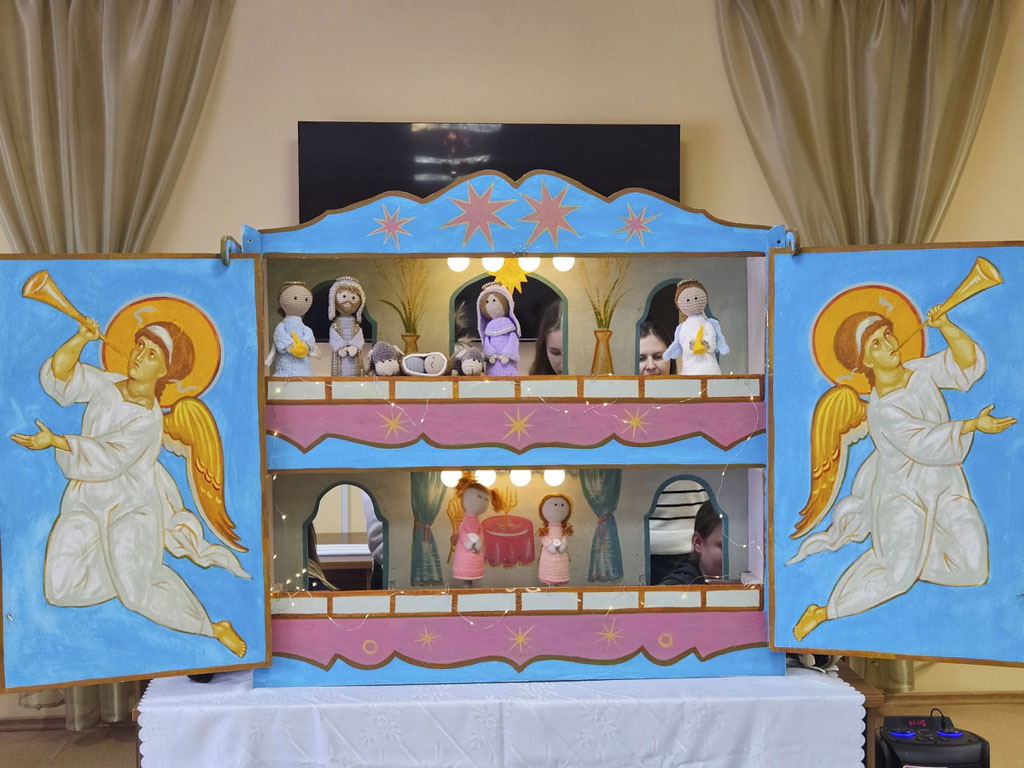 Ребята приехали не с пустыми руками — они привезли удивительный подарок: традиционный белорусский вертепный театр Батлейка. Батлейка — это уникальное явление народной культуры, кукольный вертепный театр, который издревле существовал на белорусских землях. Название происходит от города Вифлеема (Бетлехем), где родился Христос. Этот передвижной кукольный театр в виде двухъярусного ящика с куклами на палочках рассказывает библейские истории. Батлейка — это не просто театр, это живая традиция, которая веками передавалась из поколения в поколение.