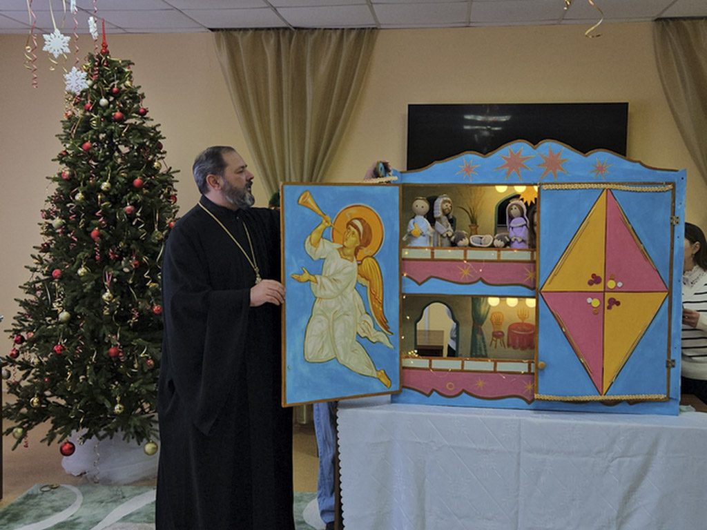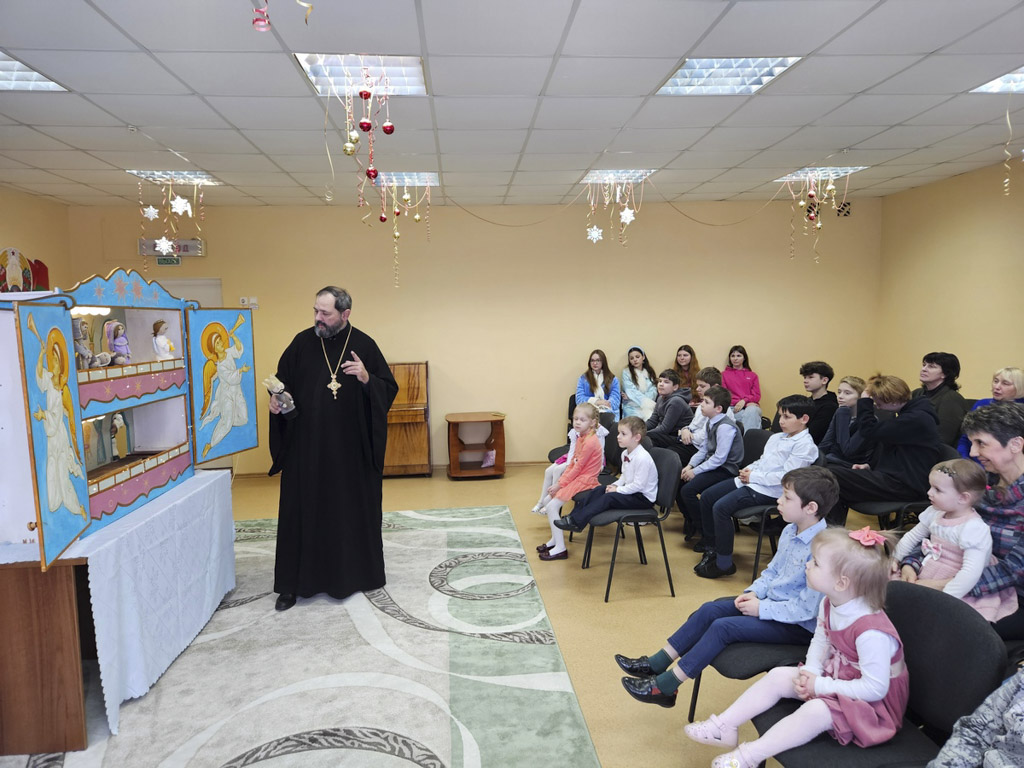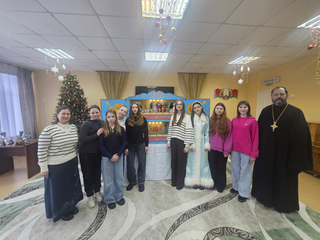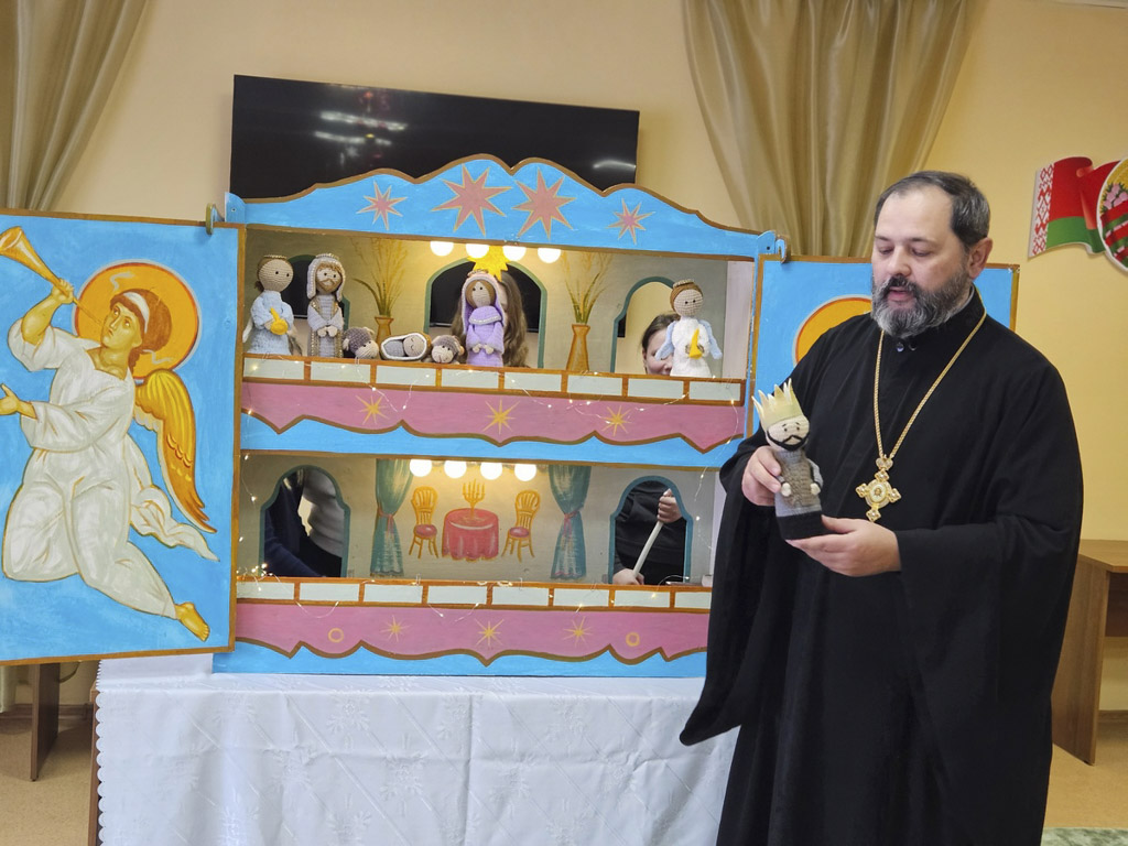 Протоиерей Артемий Кривицкий, настоятель прихода храма Рождества Пресвятой Богородицы аг. Урицкое, тепло приветствовал детей социально-педагогического центра. Он рассказал о жизни воспитанников Воскресной школы, об их увлечении театром Батлейка, о том, как ребята горели желанием поделиться этим чудом с теми, кому особенно нужны тепло и внимание.