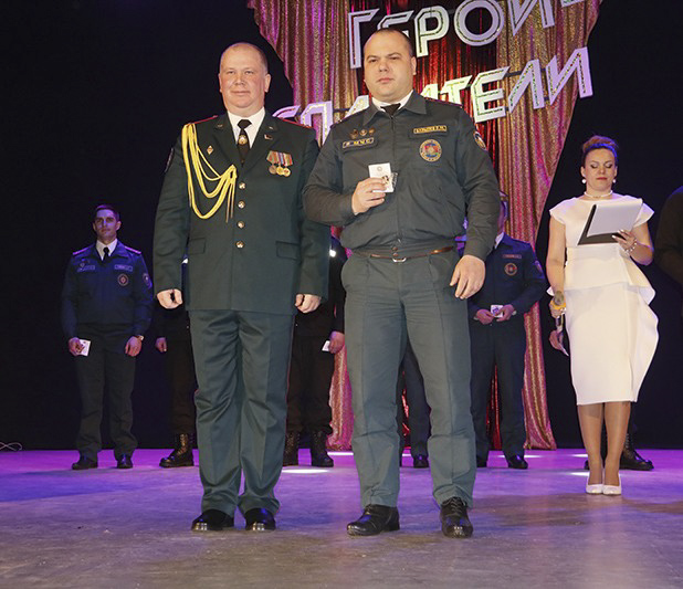 Официальная часть праздника продолжилась церемонией награждения. За высокое профессиональное мастерство и безупречную службу лучшие сотрудники Рогачевского районного отдела по чрезвычайным ситуациям были отмечены почетными грамотами. Награды вручили председатель Рогачевского районного исполнительного комитета Александр Атрошенко, председатель районного Совета депутатов Владимир Феоктистов и начальник РОЧС подполковник внутренней службы Евгений Шрамов.
