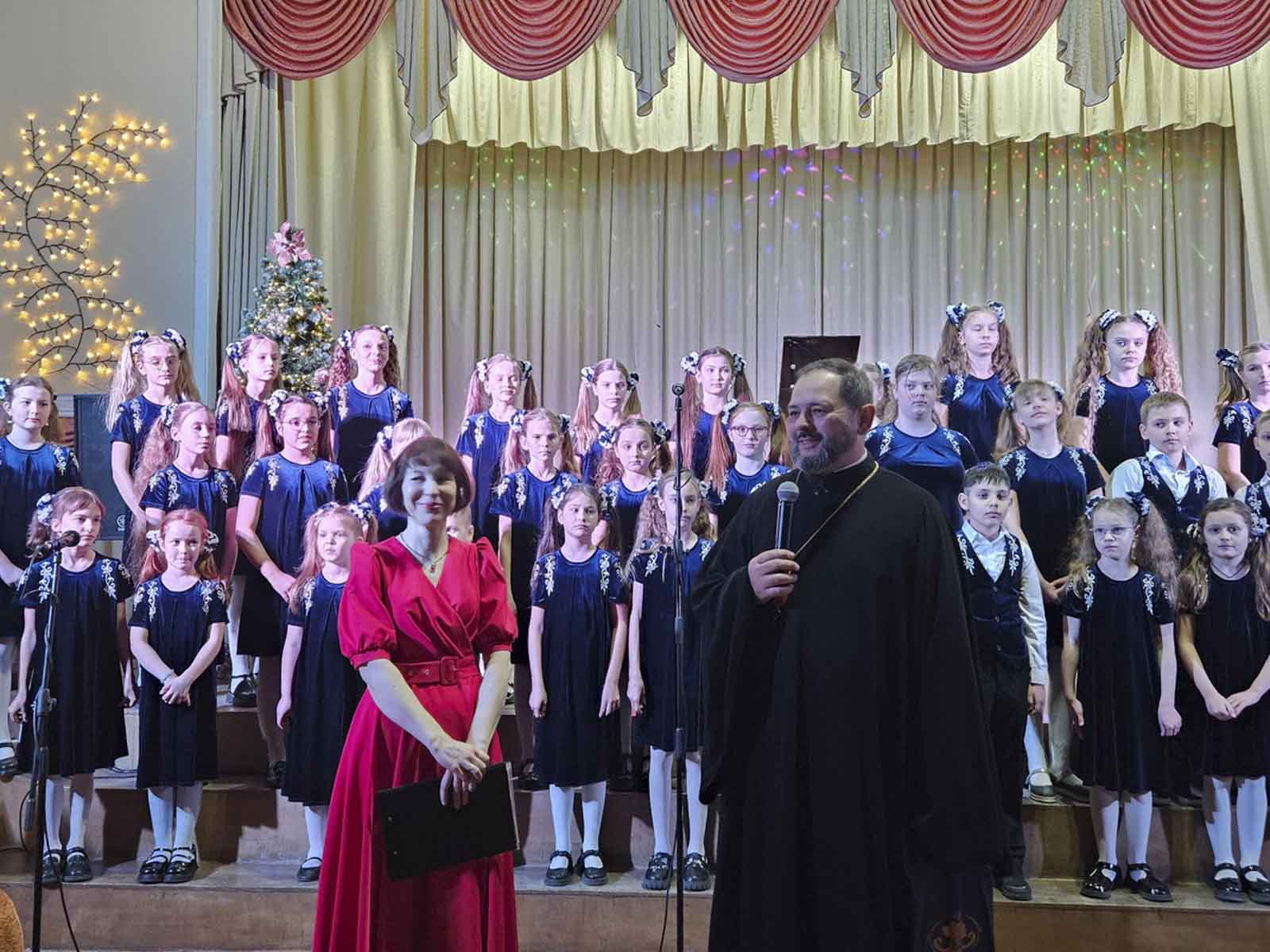 Протоиерей Артемий Кривицкий, председатель отдела религиозного образования и катехизации Гомельской епархии, обратился к собравшимся с приветственным словом и передал поздравления Архиепископа Гомельского и Жлобинского Стефана со светлыми праздниками Рождества Христова и Крещения Господня. От имени Гомельской епархии всем участникам концерта были вручены памятные подарки. «Этот праздник особенно дорог тем, что наполнен душевным теплом и чистотой детских сердец», – отметил священнослужитель. Директор детской музыкальной школы искусств имени П.И. Чайковского Виолетта Петровна Сатырева выразила благодарность Гомельской епархии за поддержку и сотрудничество в организации столь значимого мероприятия.