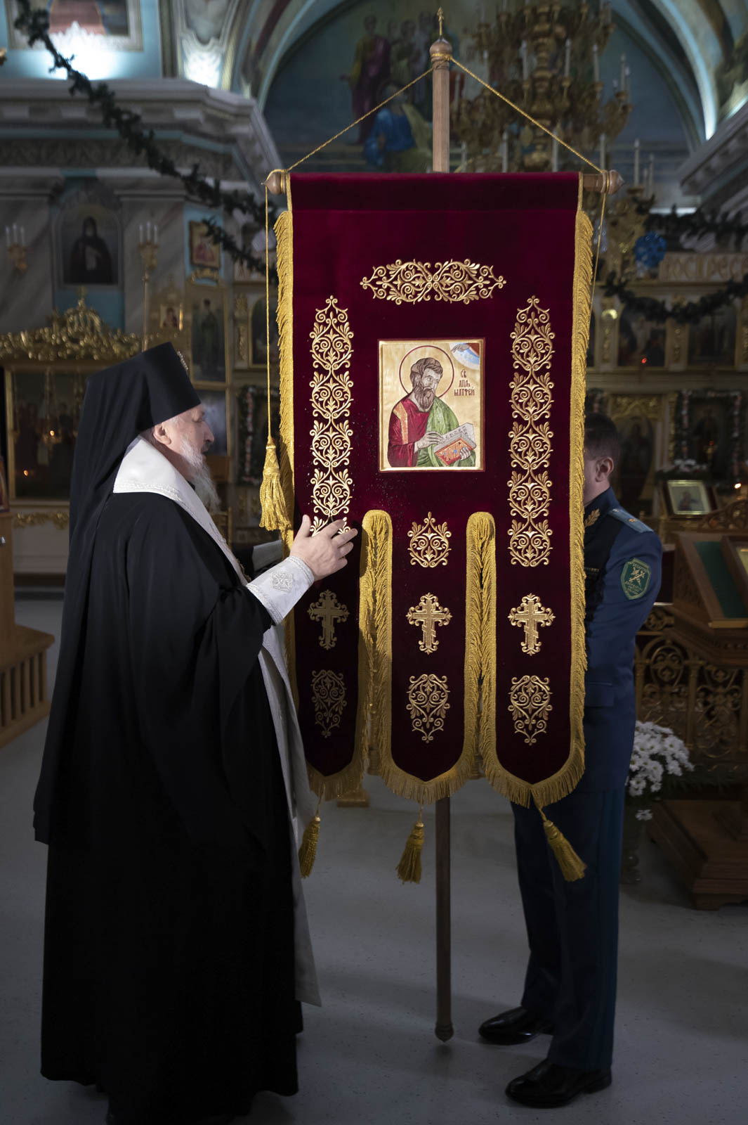 Чин освящения и передачу святыни совершил Высокопреосвященнейший Стефан, архиепископ Гомельский и Жлобинский. На хоругви запечатлен лик святого апостола и евангелиста Матфея, который традиционно почитается как небесный покровитель таможенной службы. Это событие стало символом тесного взаимодействия Церкви и государства в деле укрепления нравственных основ служения Отечеству.