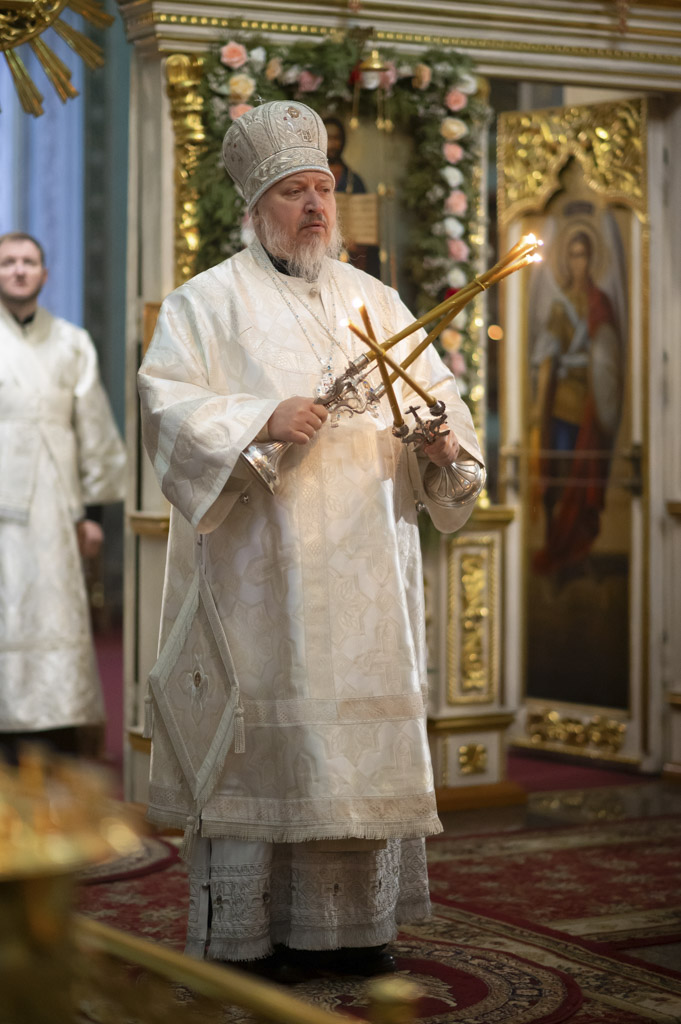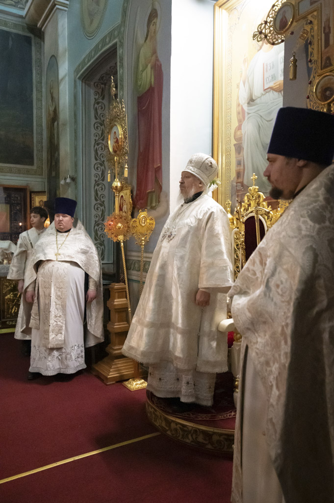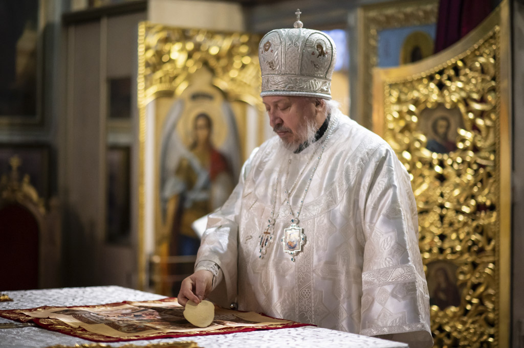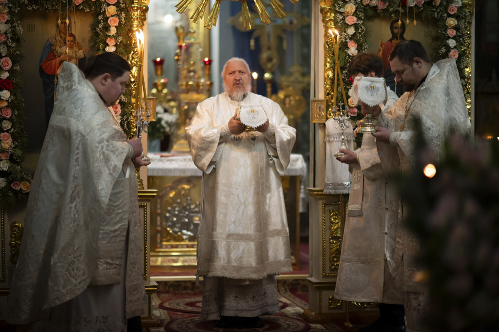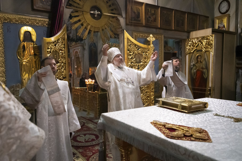 За богослужением были вознесены сугубые молитвенные прошения о восстановлении мира. Архипастырь вместе с духовенством и прихожанами молился о прекращении вражды и даровании людям духа братской любви и согласия.