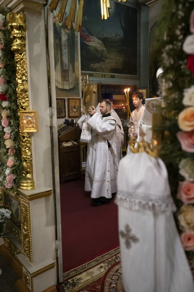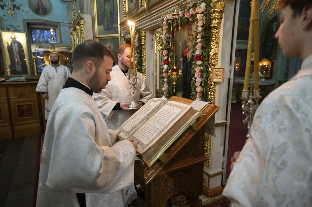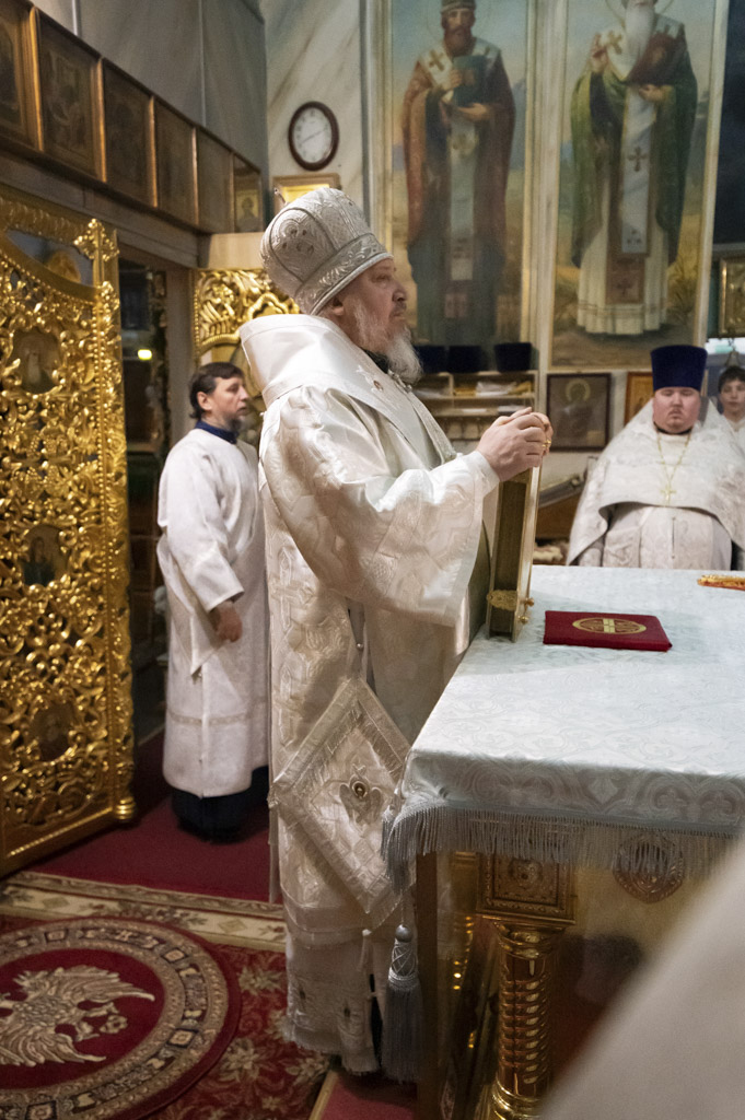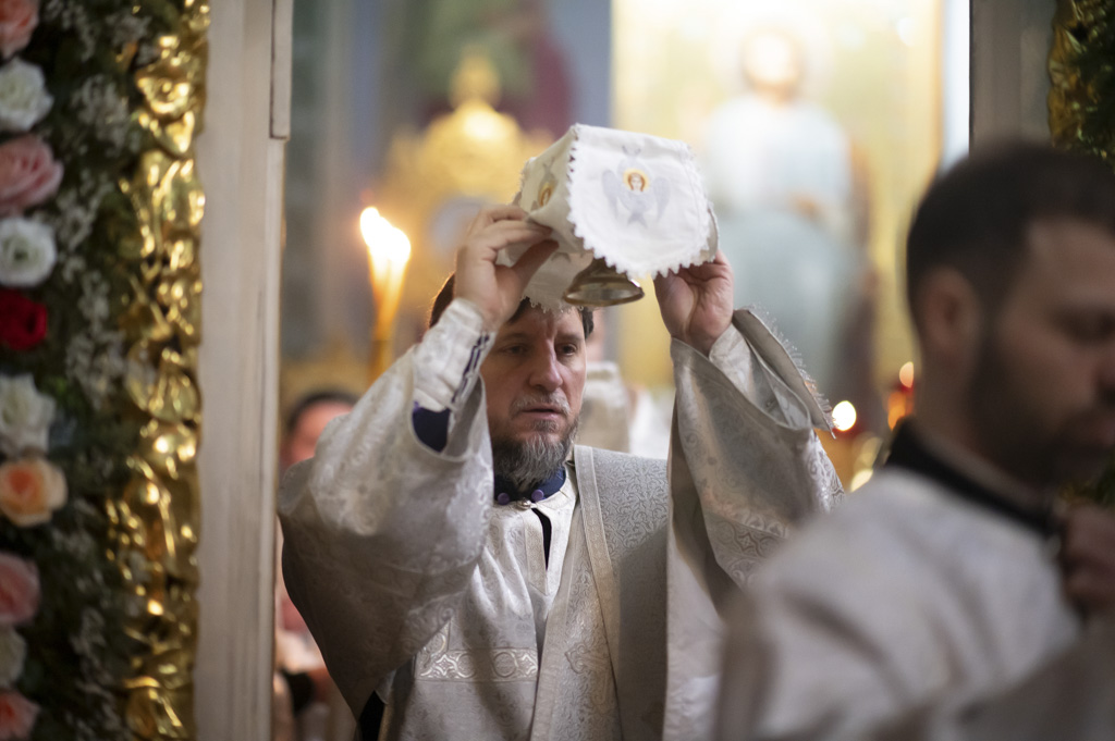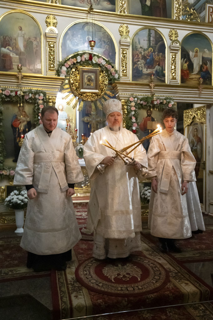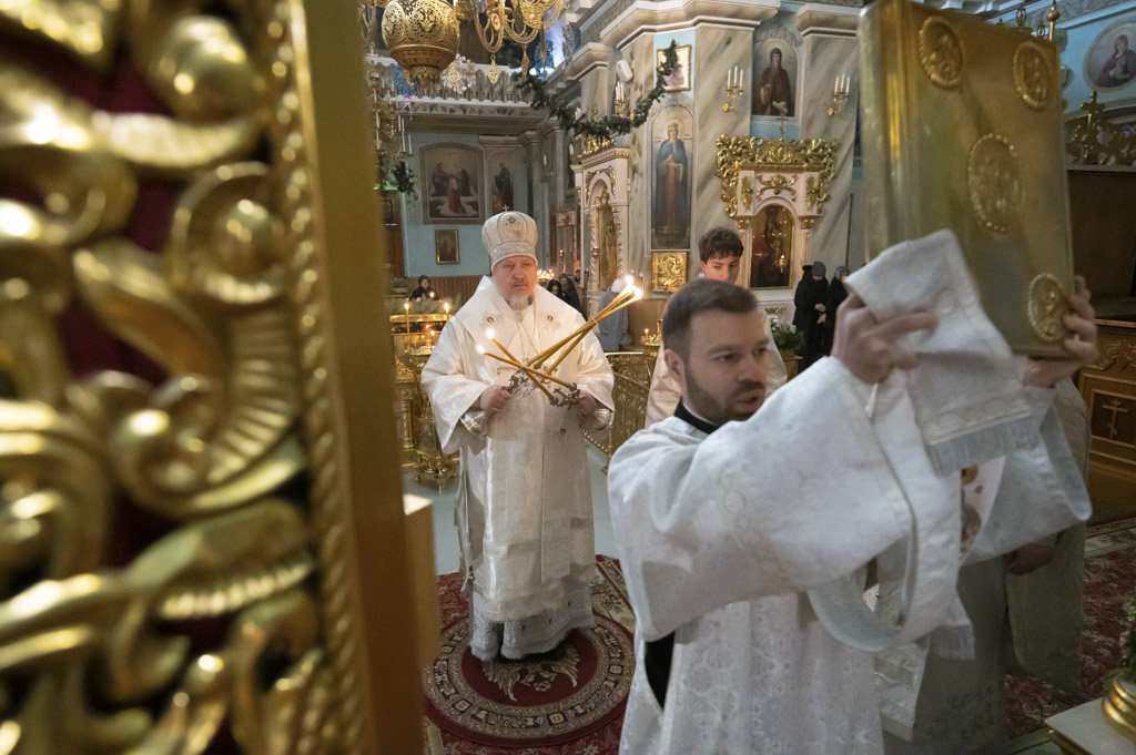 За богослужением были вознесены сугубые молитвенные прошения о восстановлении мира. Архипастырь вместе с духовенством и прихожанами молился о прекращении вражды и даровании людям духа братской любви и согласия.