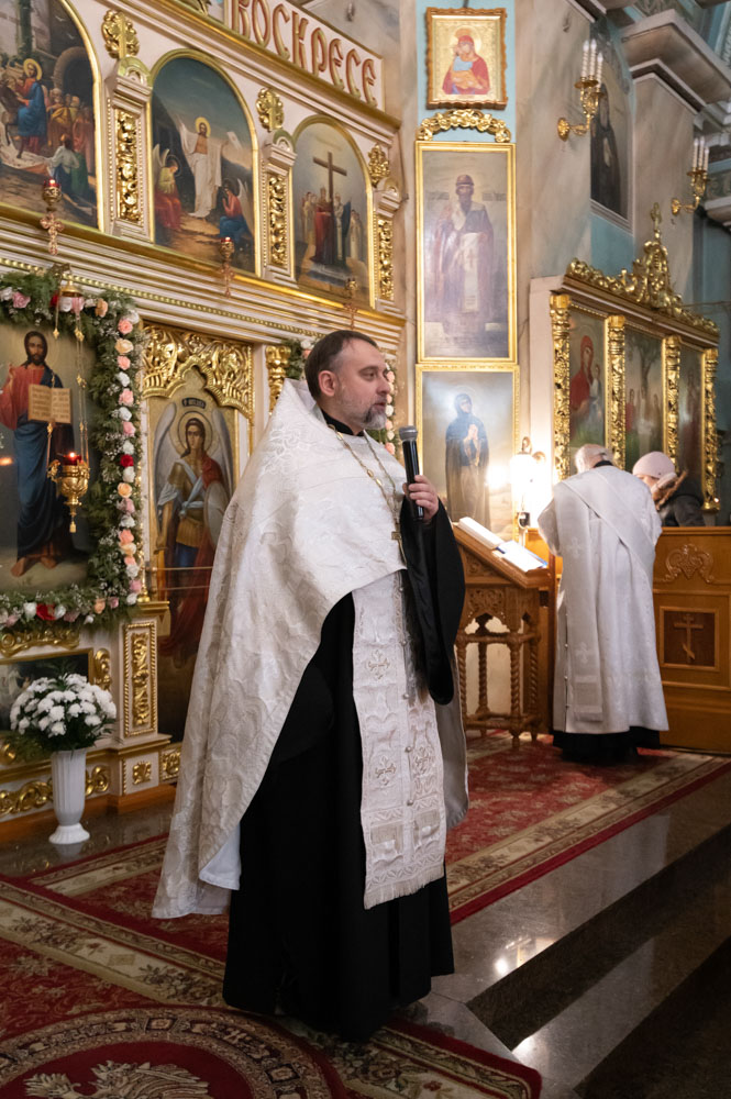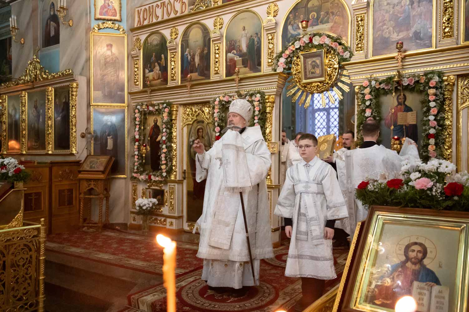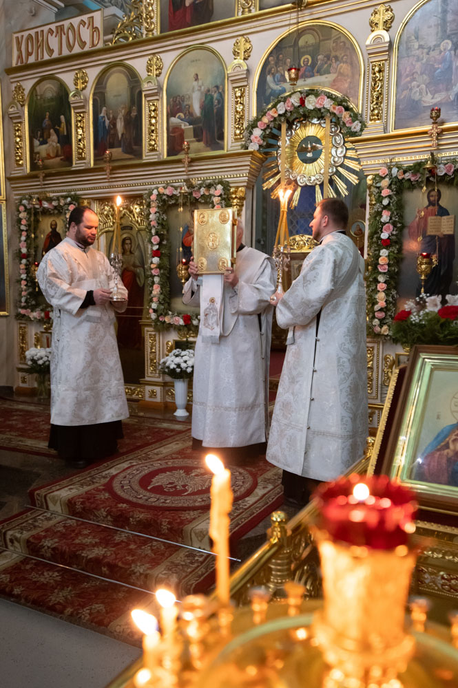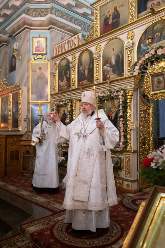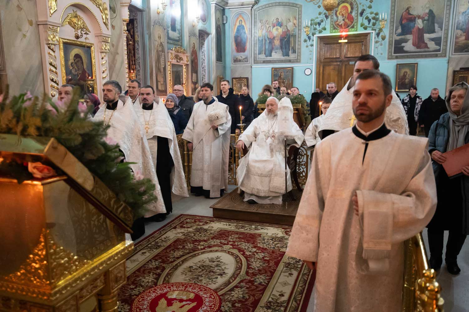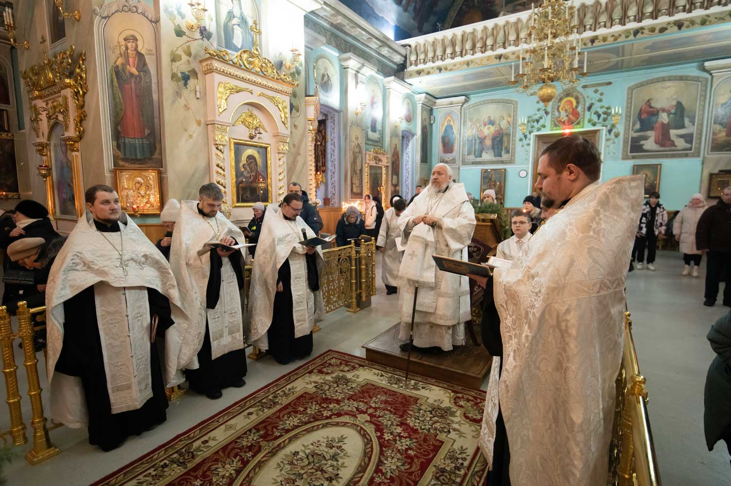 Его Высокопреосвященству сослужили клирики кафедрального собора.