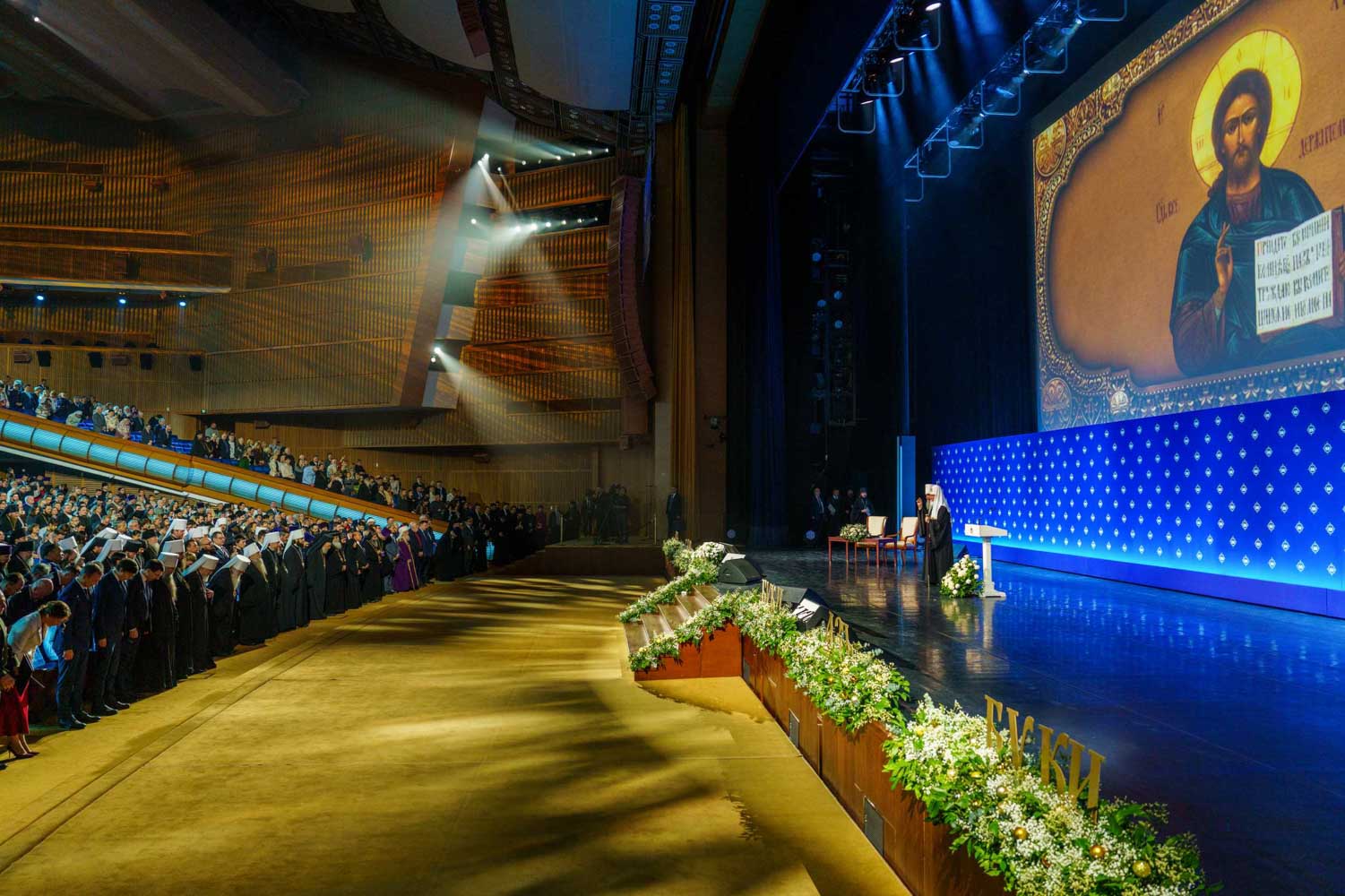 В зале Государственного Кремлевского дворца собралось свыше 5 тысяч человек: Преосвященные архипастыри — члены Священного Синода и Высшего Церковного Совета, главы экзархатов, митрополий и епархиальные архиереи Русской Православной Церкви, представители Поместных Православных Церквей, члены Межрелигиозного совета России, полномочные представители Президента Российской Федерации в федеральных округах, представители обеих палат российского парламента, руководители и представители федеральных и региональных органов власти, ректоры и представители свыше 250 российских и зарубежных вузов, директора и педагоги общеобразовательных организаций, священнослужители, приходские специалисты, деятели науки и культуры.