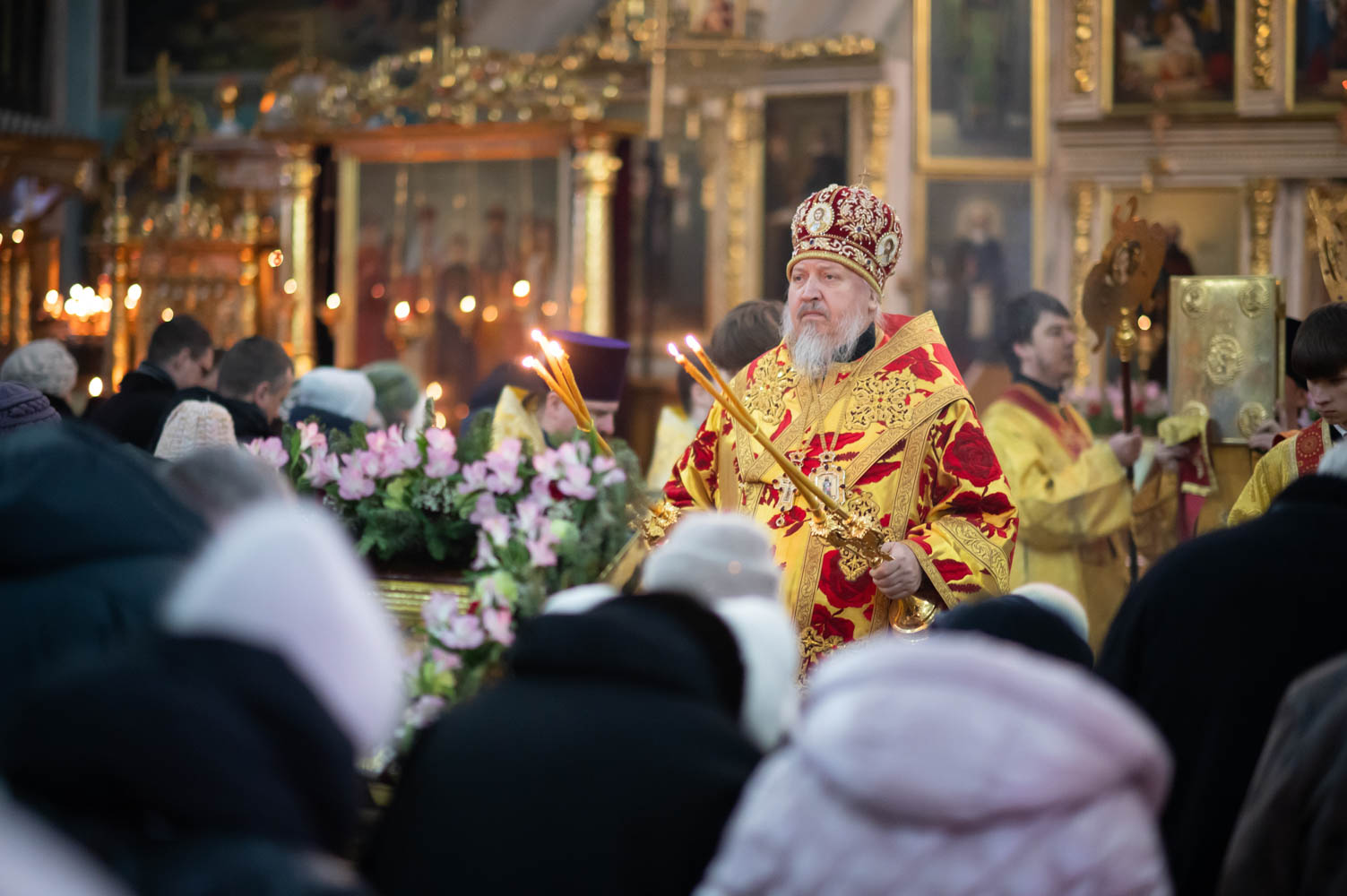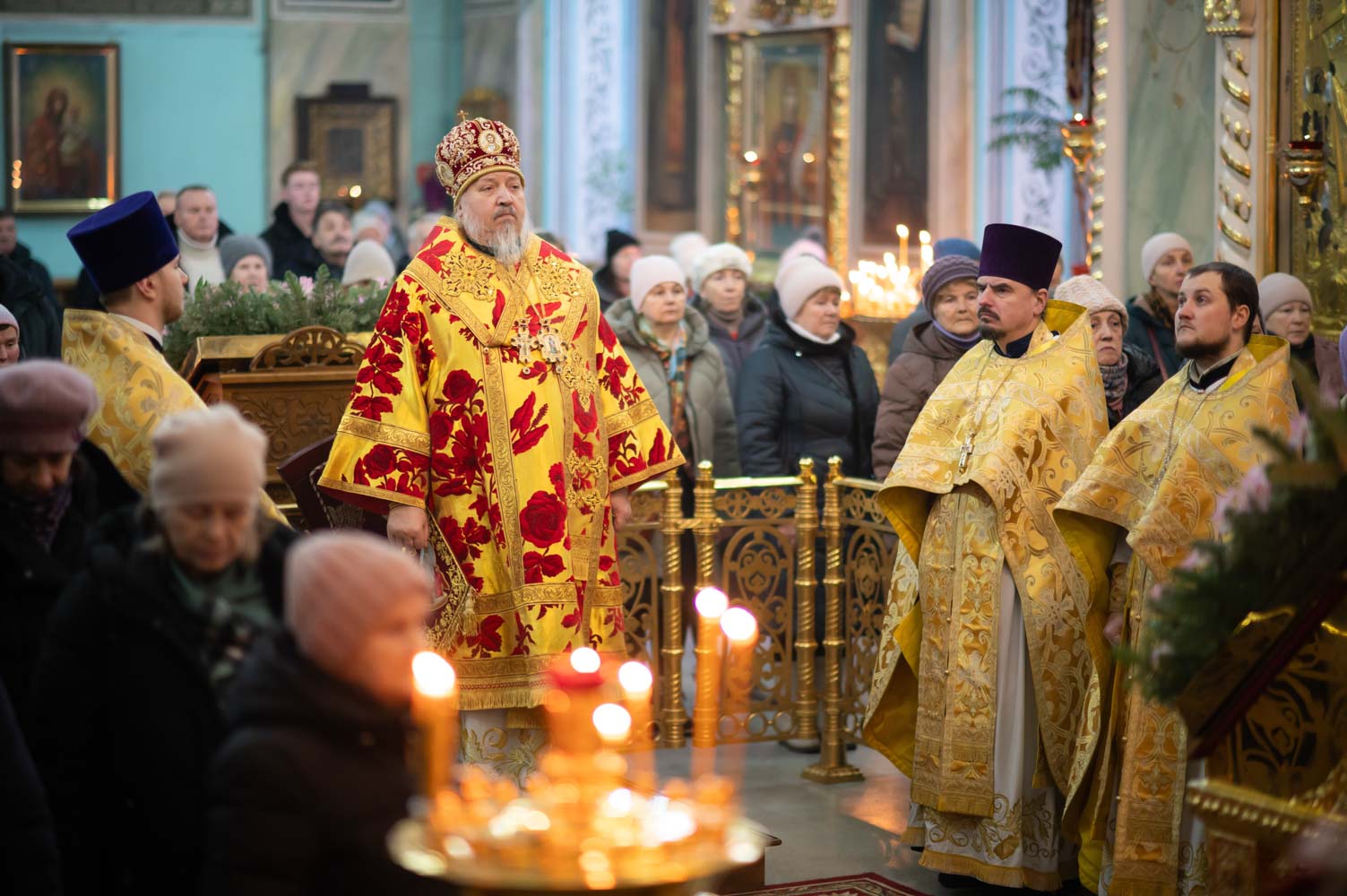 Его Высокопреосвященству сослужили: секретарь Гомельской епархии протоиерей Георгий Алампиев и духовенство кафедрального собора.