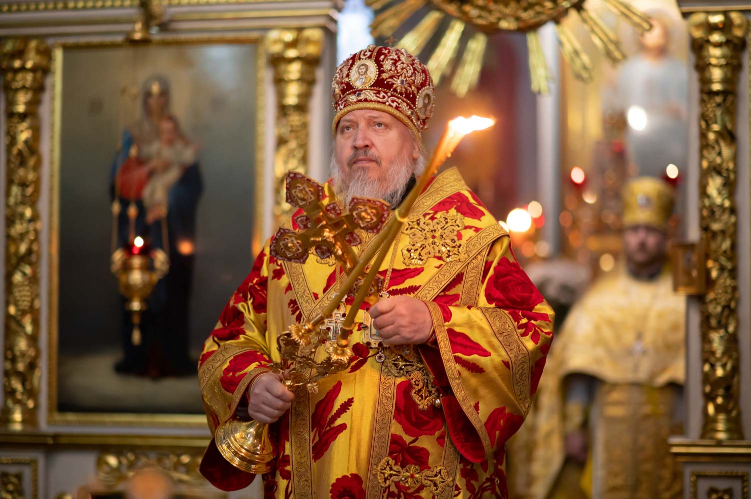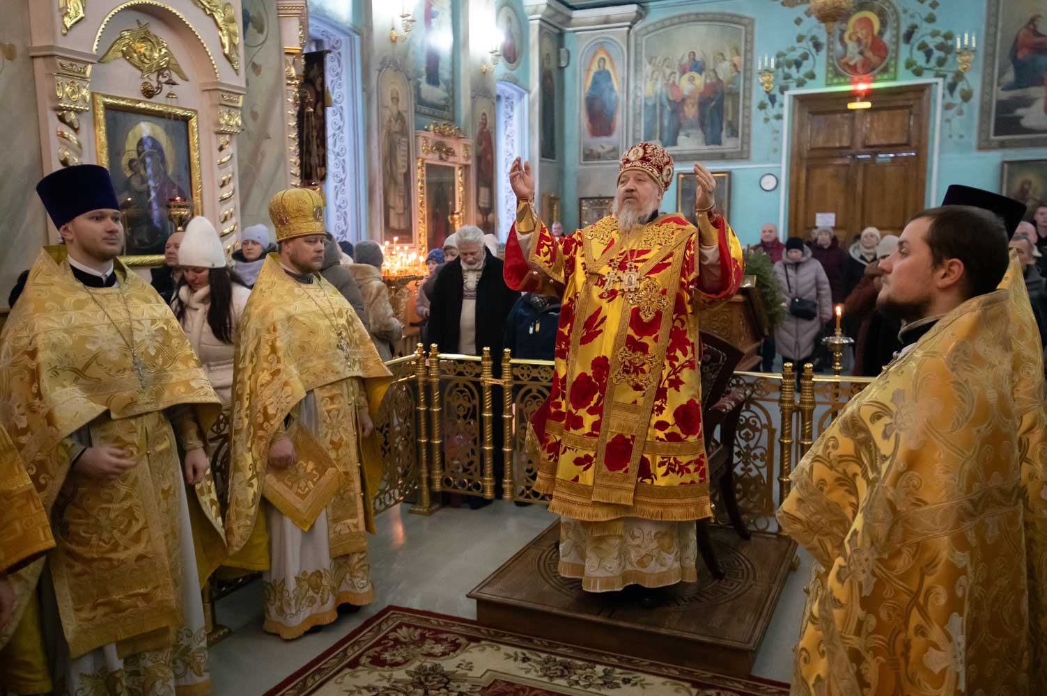 За богослужением были вознесены сугубые молитвенные прошения о восстановлении мира.