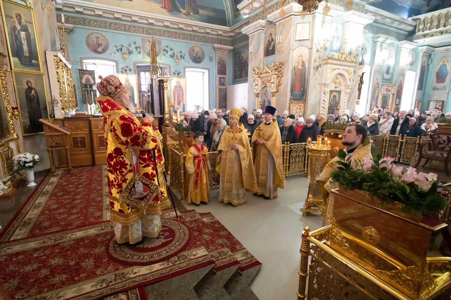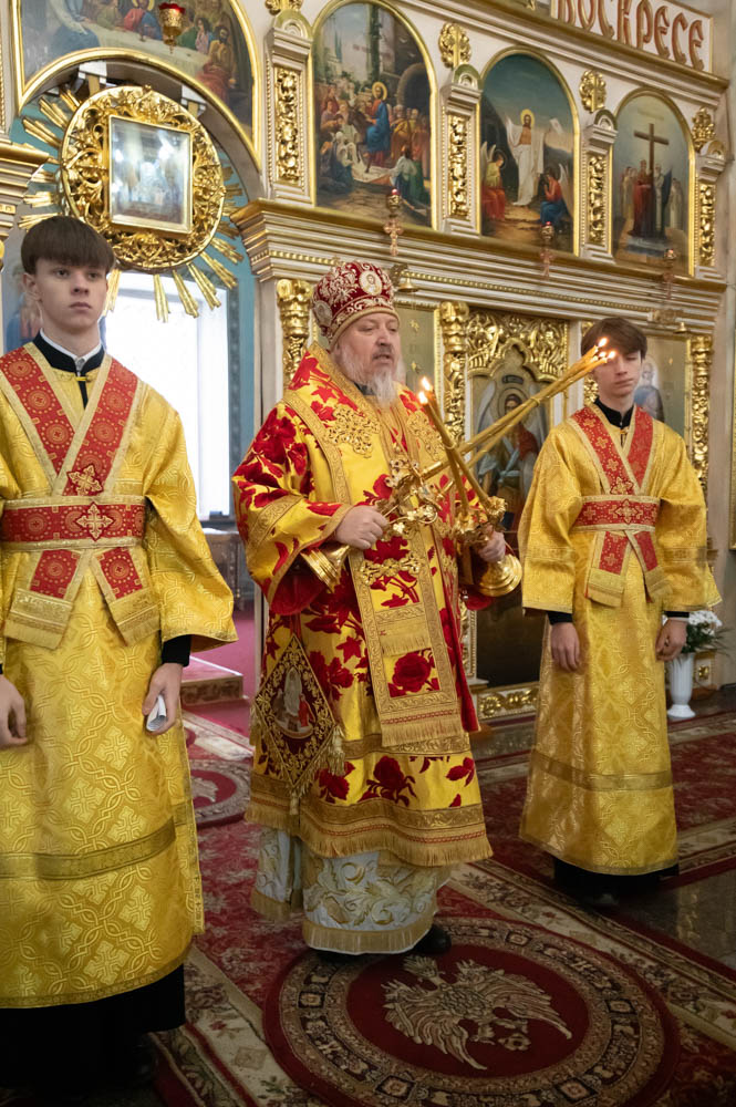Божественную литургию в Неделю о блудном сыне, 8 февраля 2026 года, Высокопреосвященнейший Стефан, архиепископ Гомельский и Жлобинский, совершил в Петро-Павловском кафедральном соборе г.Гомеля.
