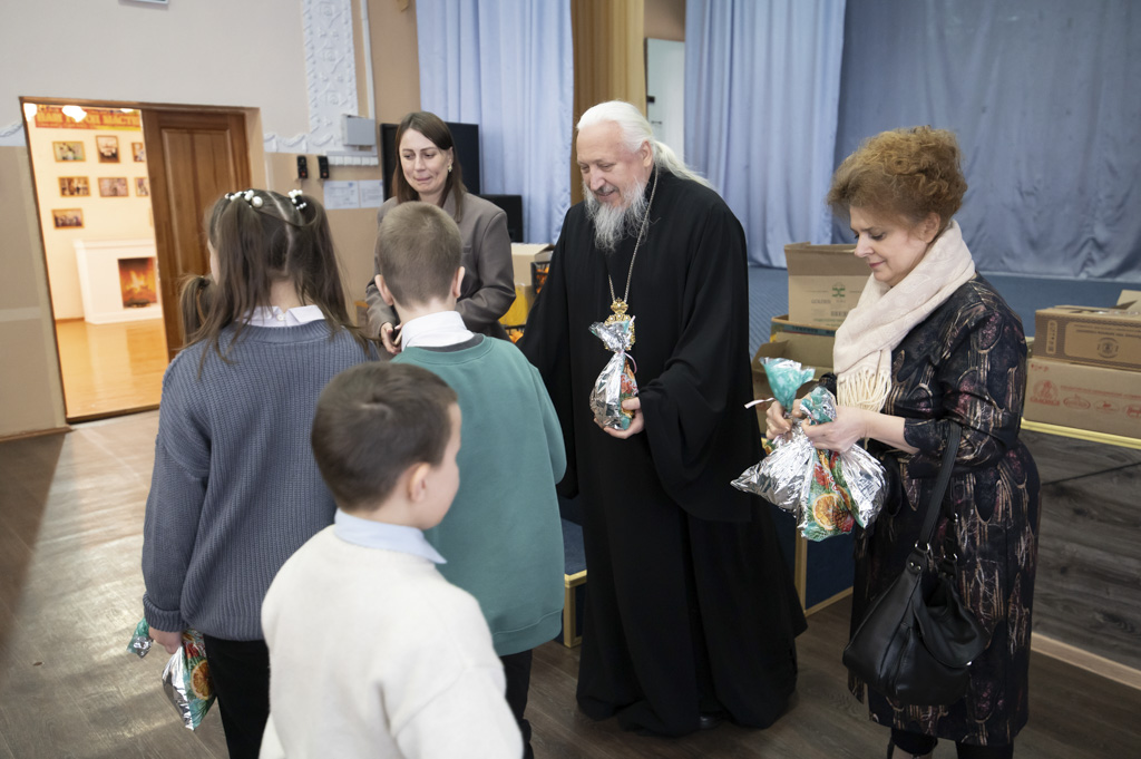Владыка передал всем ребятам полезные угощения — свежие фрукты и сладости. Особое внимание было уделено детям-сиротам: для них была подготовлена адресная помощь в виде одежды и предметов первой необходимости на сумму свыше 3 тысяч рублей.