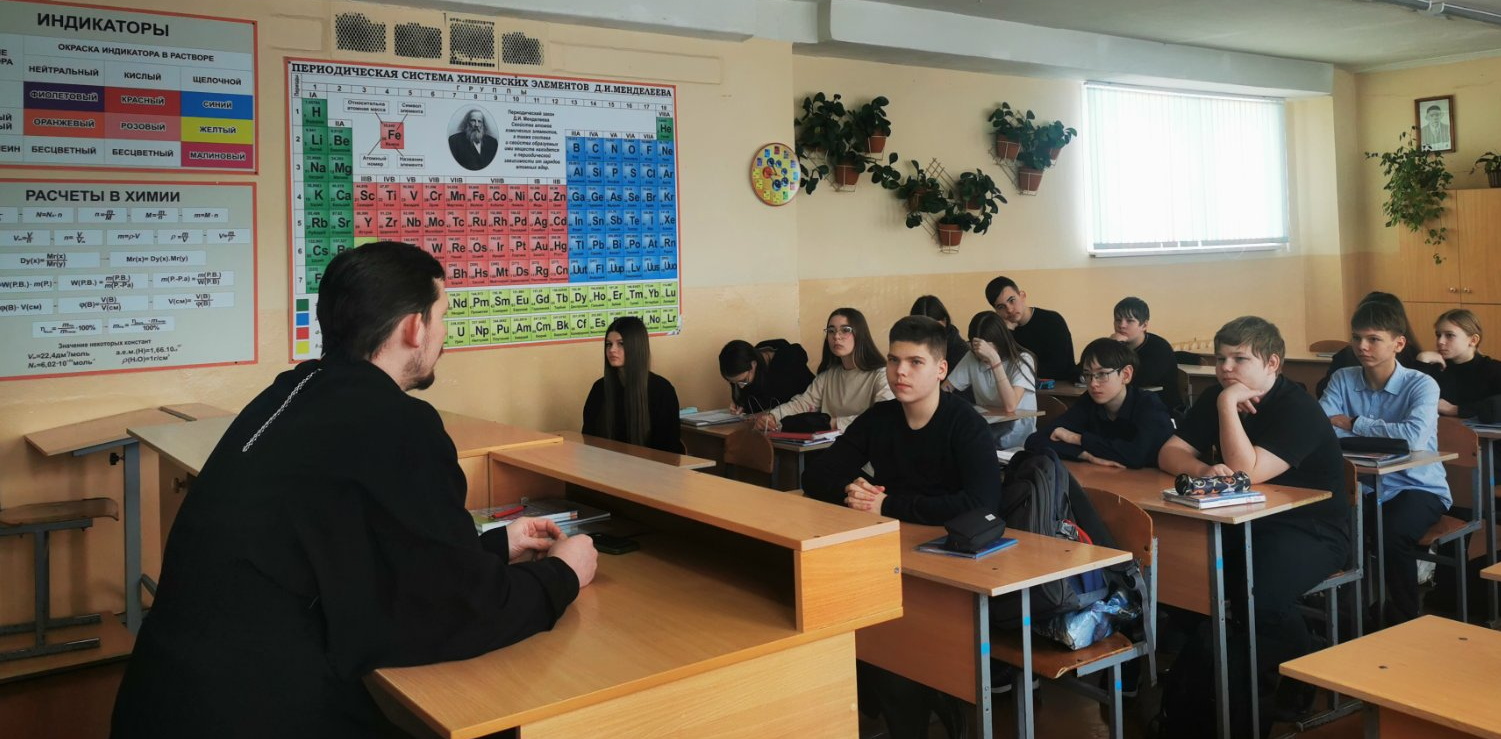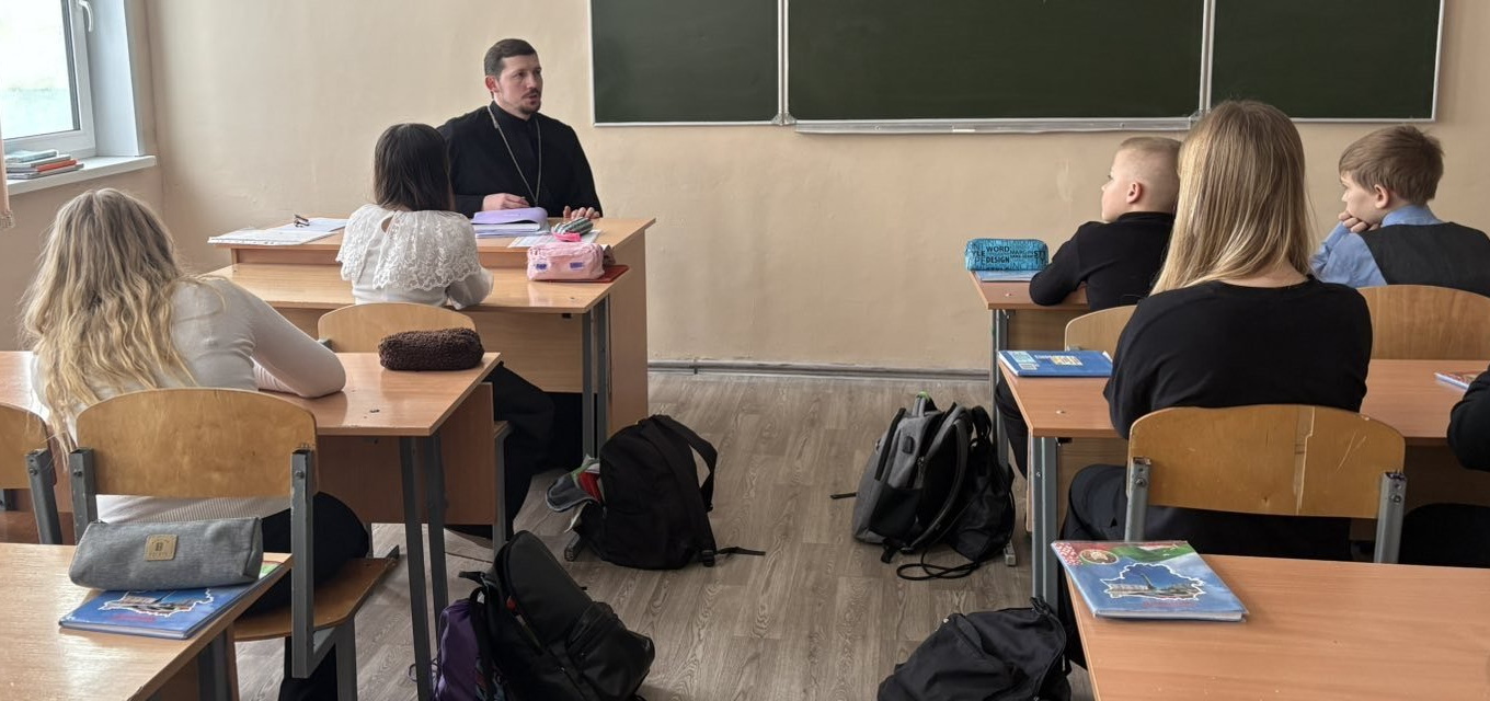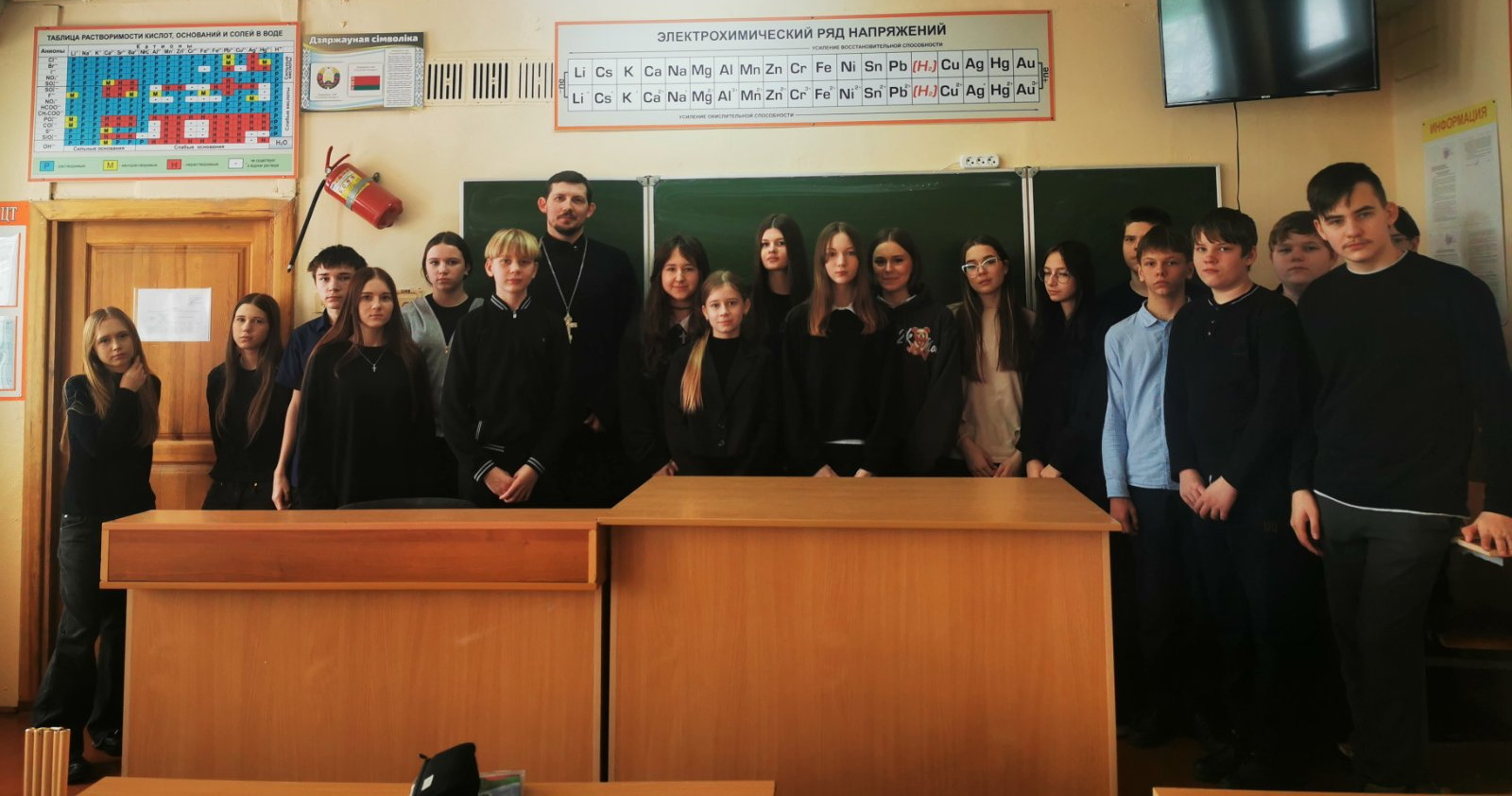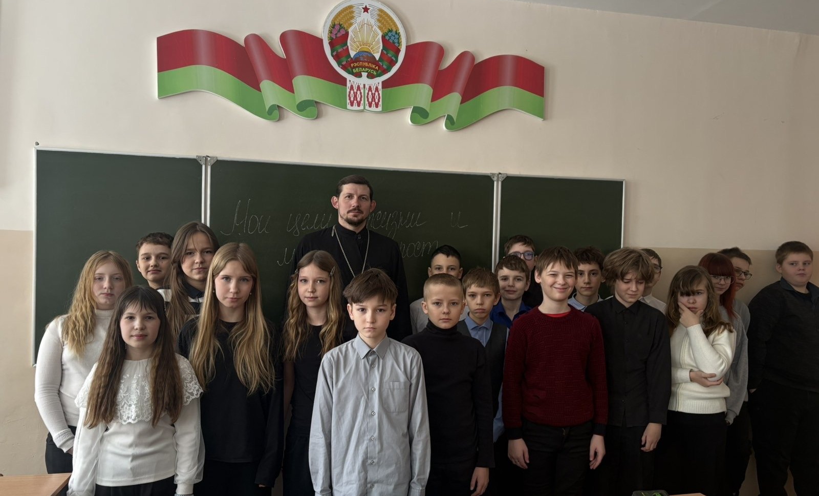 11 февраля 2026 года, в рамках просветительских встреч, посвященных Дню православной книги, клирик прихода храма святителя Василия Великого в г. Жлобине иерей Андрей Исаев посетил средние школы №11 и №12.