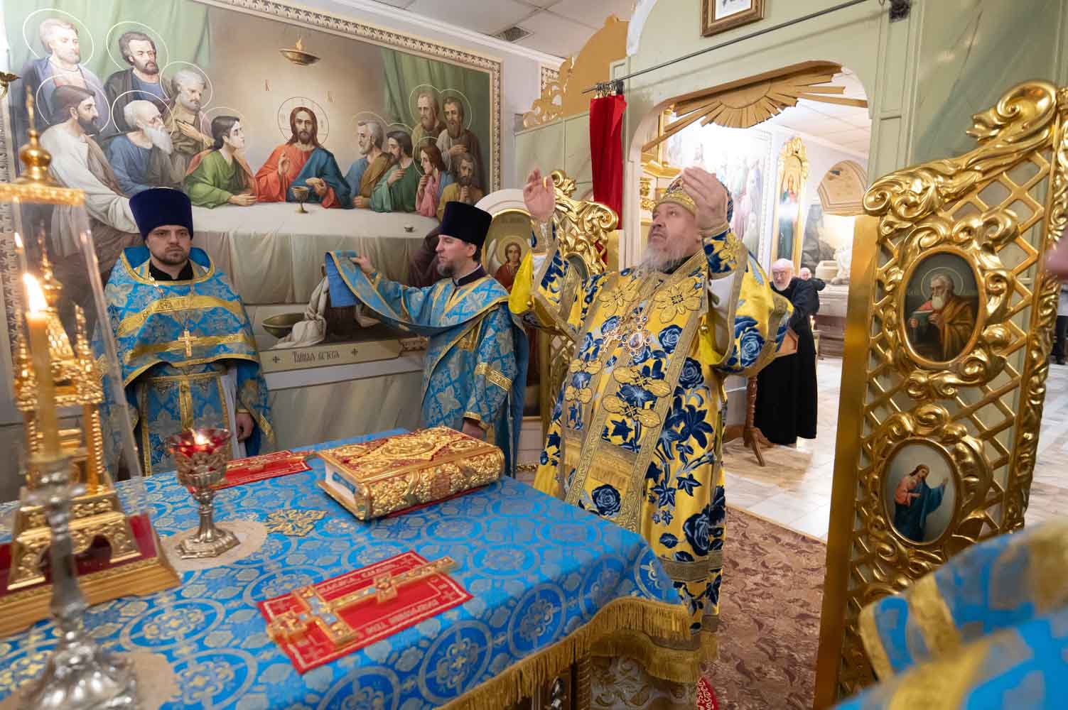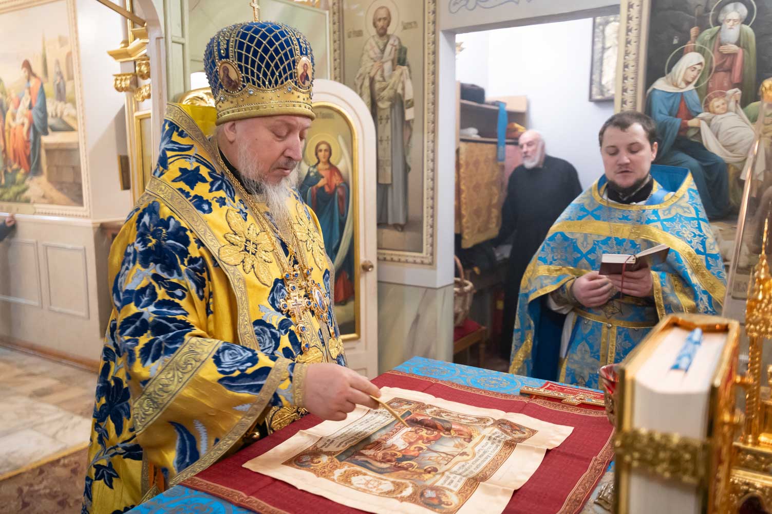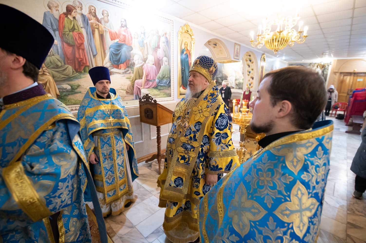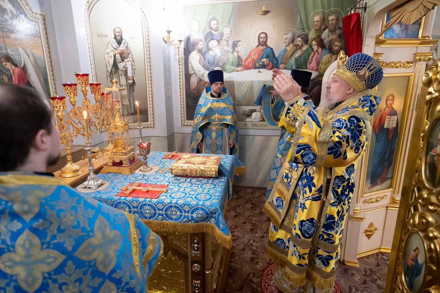 Божественную литургию 16 февраля 2026 года, в понедельник сырной седмицы, день памяти святого равноапостольного Николая, архиепископа Японского, Высокопреосвященнейший Стефан, архиепископ Гомельской и Жлобинский, совершил в криптовом храме Петро-Павловского кафедрального собора, освященном в честь святой равноапостольной Марии Магдалины.