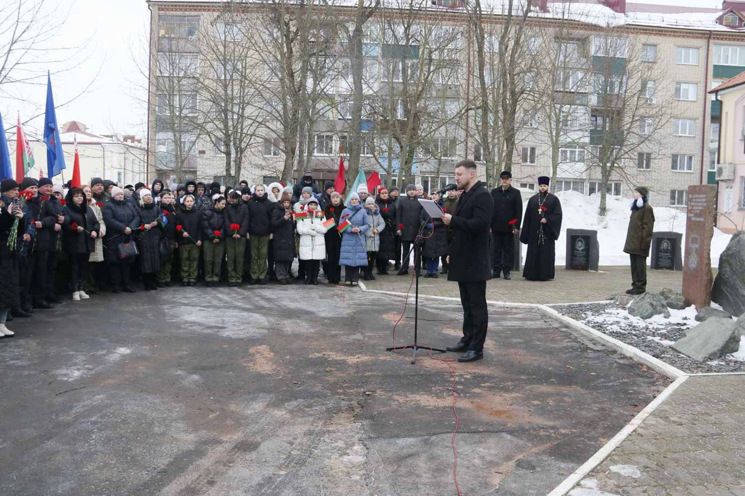 С торжественным словом, посвященным подвигу павших за мир и справедливость, выступили председатель Рогачевского районного Совета депутатов Феоктистов Владимир Николаевич, военный комиссар Рогачевского и Кормянского районов майор Иван Язепов, председатель районной организации Белорусского союза ветеранов войны в Афганистане Михаил Тодинов.